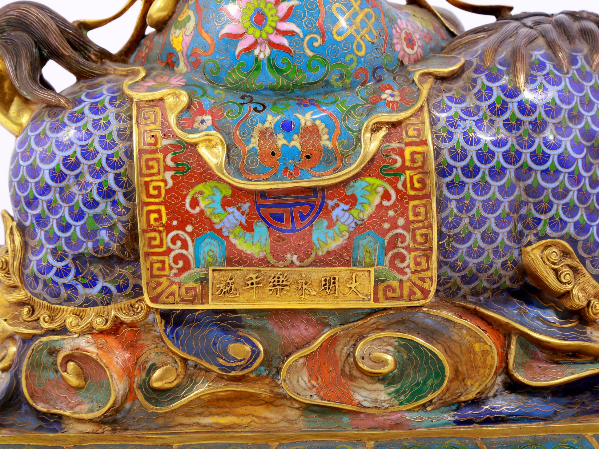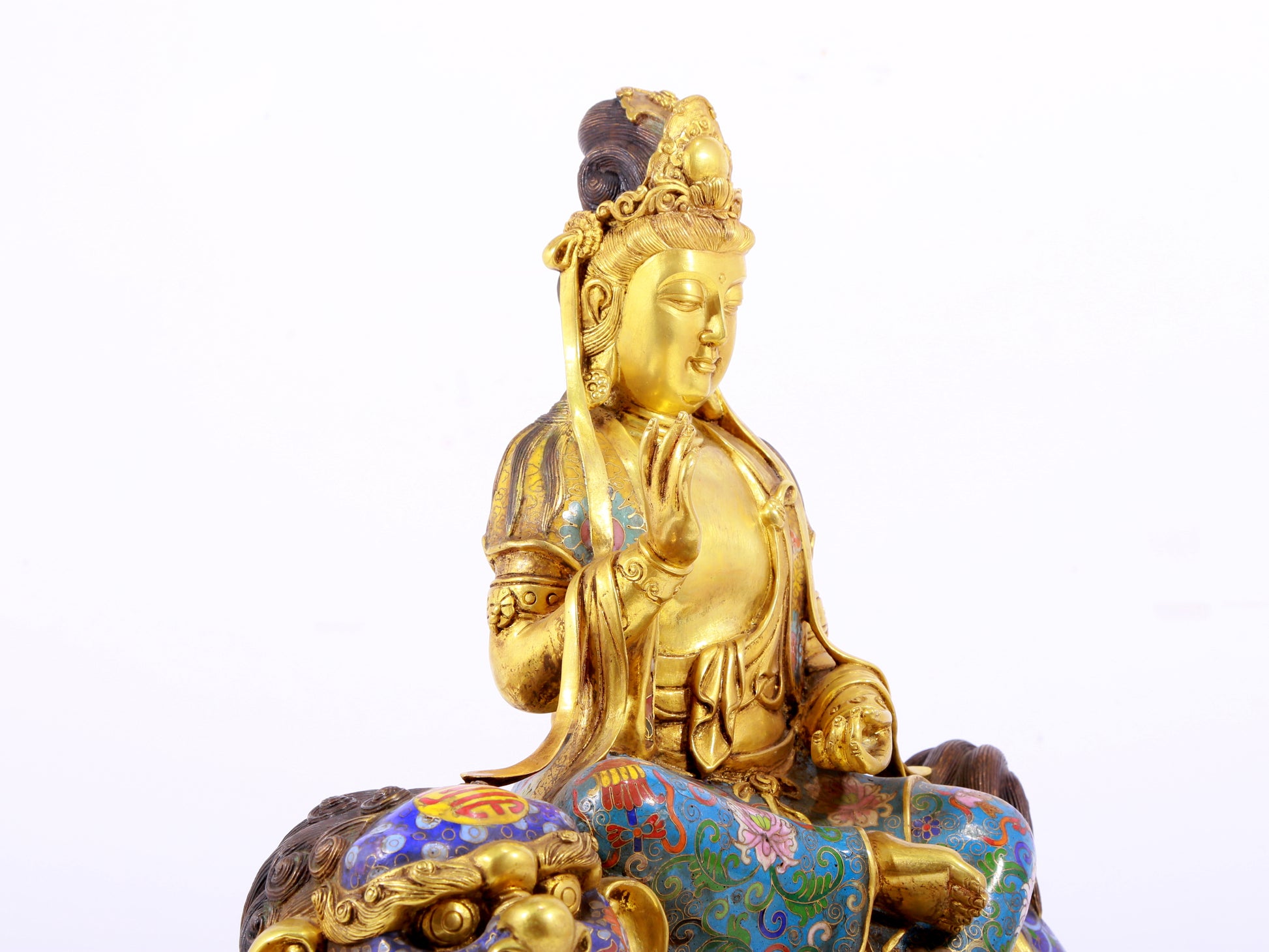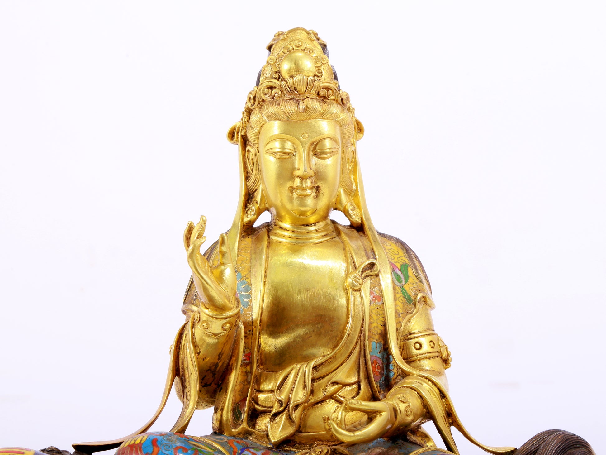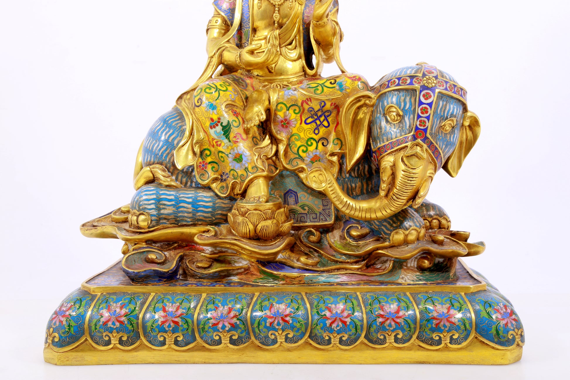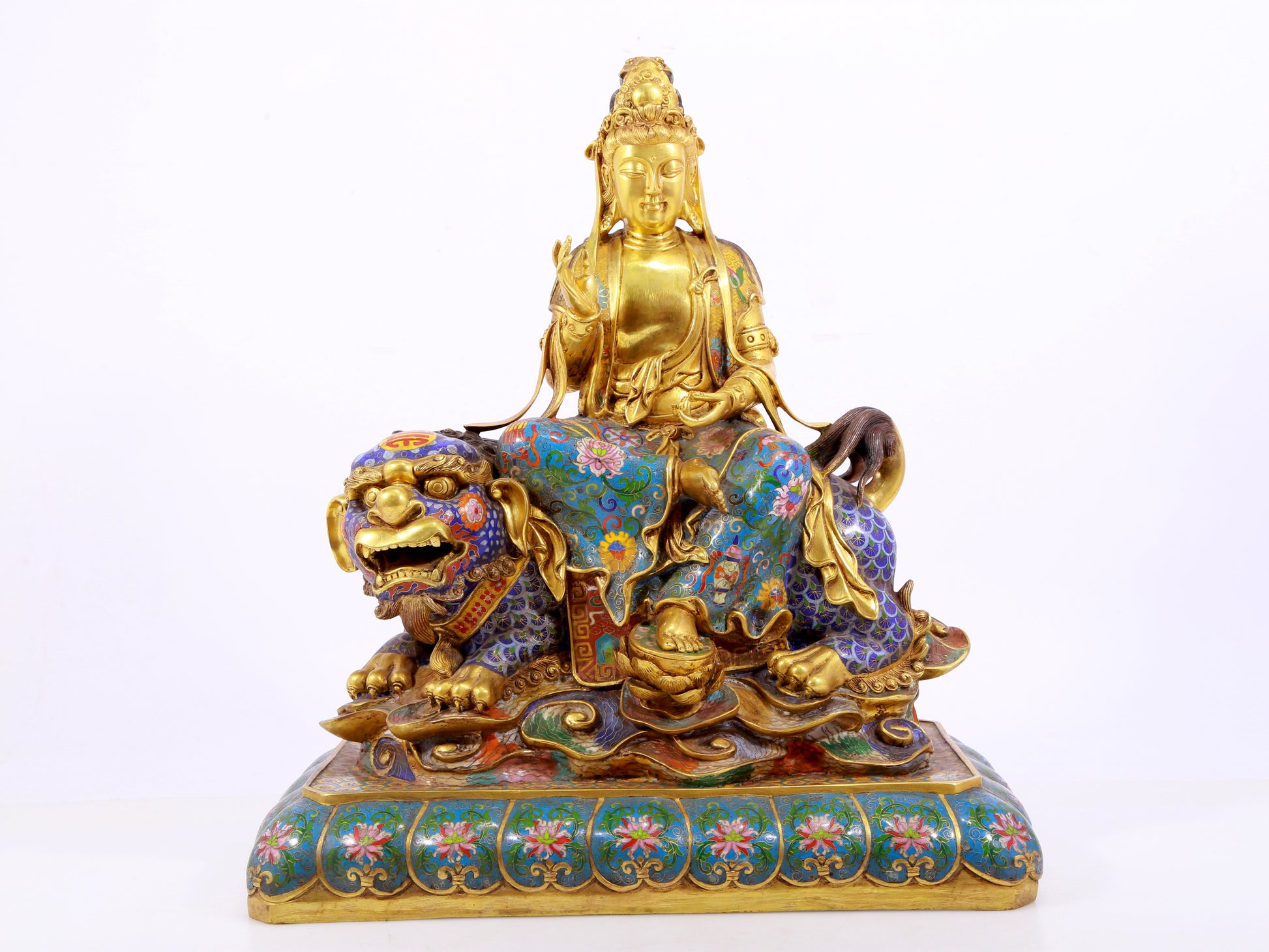 Cloisonné statue of Puxian Bodhisattva and Manjushri Bodhisattva