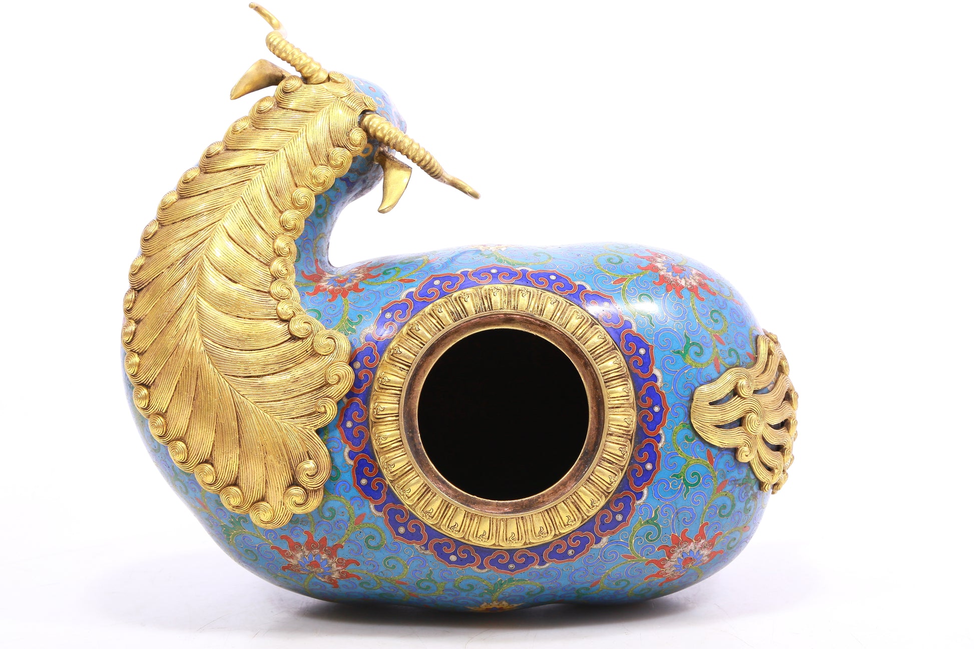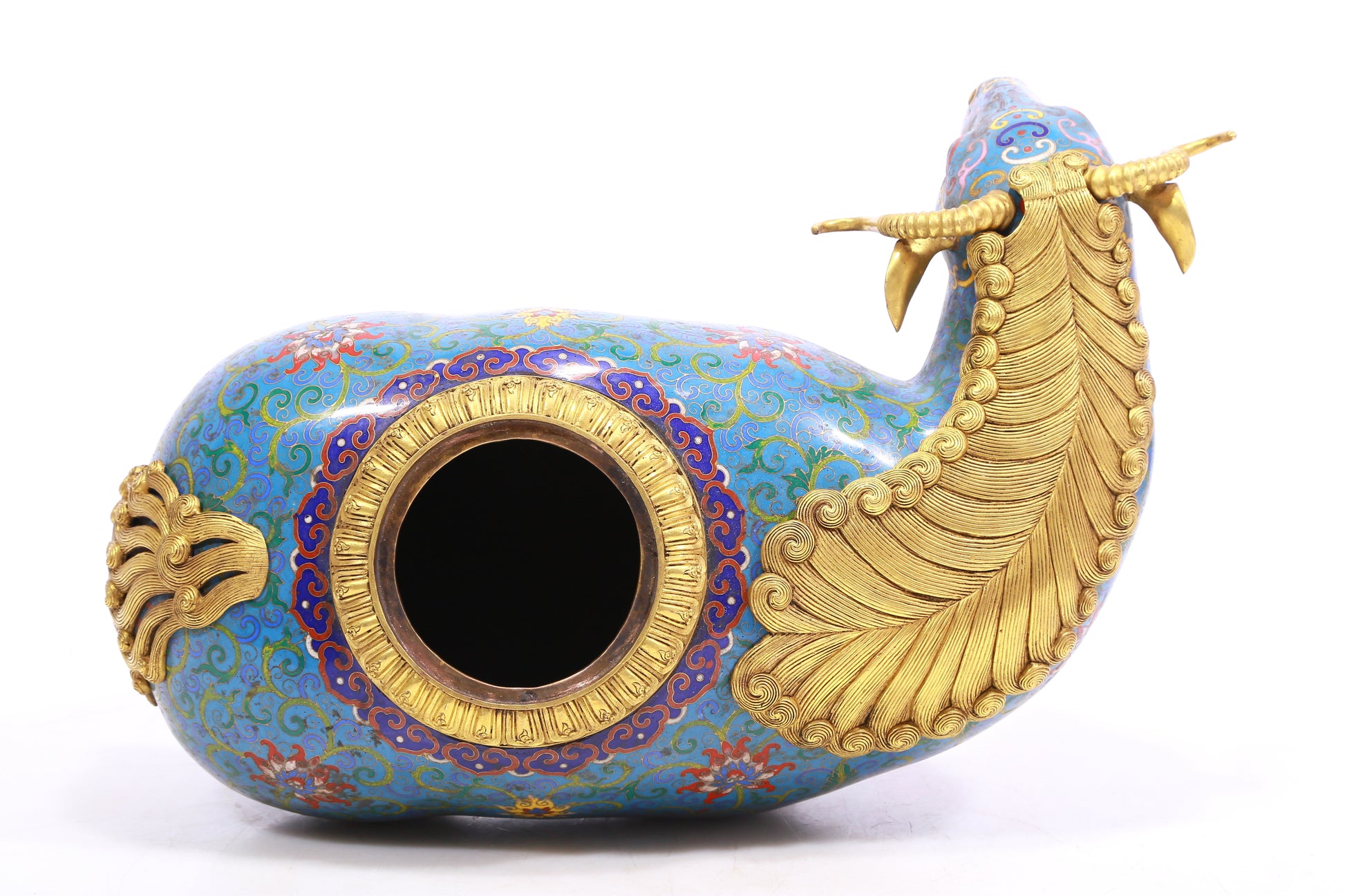 Pair of cloisonné goat-shaped bottles