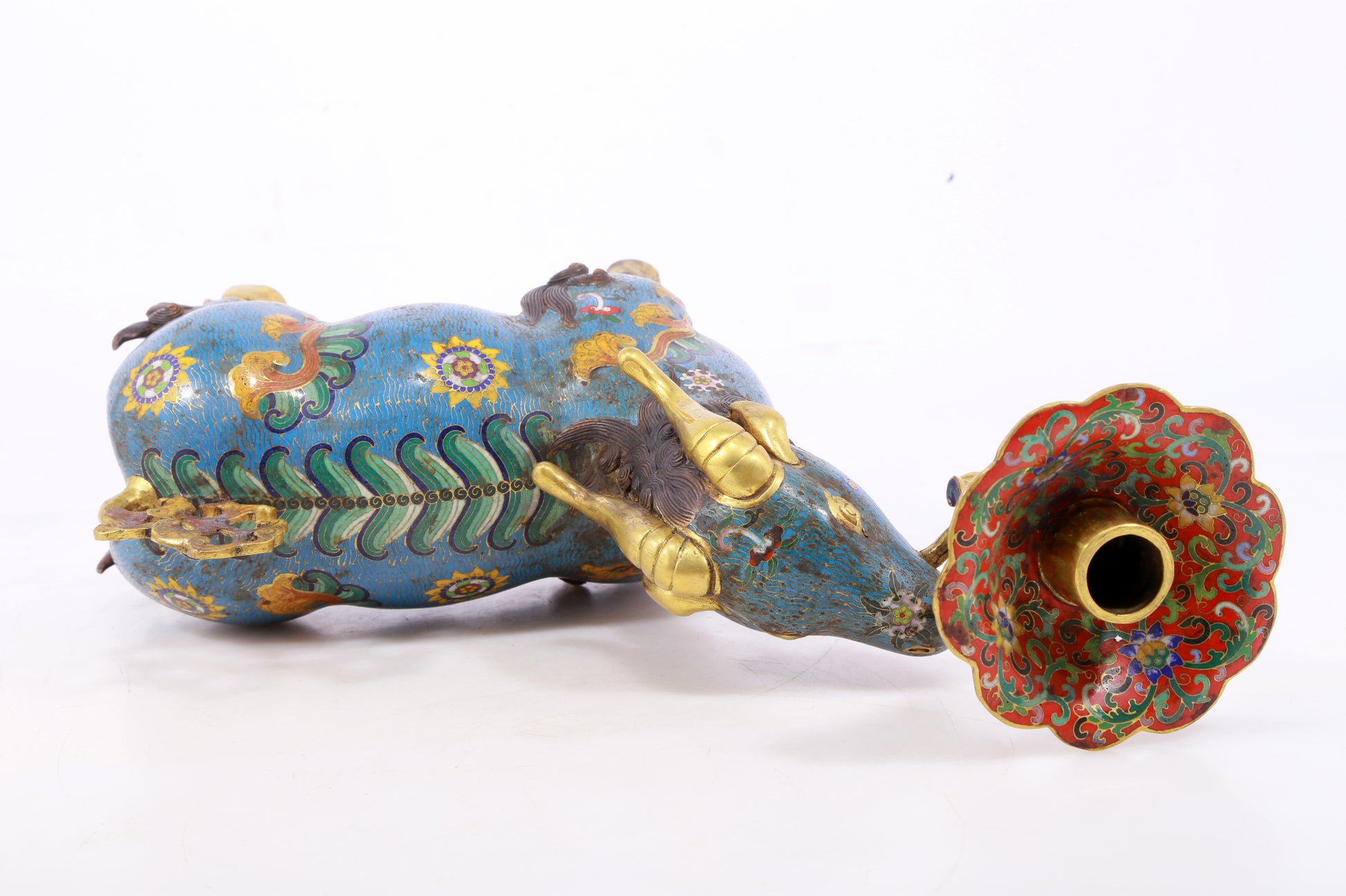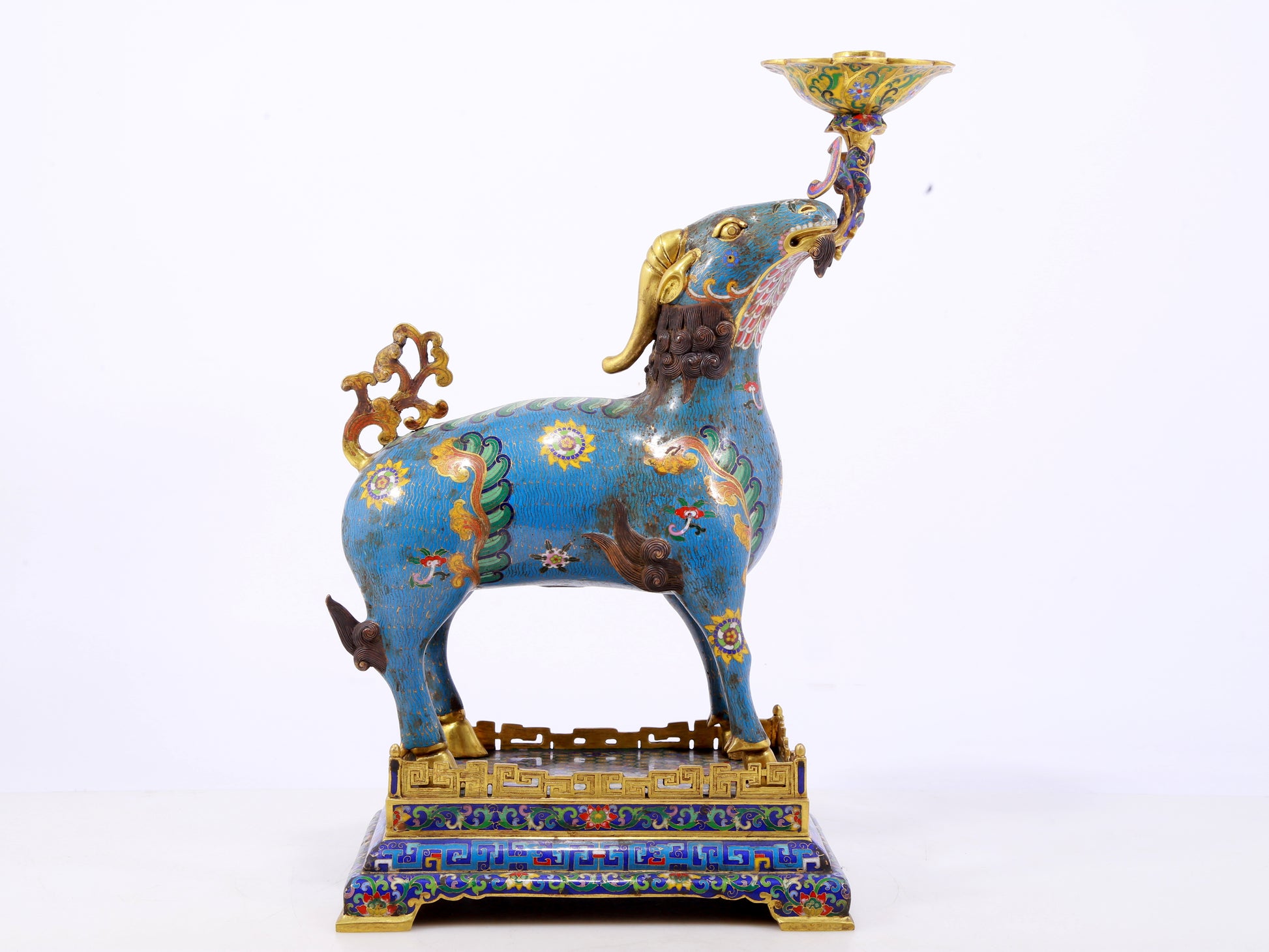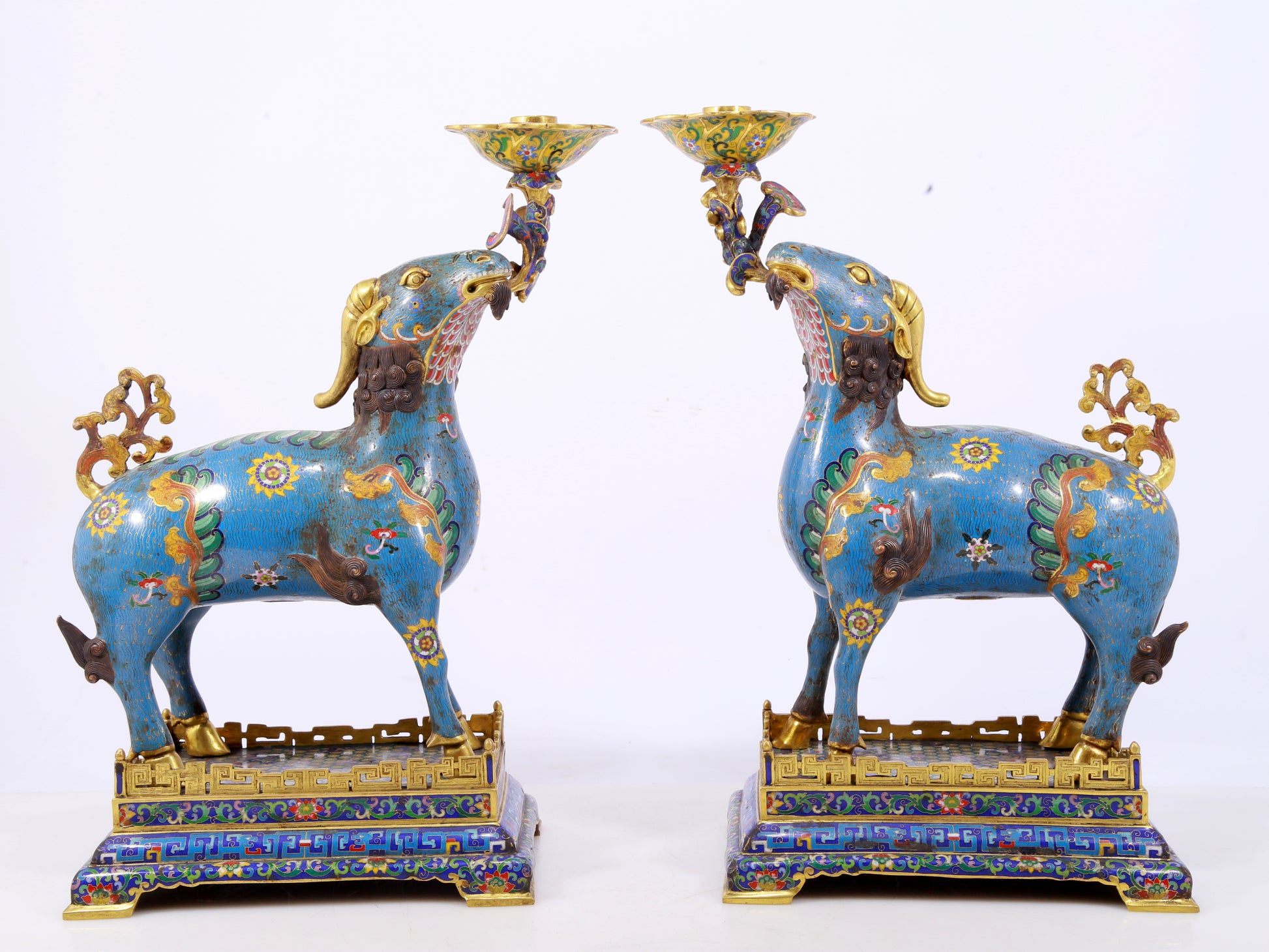 Pair of Exquisite Cloisonné Goat Candlesticks
