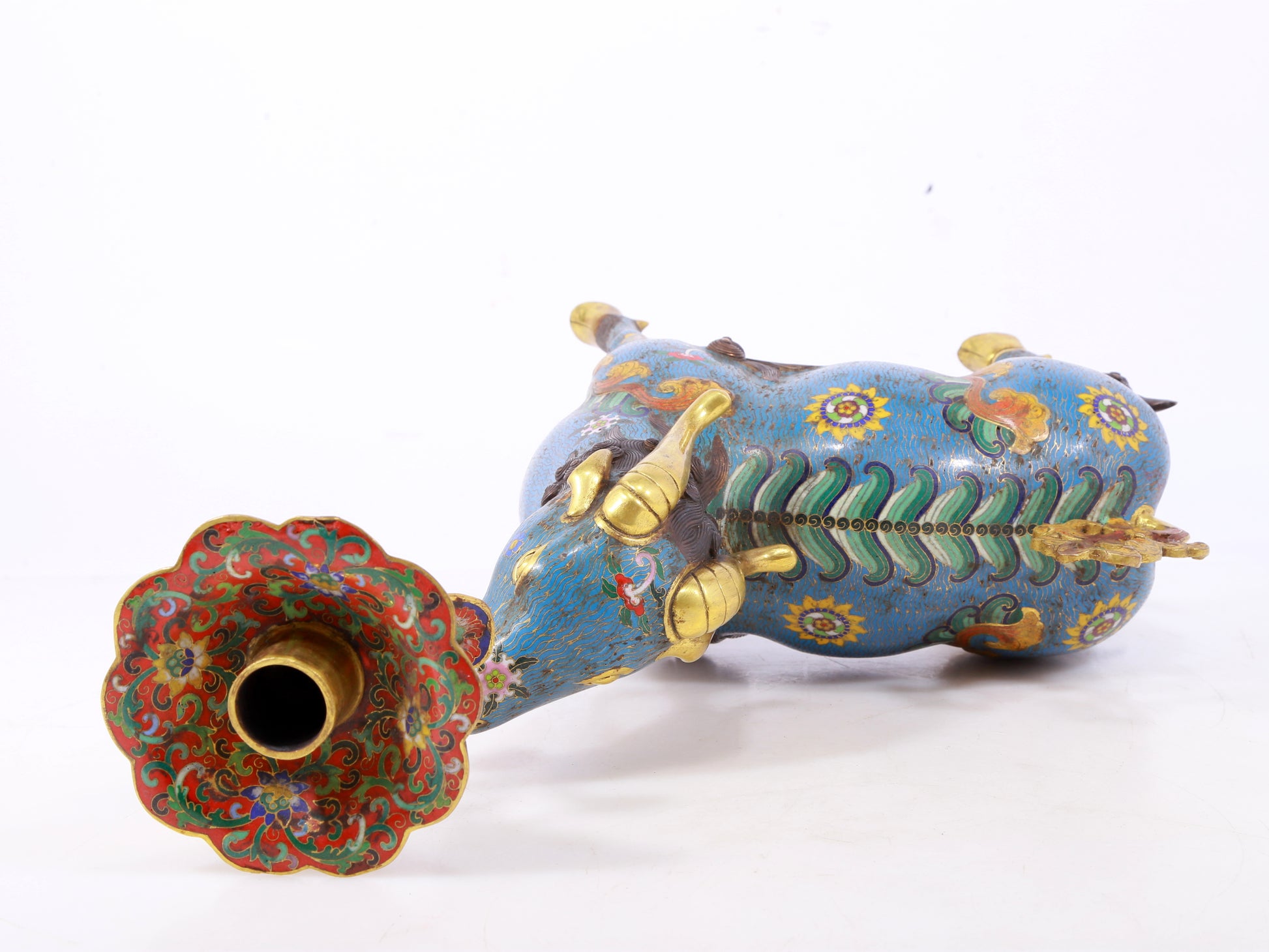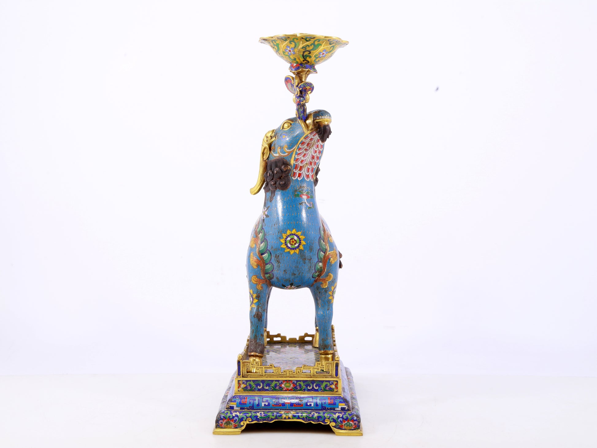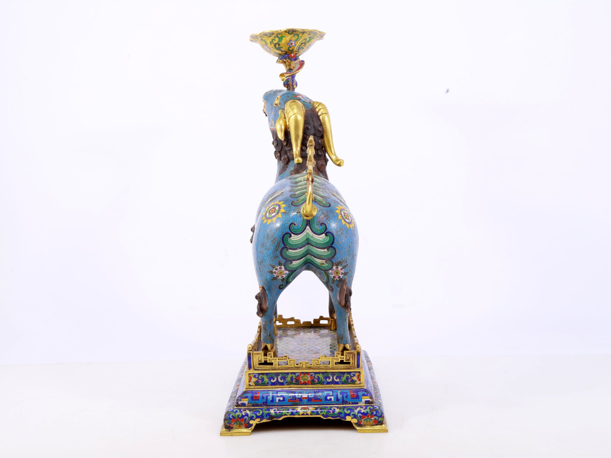 Pair of Exquisite Cloisonné Goat Candlesticks