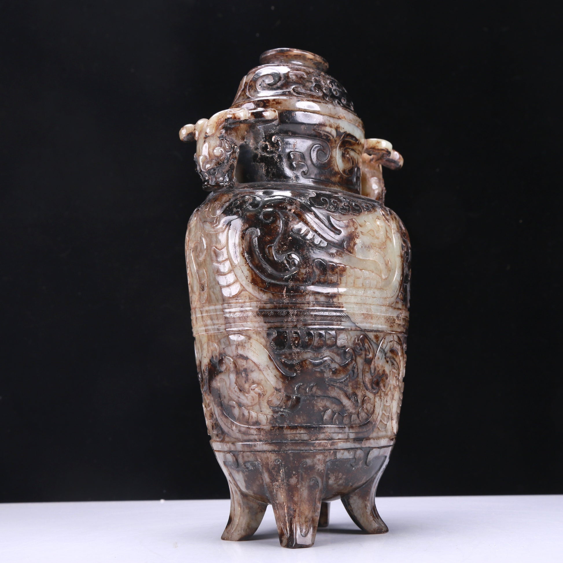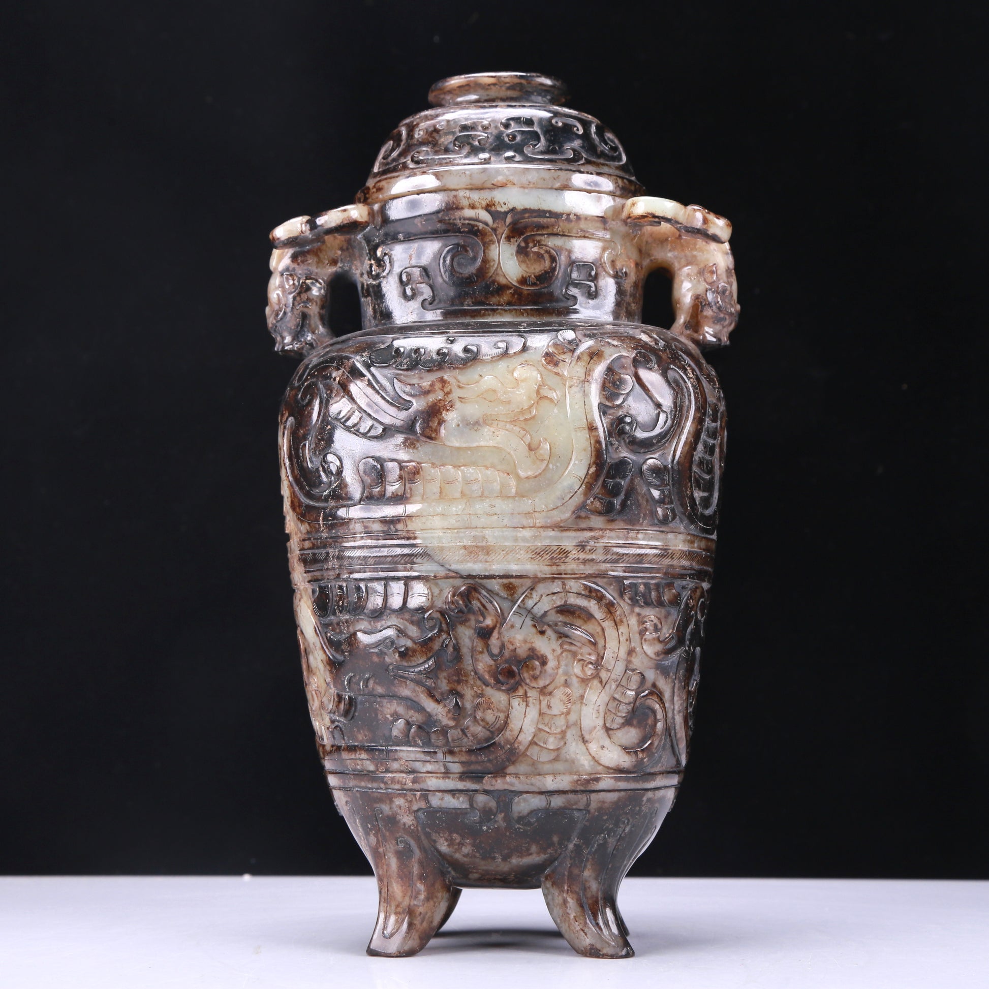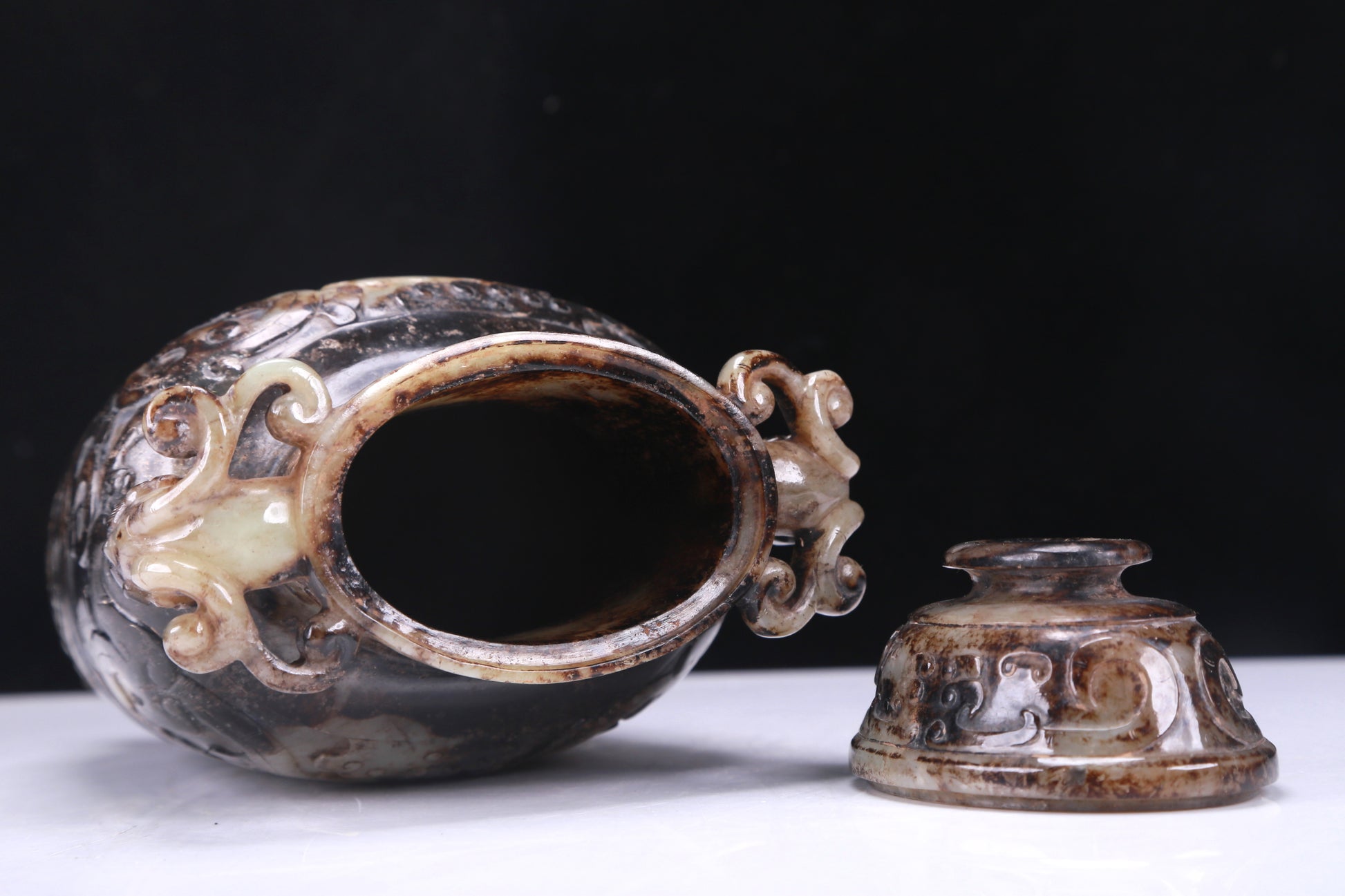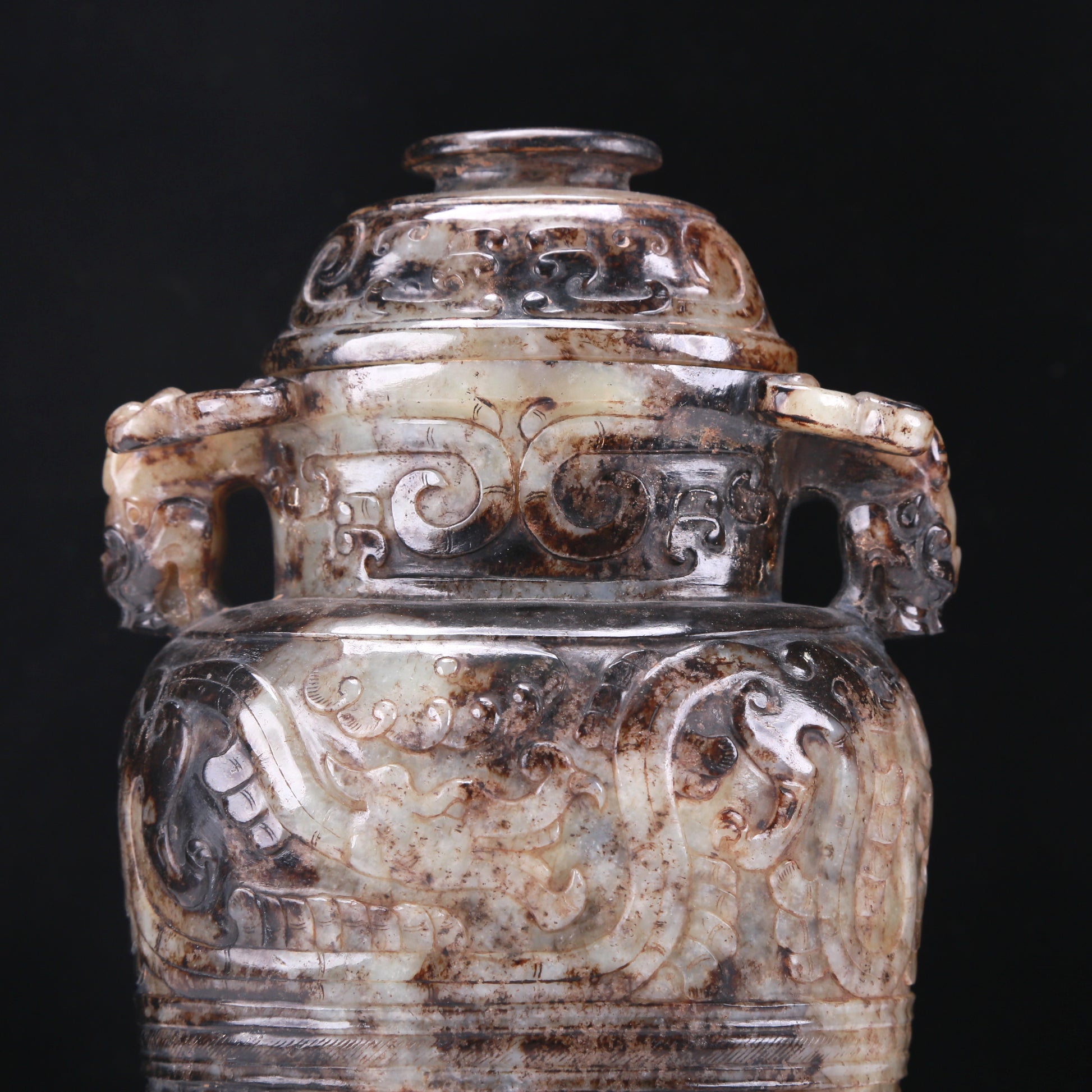 A Fabulous White Jade 'Dragon' Vase And Cover