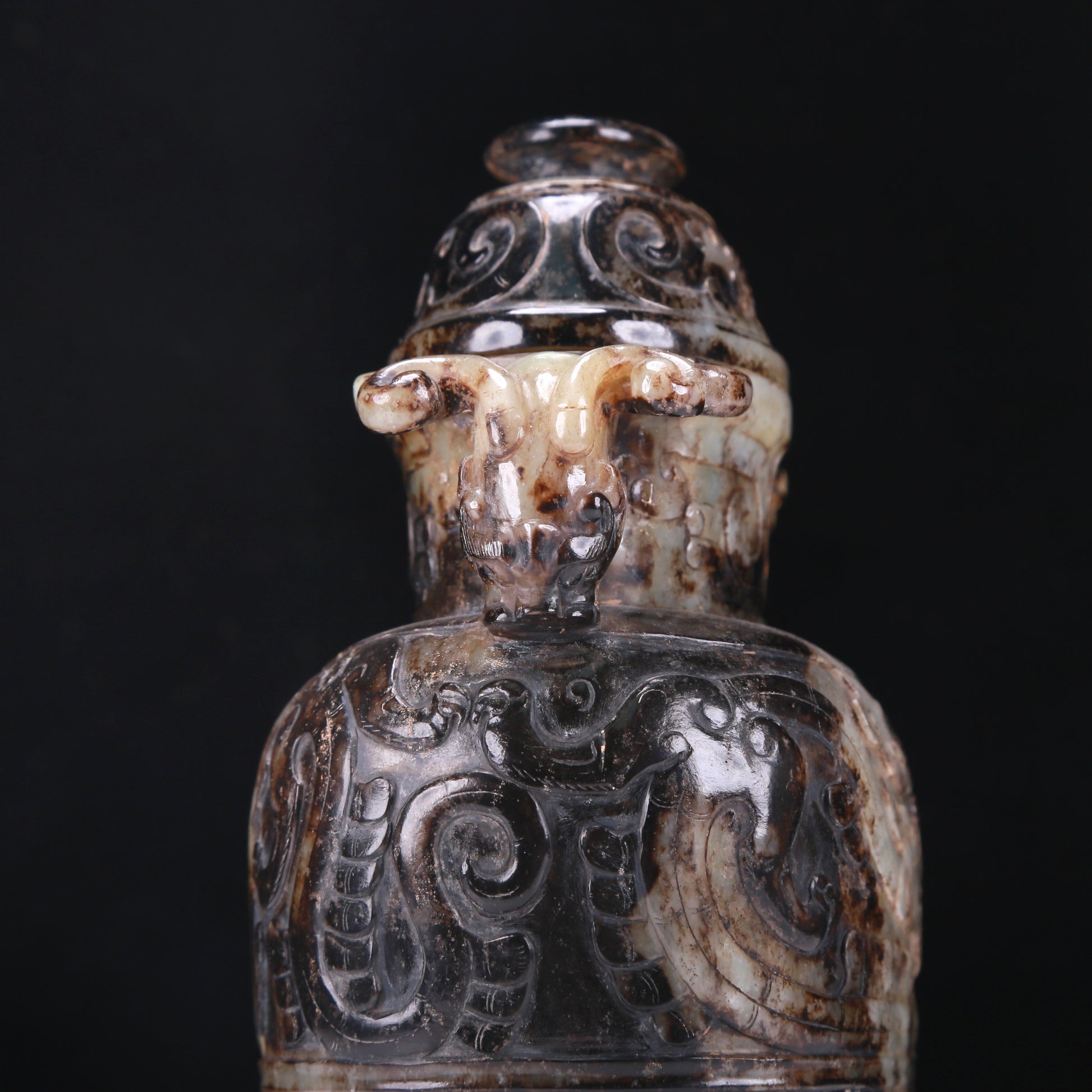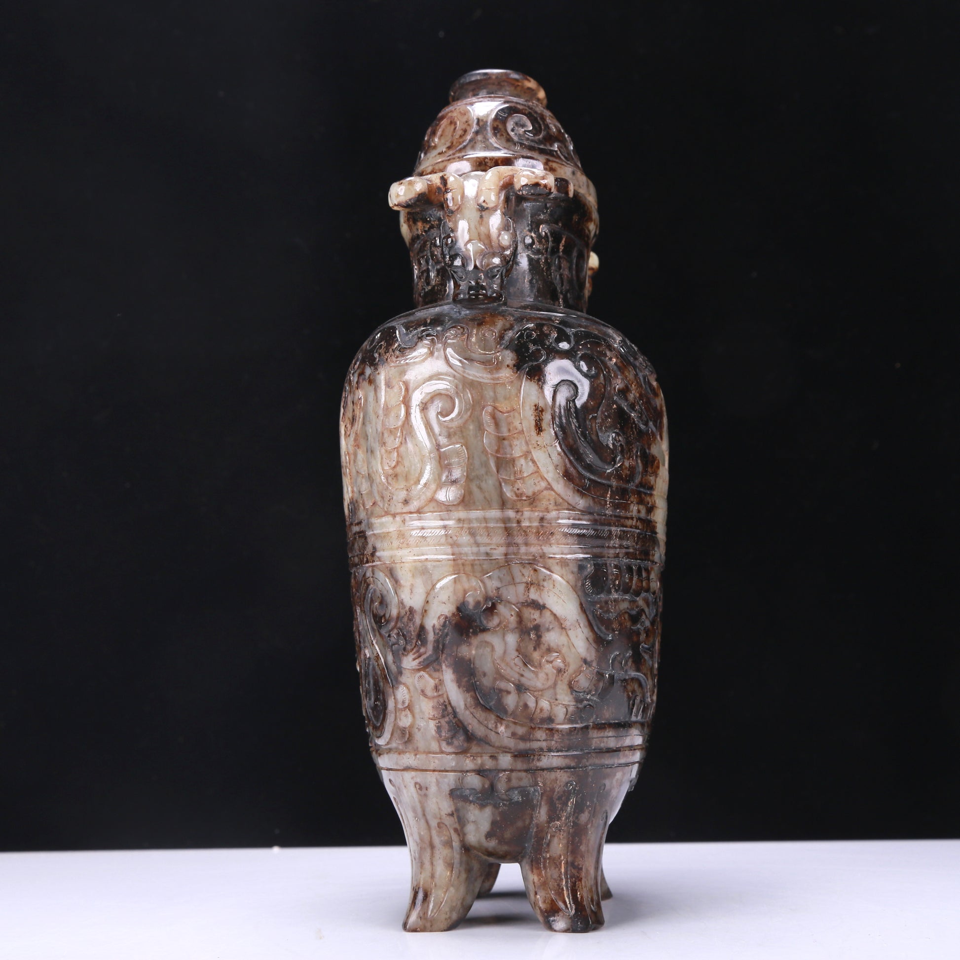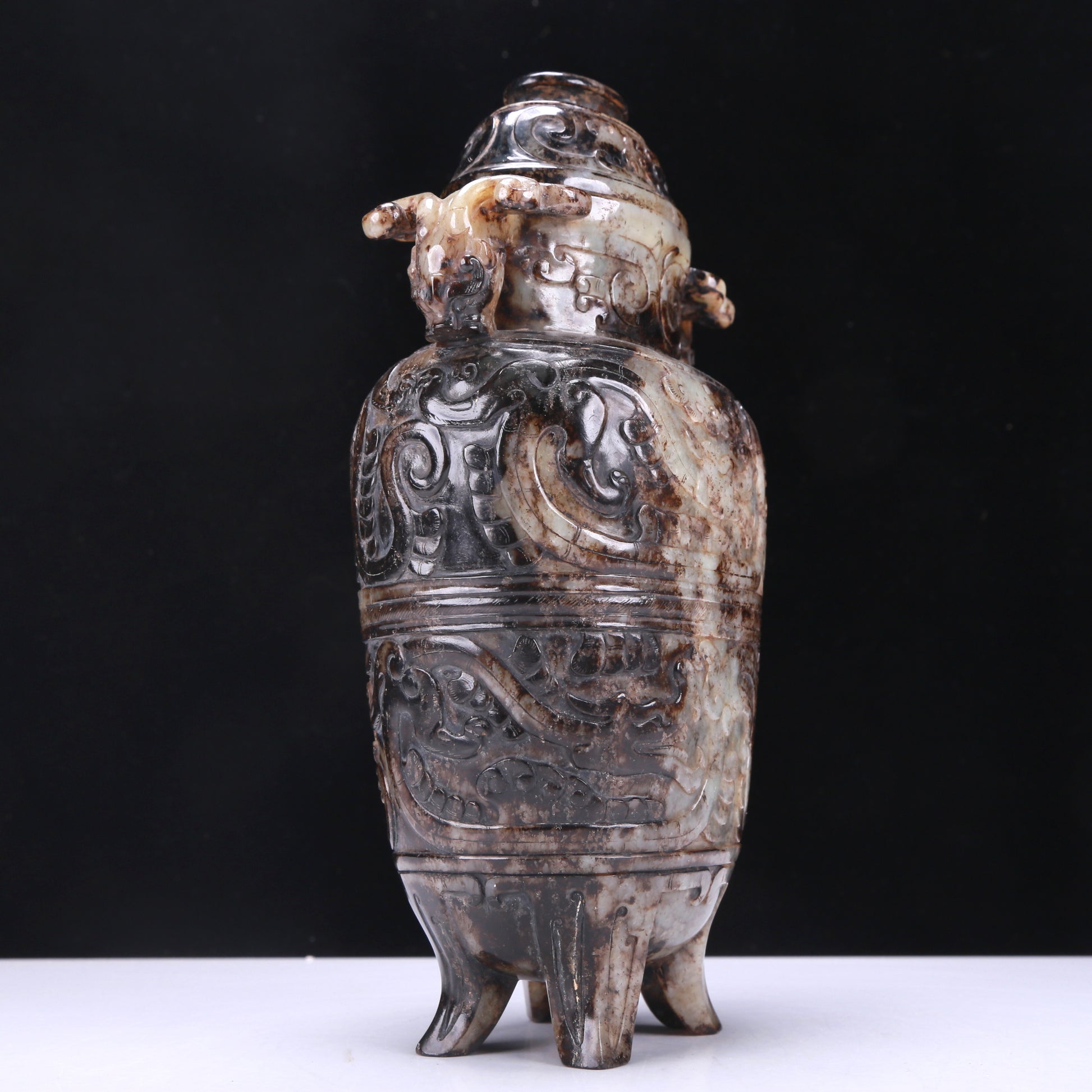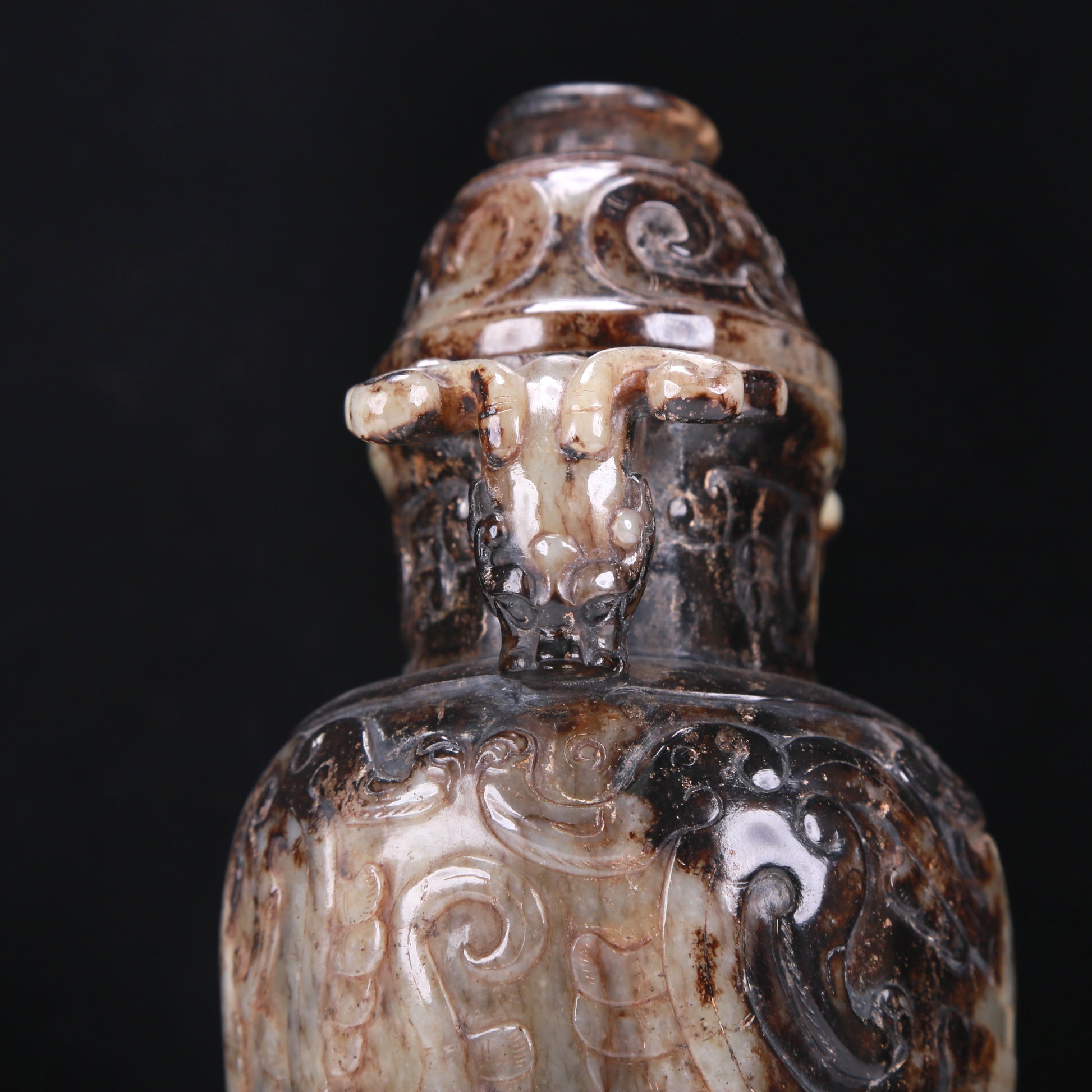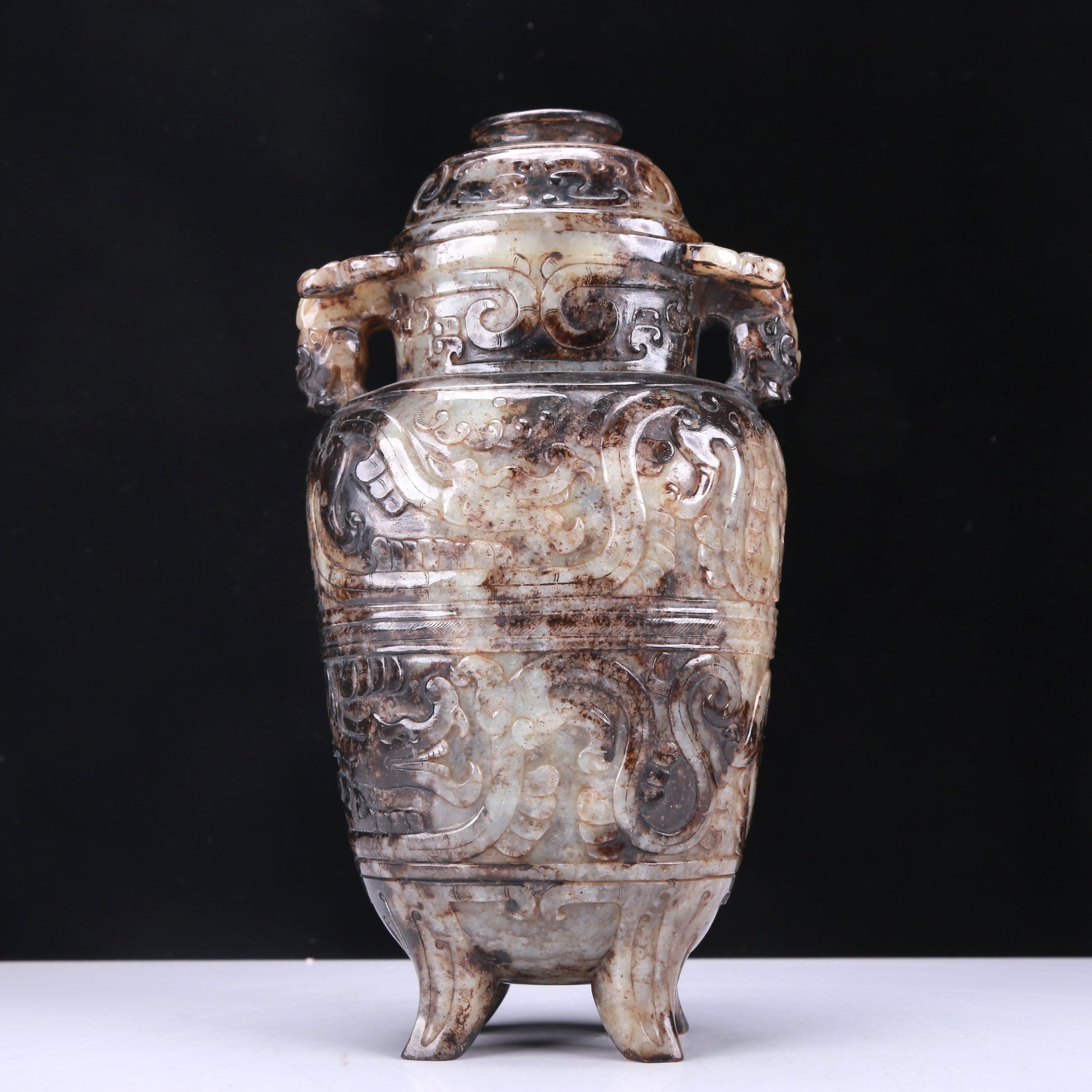 A Fabulous White Jade 'Dragon' Vase And Cover