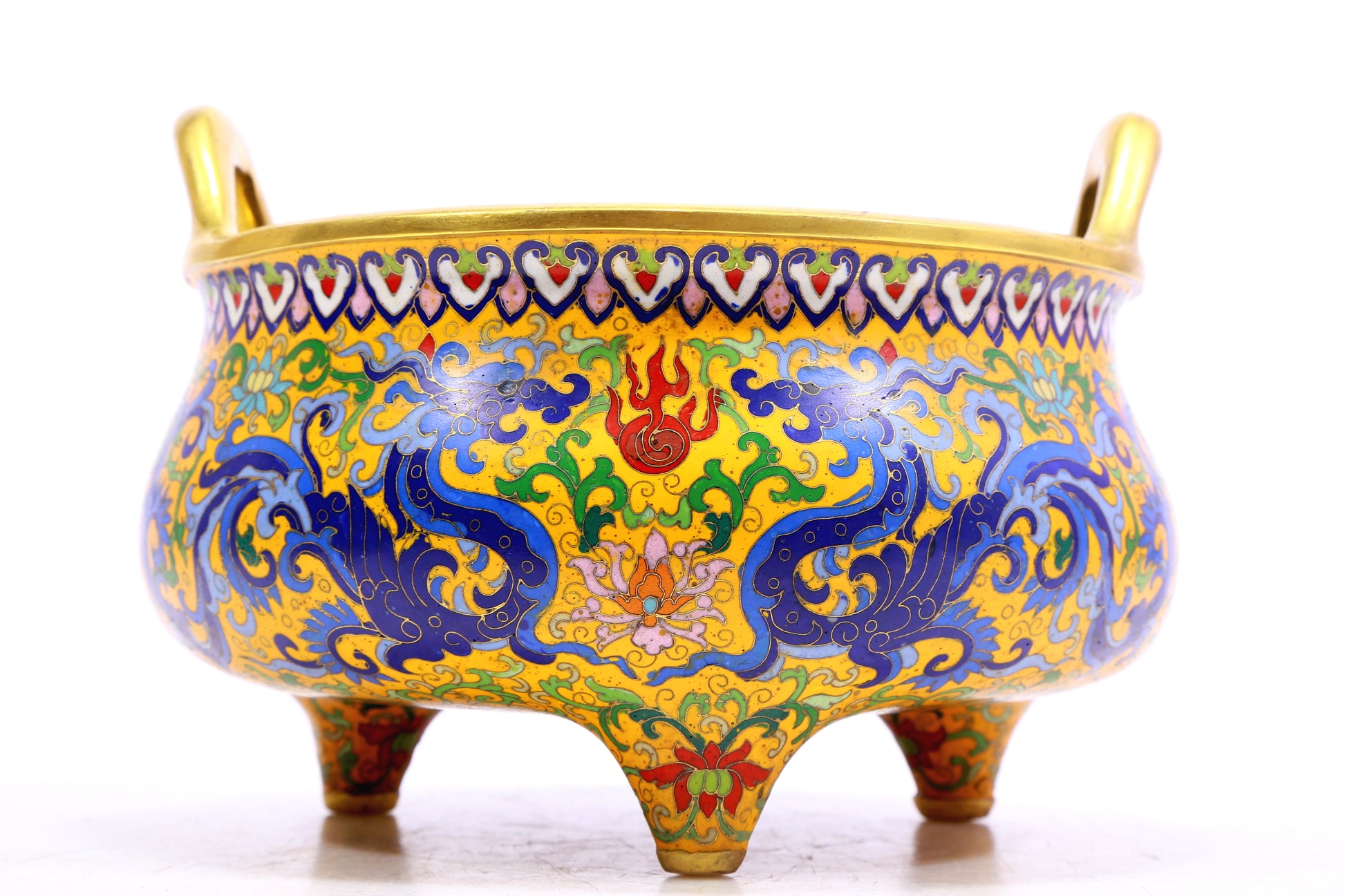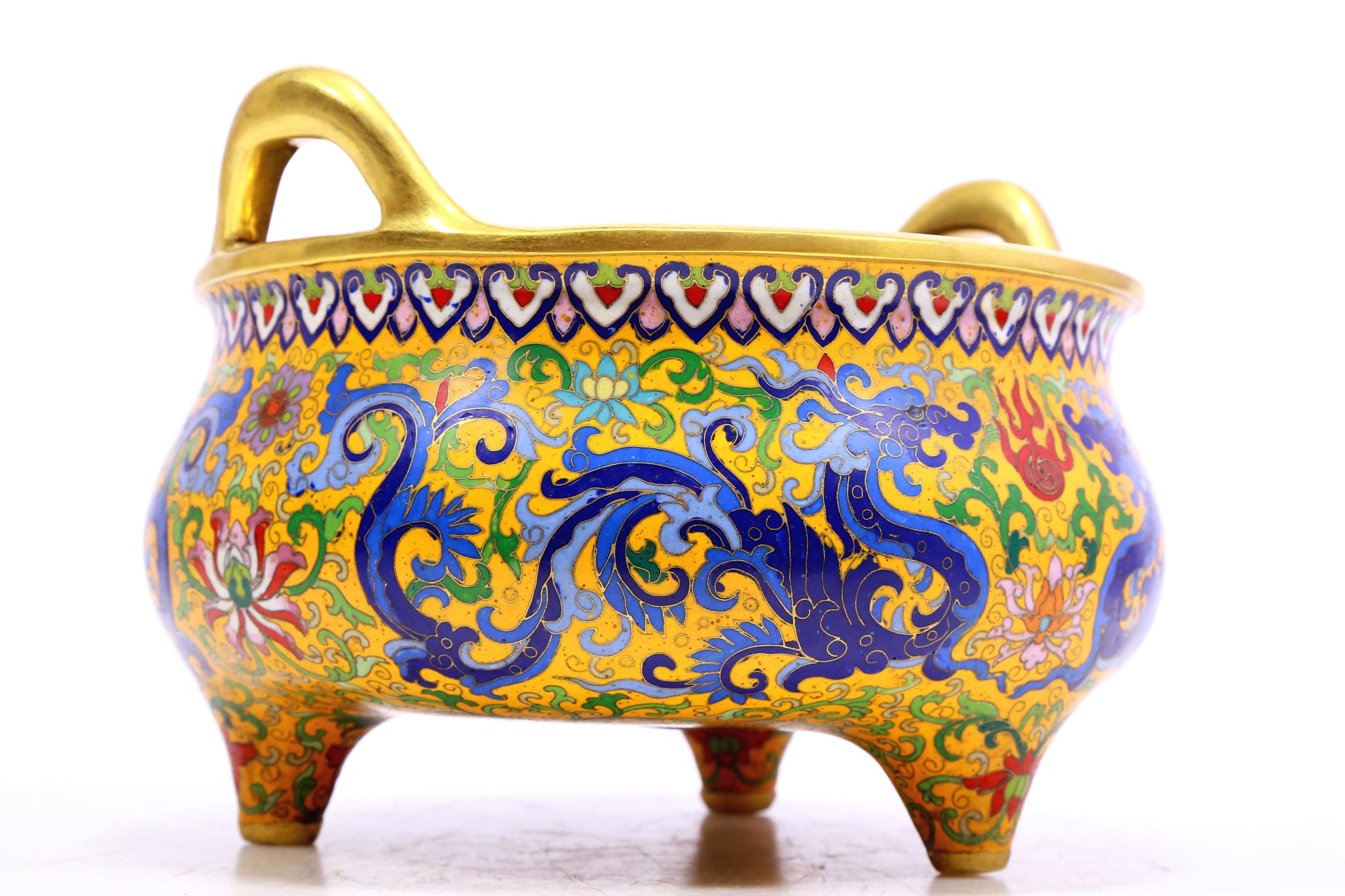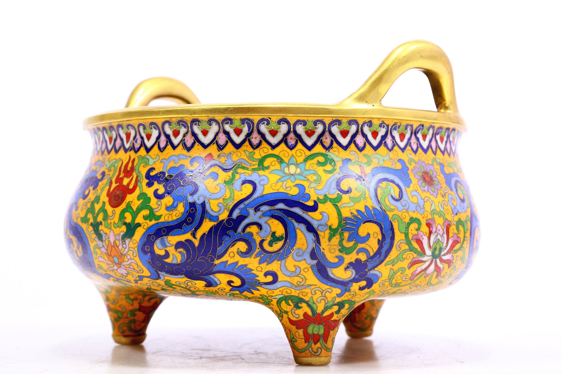 A Gorgeous Cloisonne 'Scrolling Lotus& Dragon' Tripod Censer