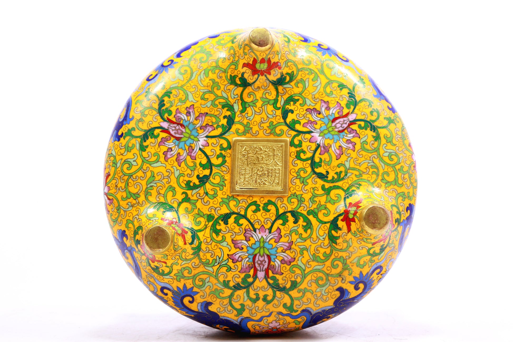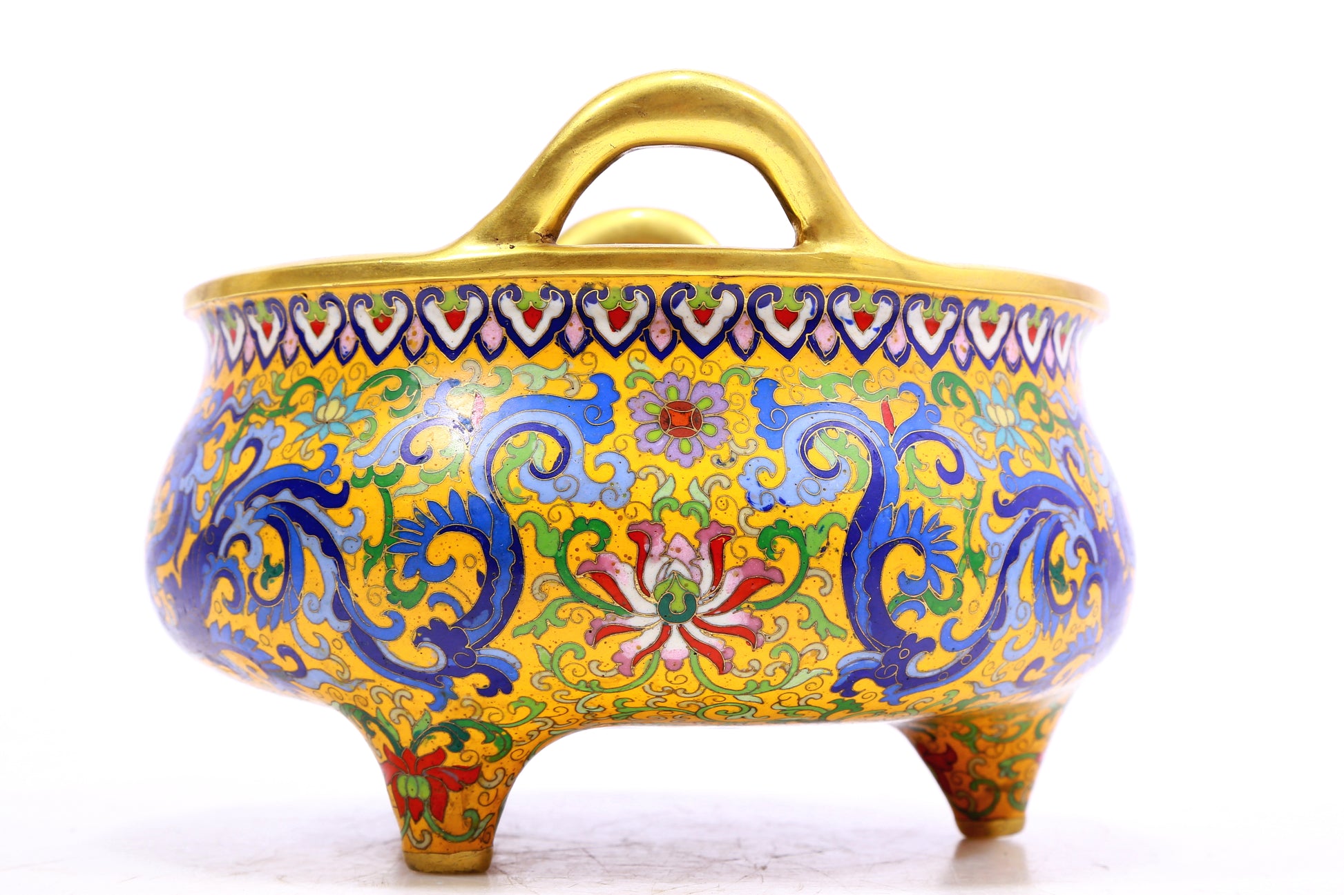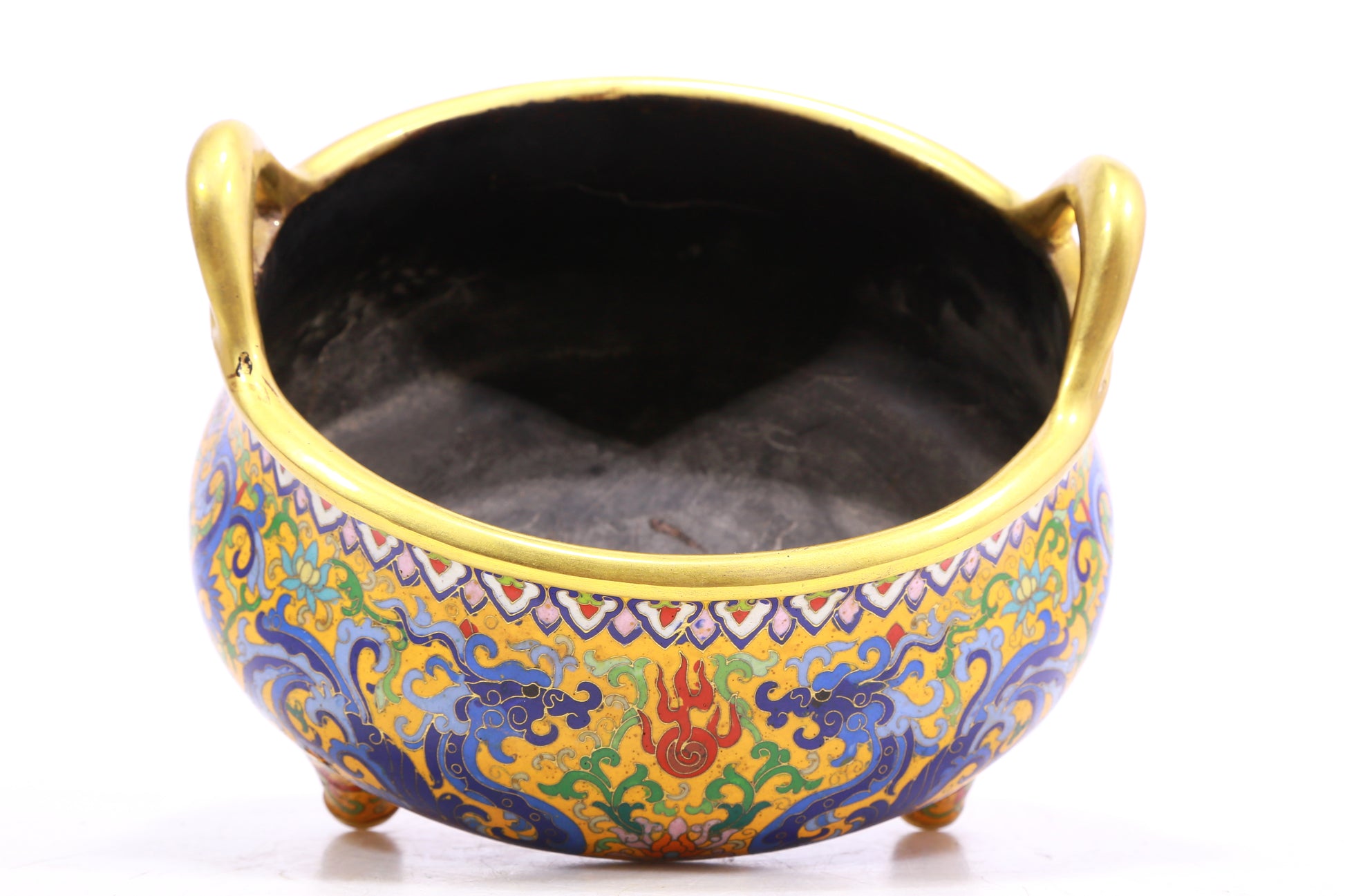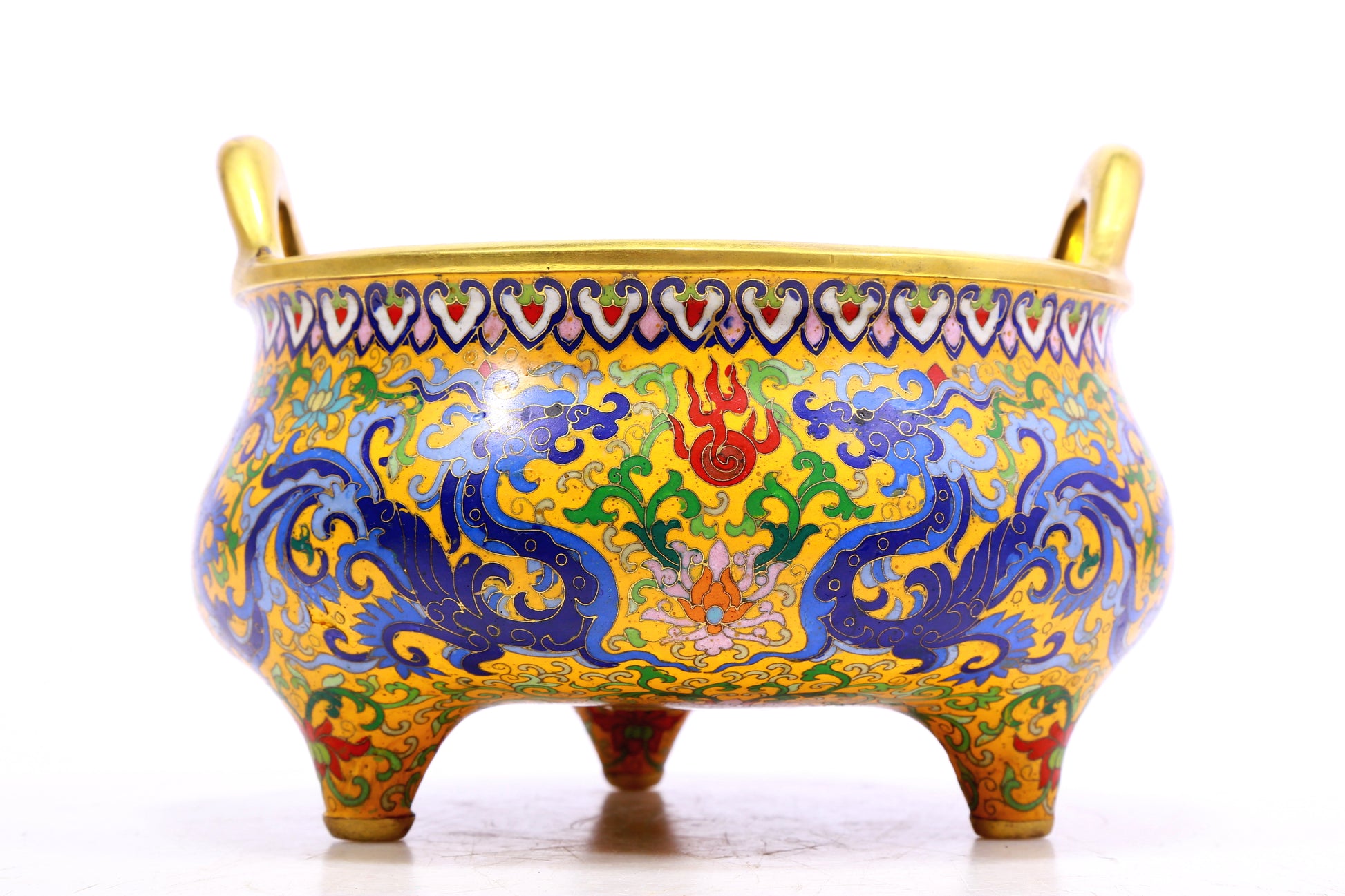 A Gorgeous Cloisonne 'Scrolling Lotus& Dragon' Tripod Censer