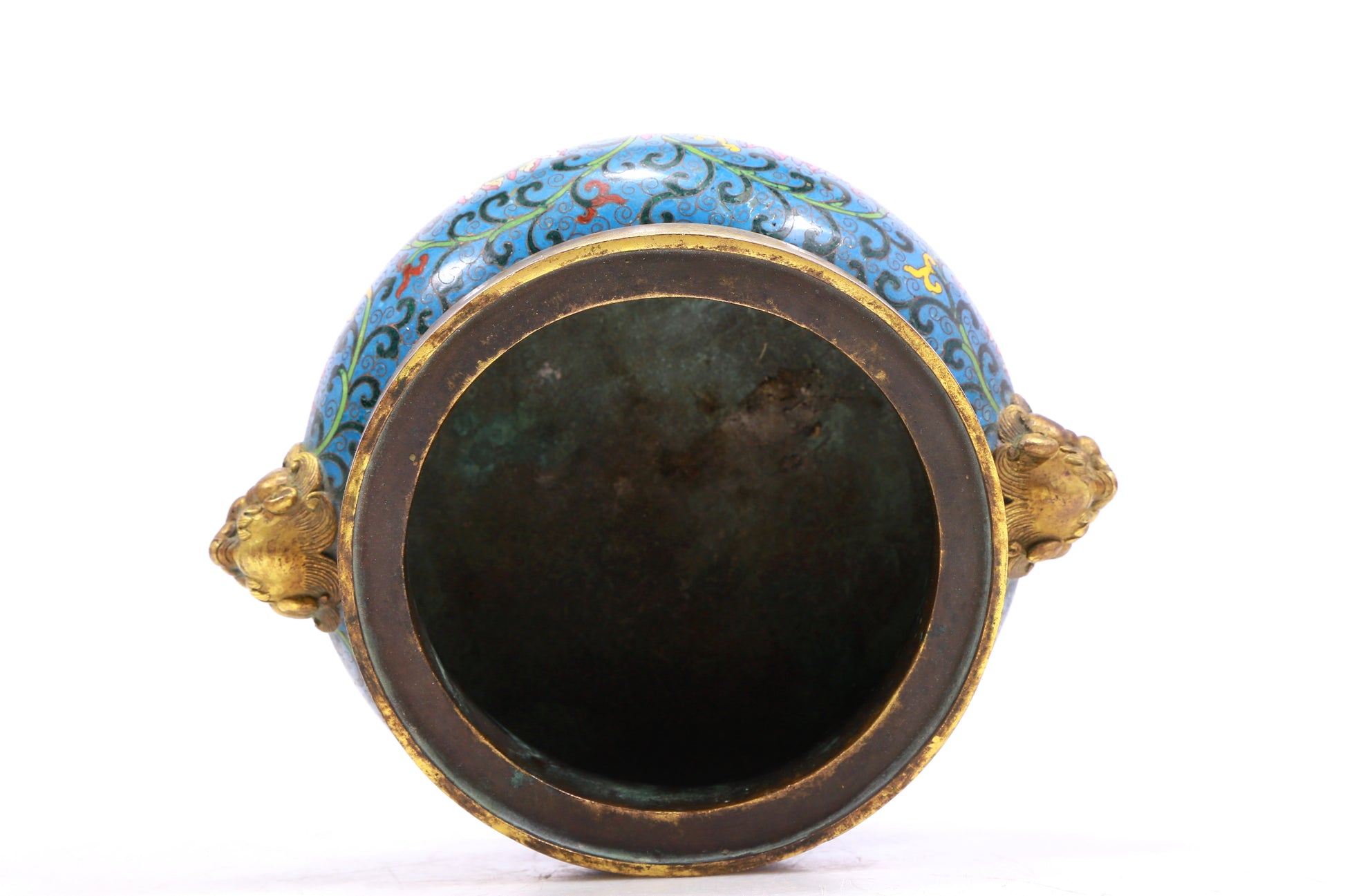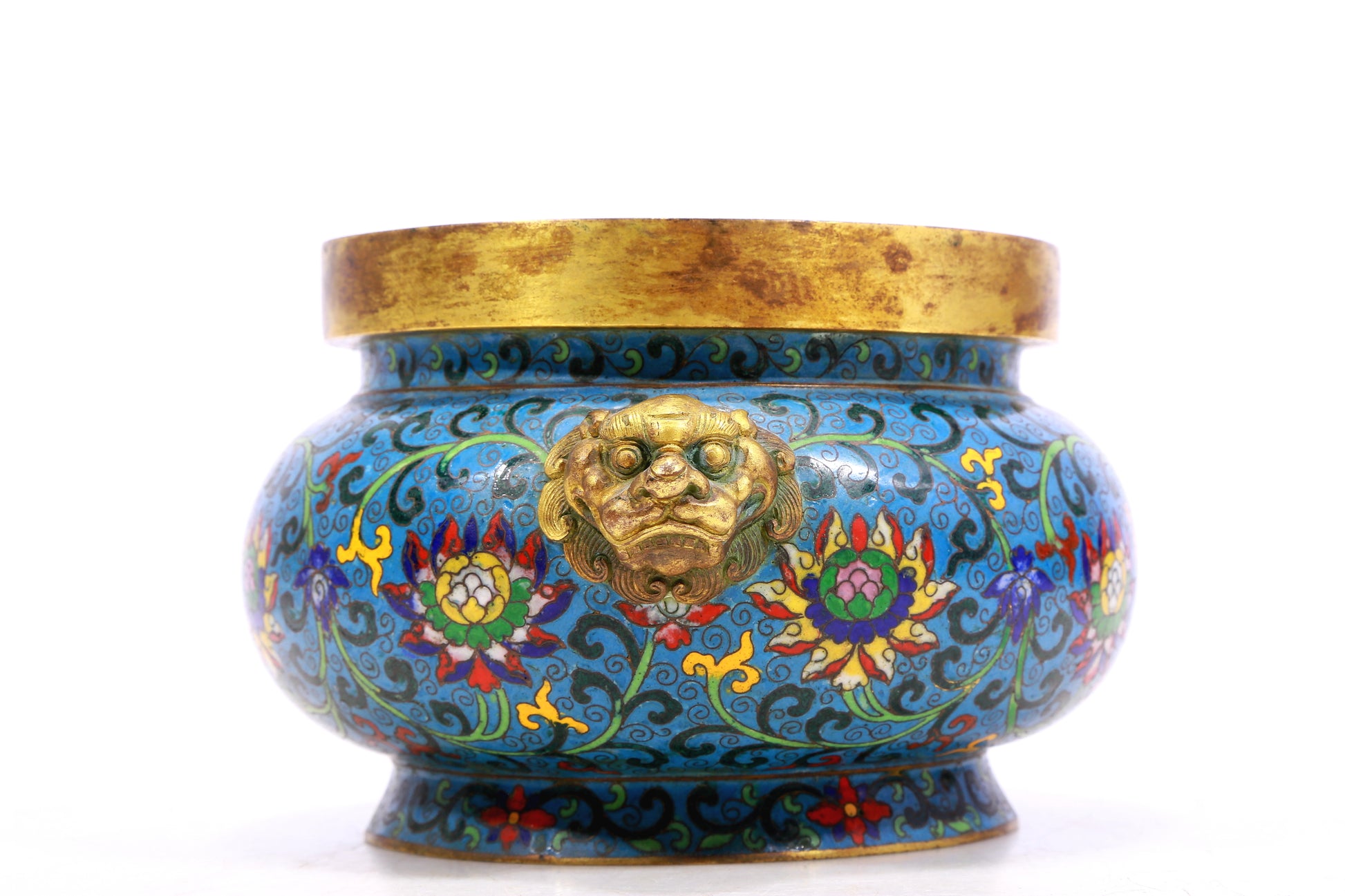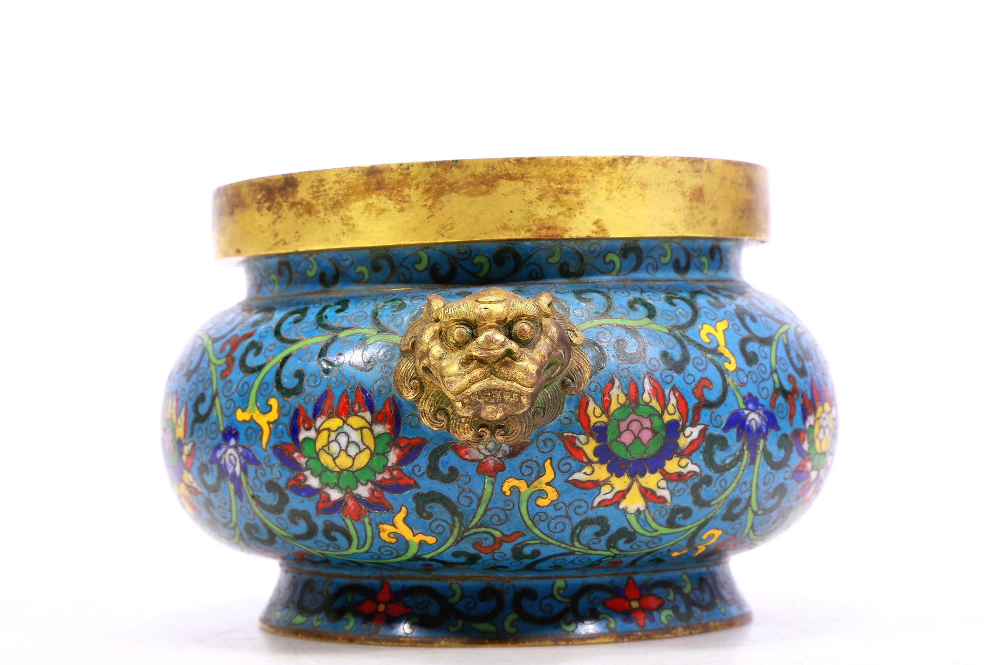 A Gorgeous Cloisonne 'Scrolling Lotus' Lion-Handled Censer