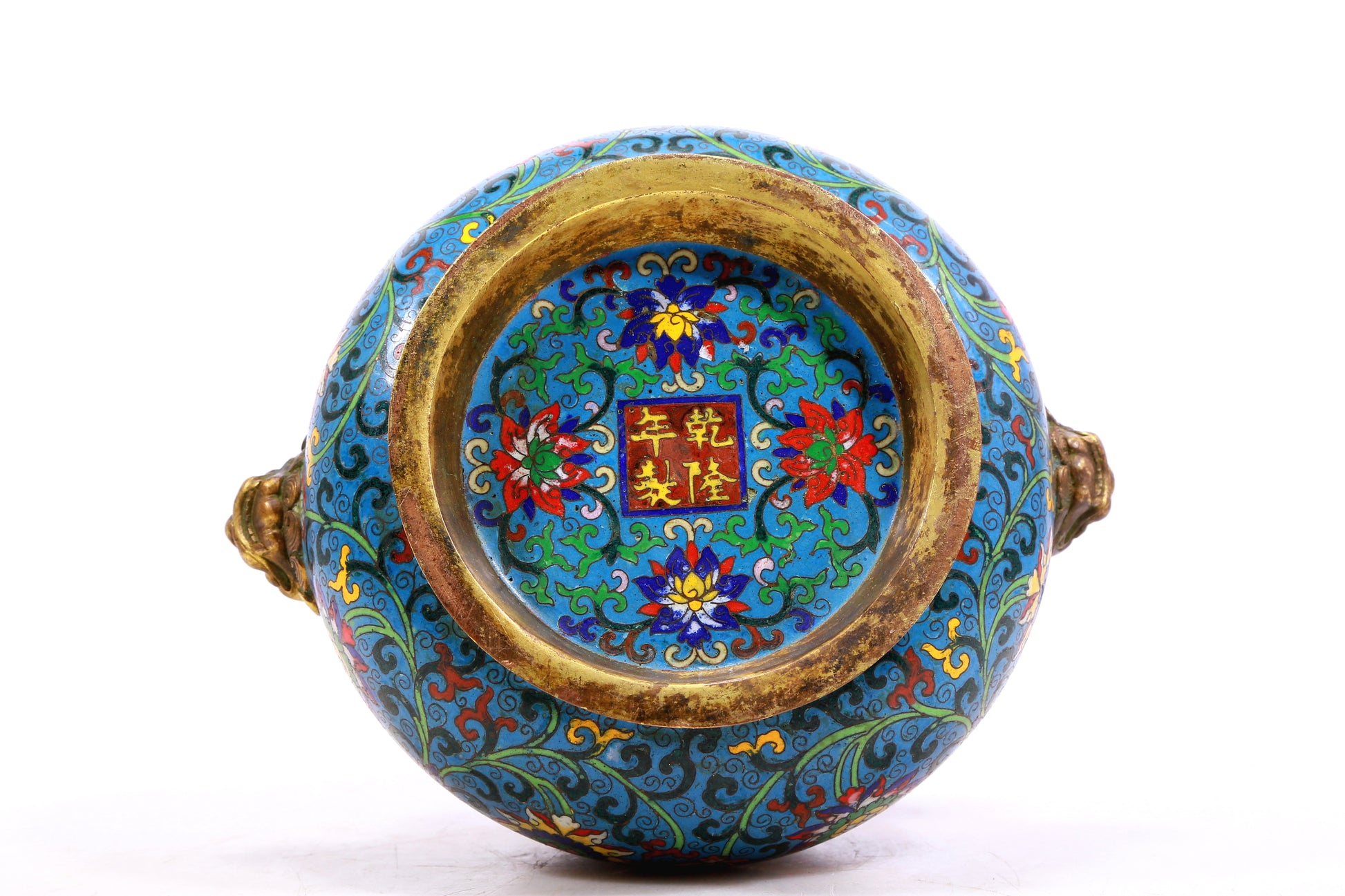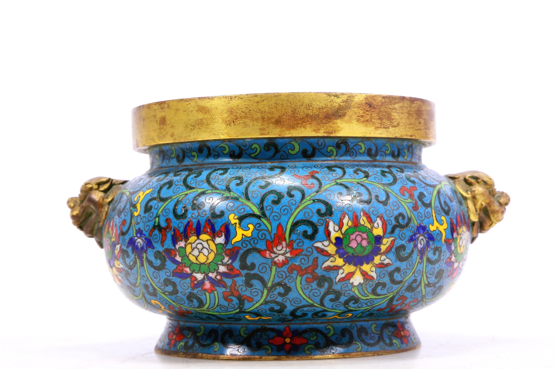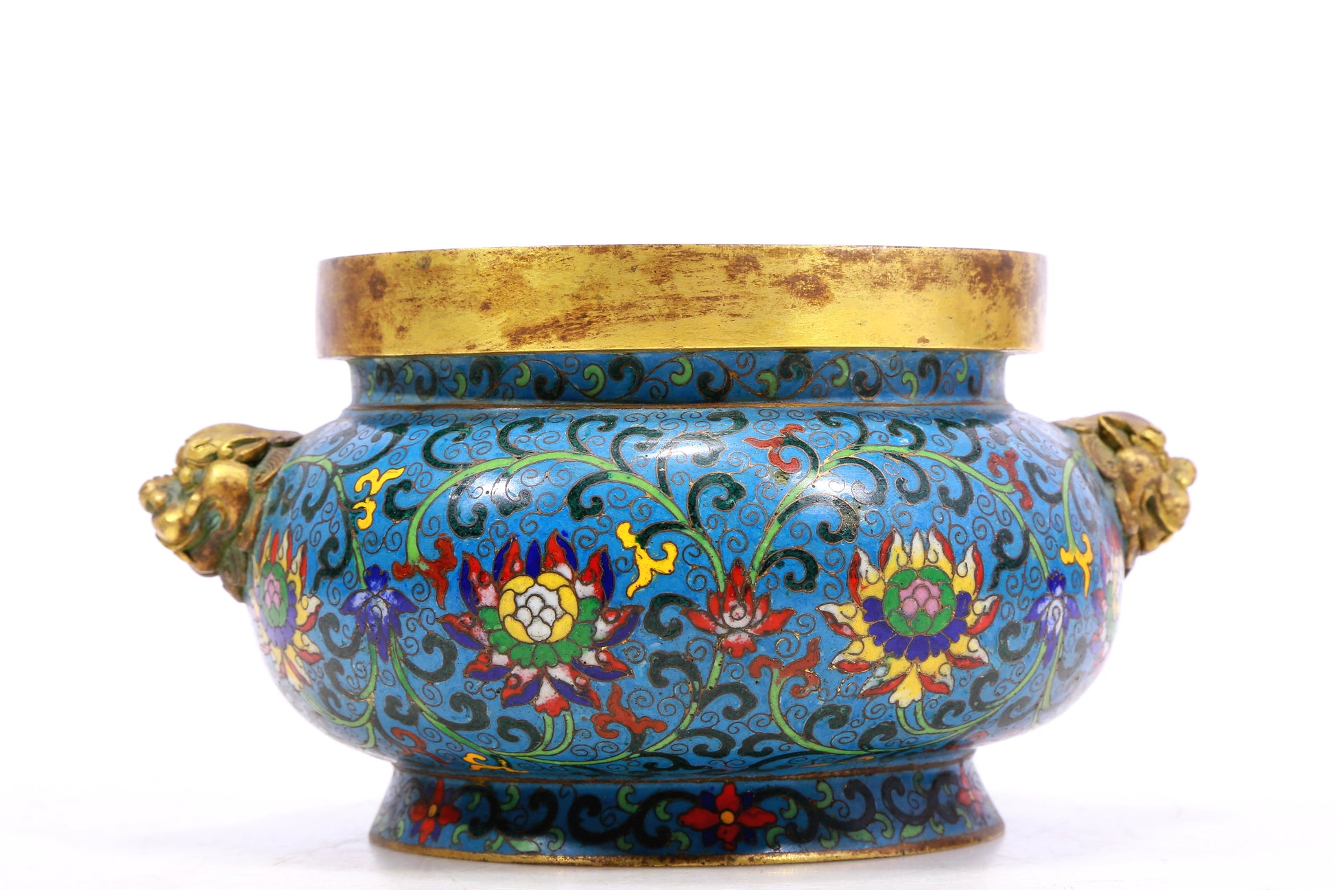 A Gorgeous Cloisonne 'Scrolling Lotus' Lion-Handled Censer