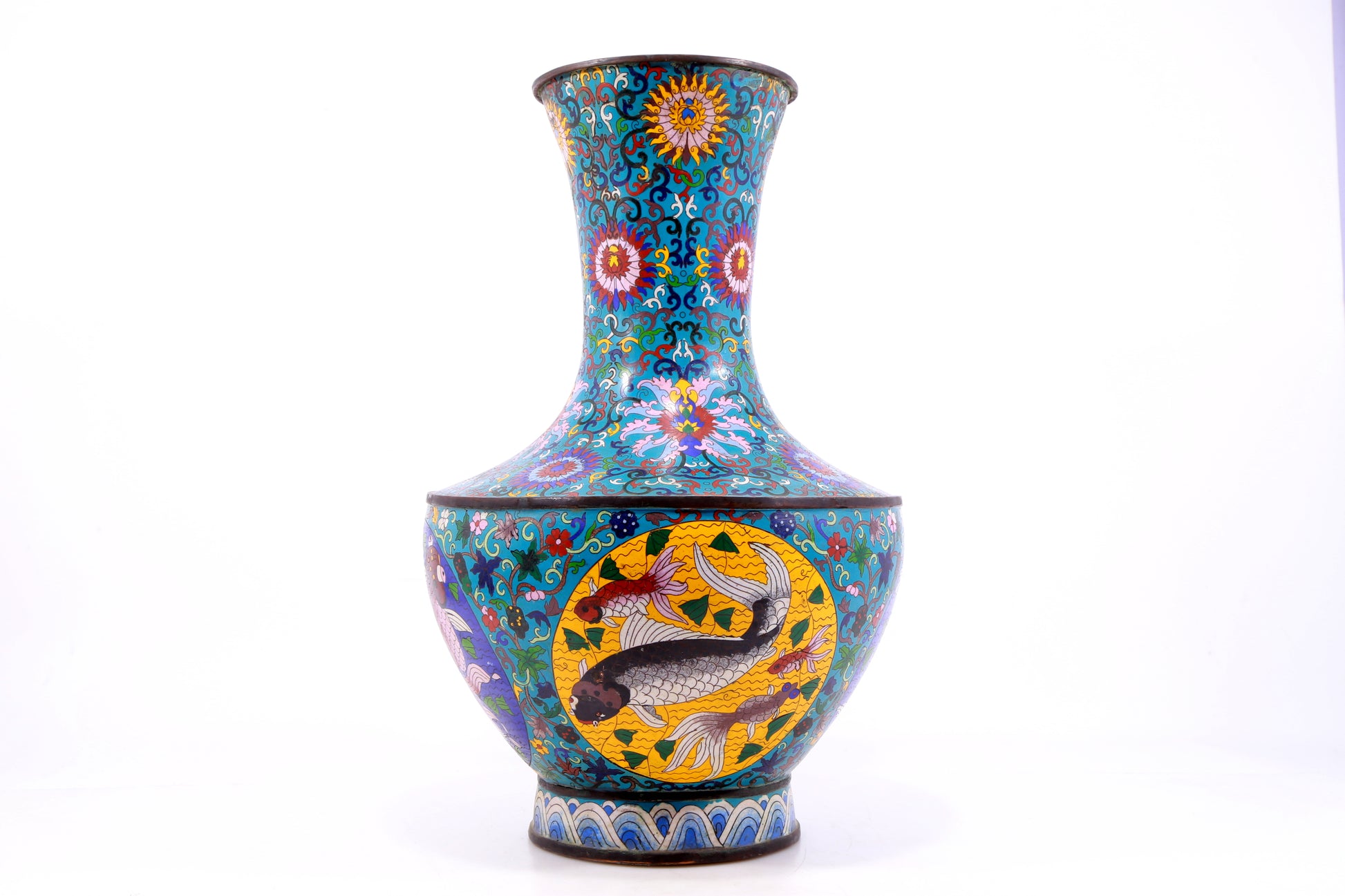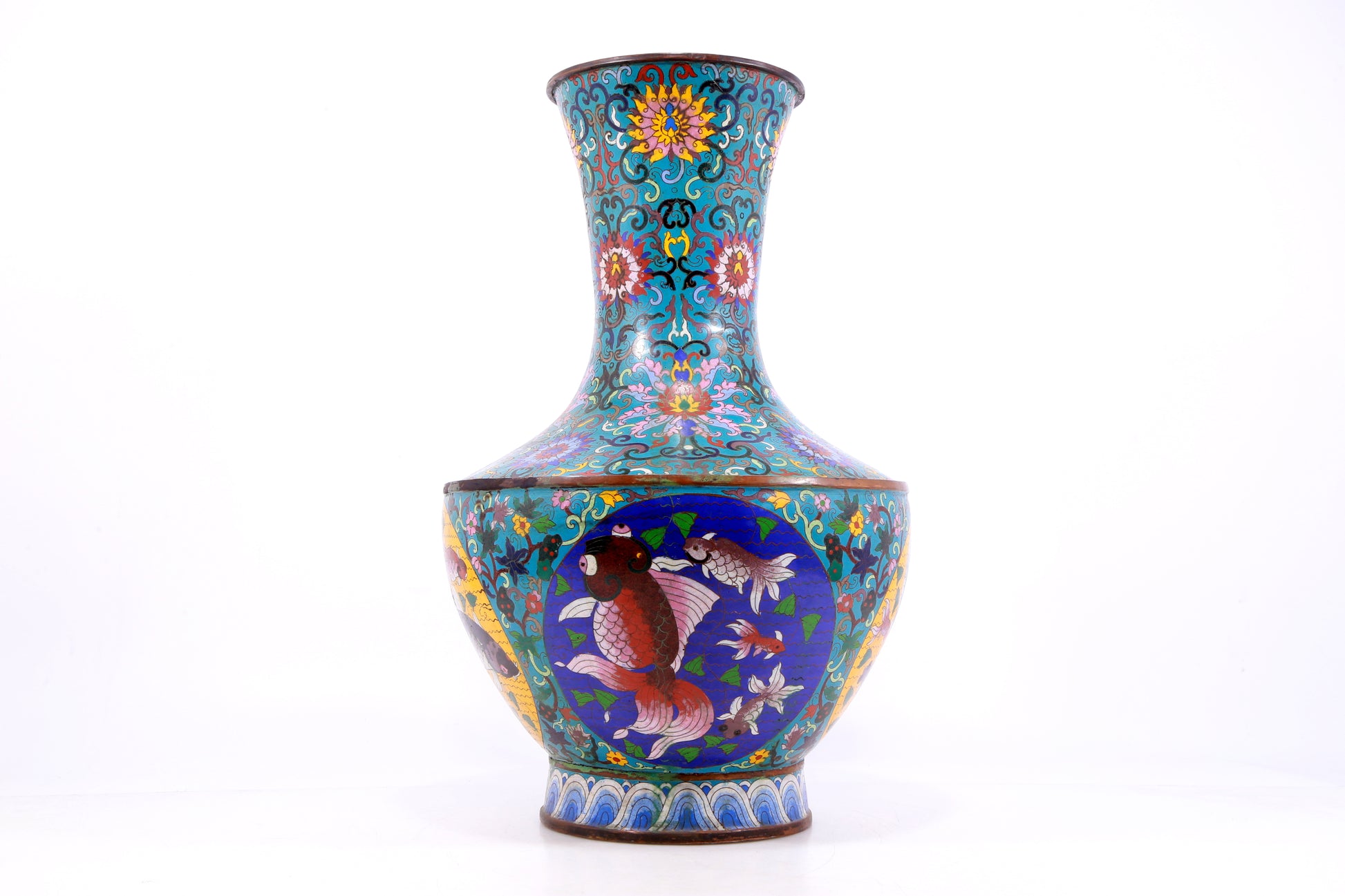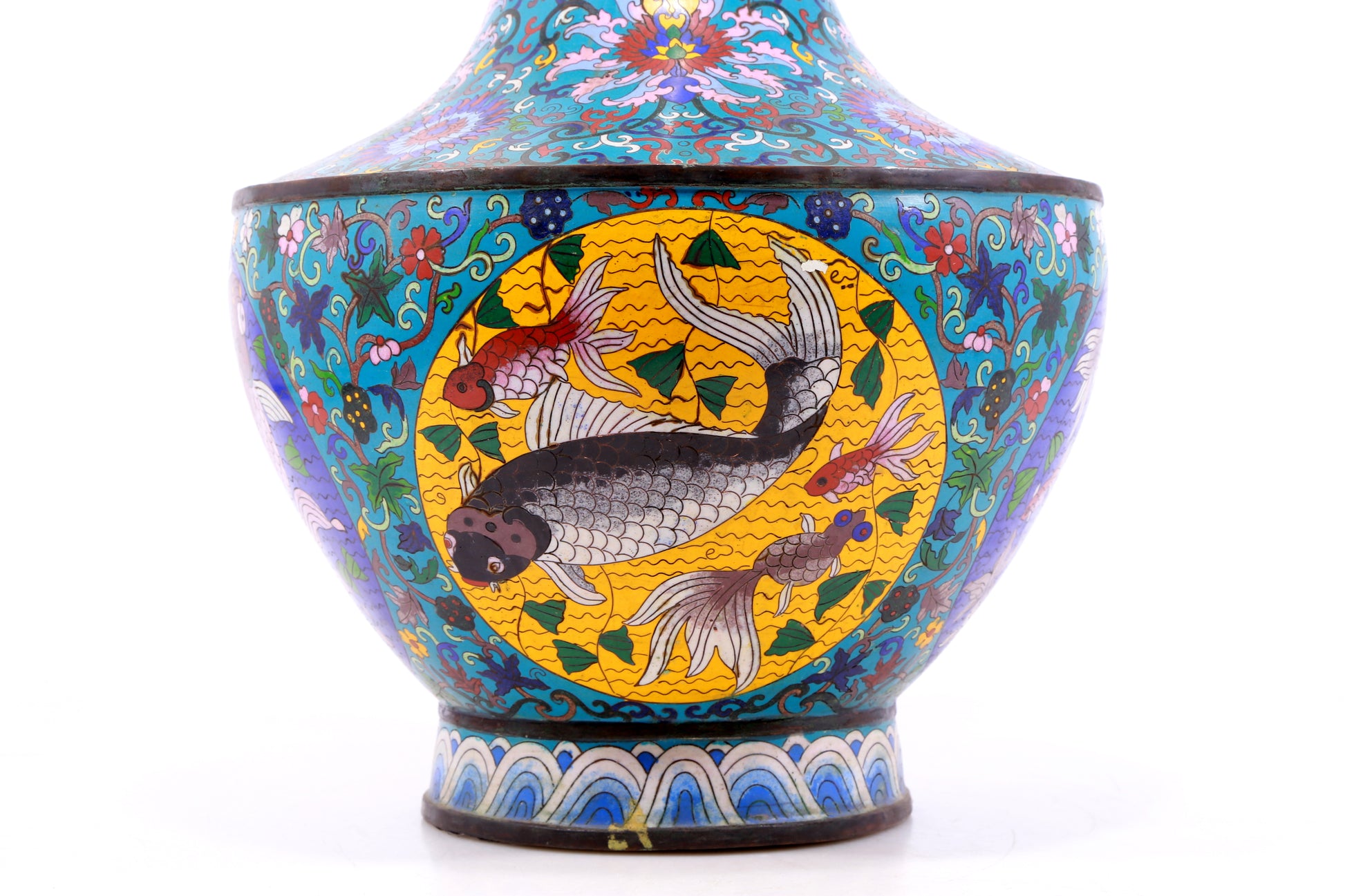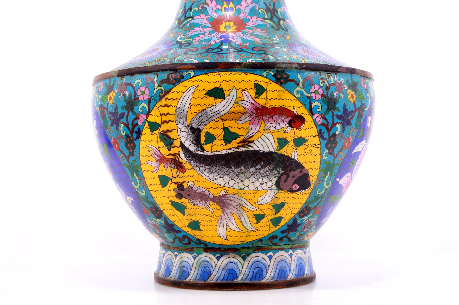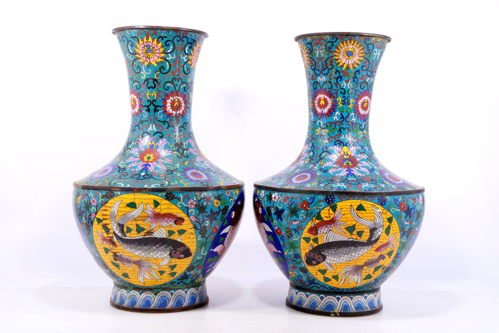 A Perfect Pair of Cloisonné Floral Fish Pattern Bottles