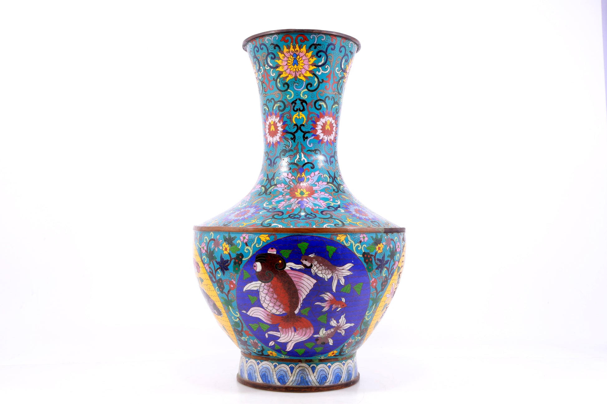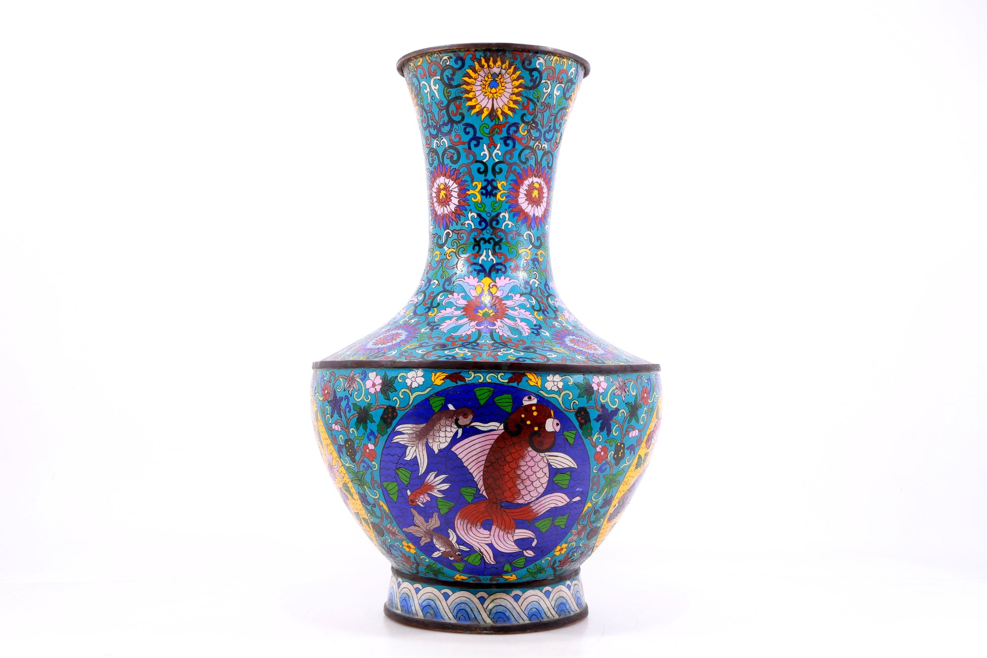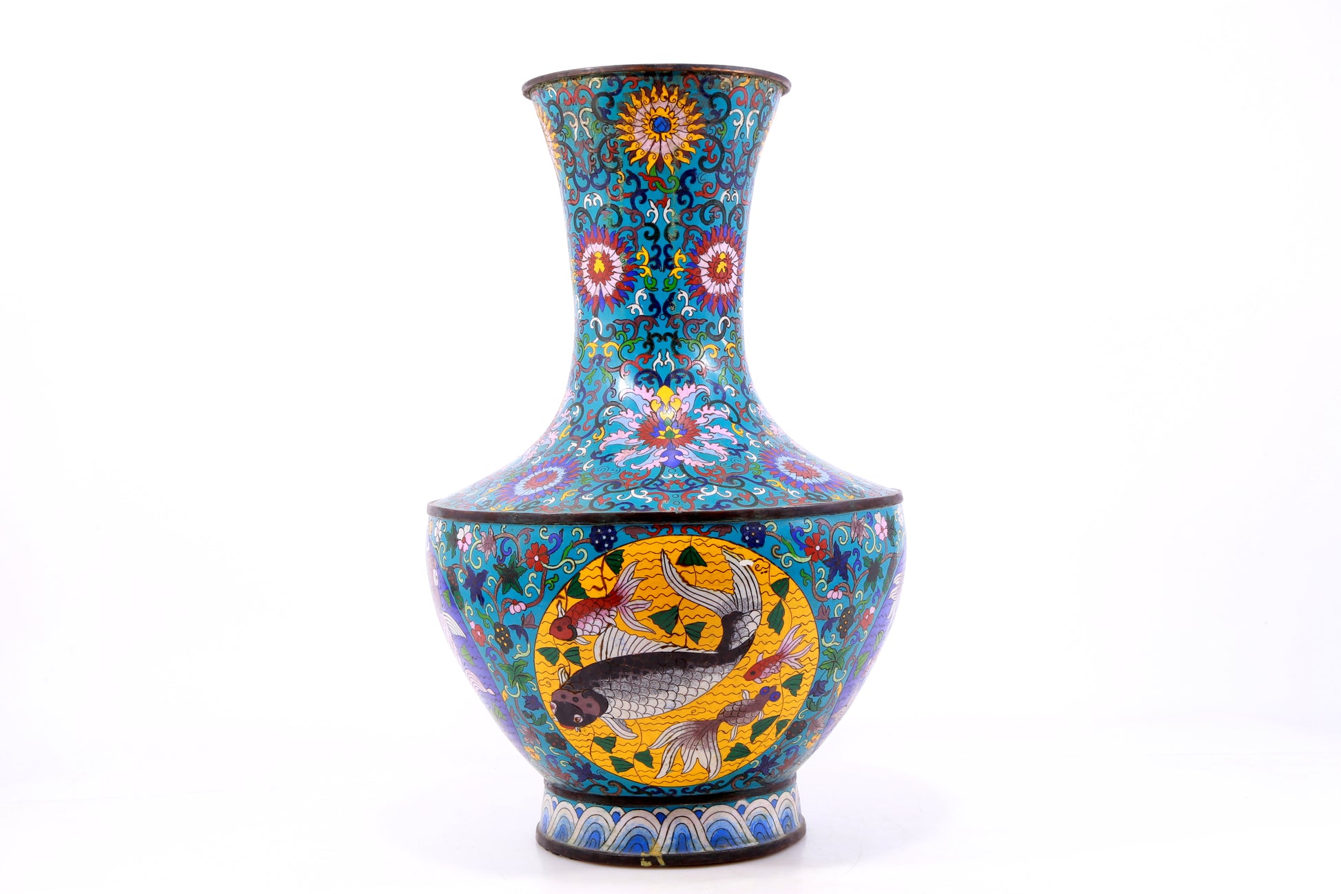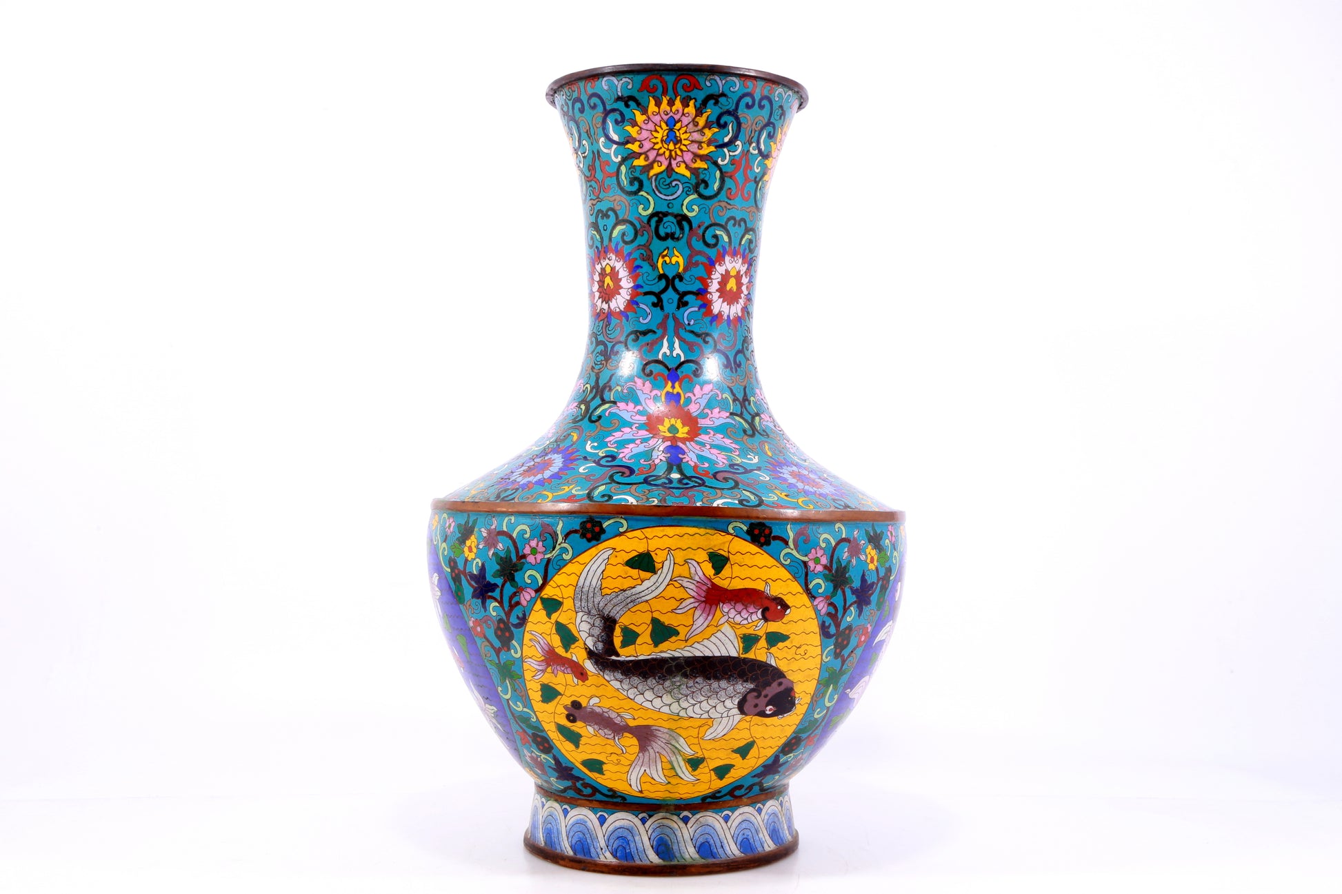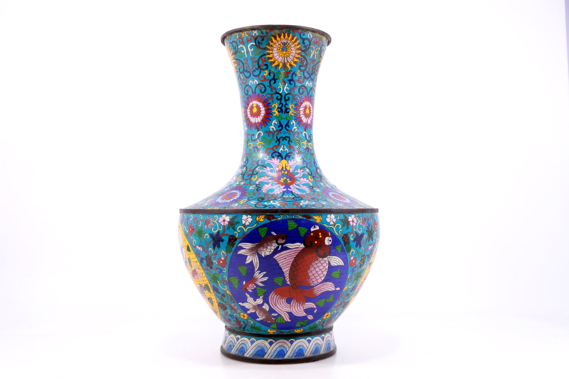 A Perfect Pair of Cloisonné Floral Fish Pattern Bottles