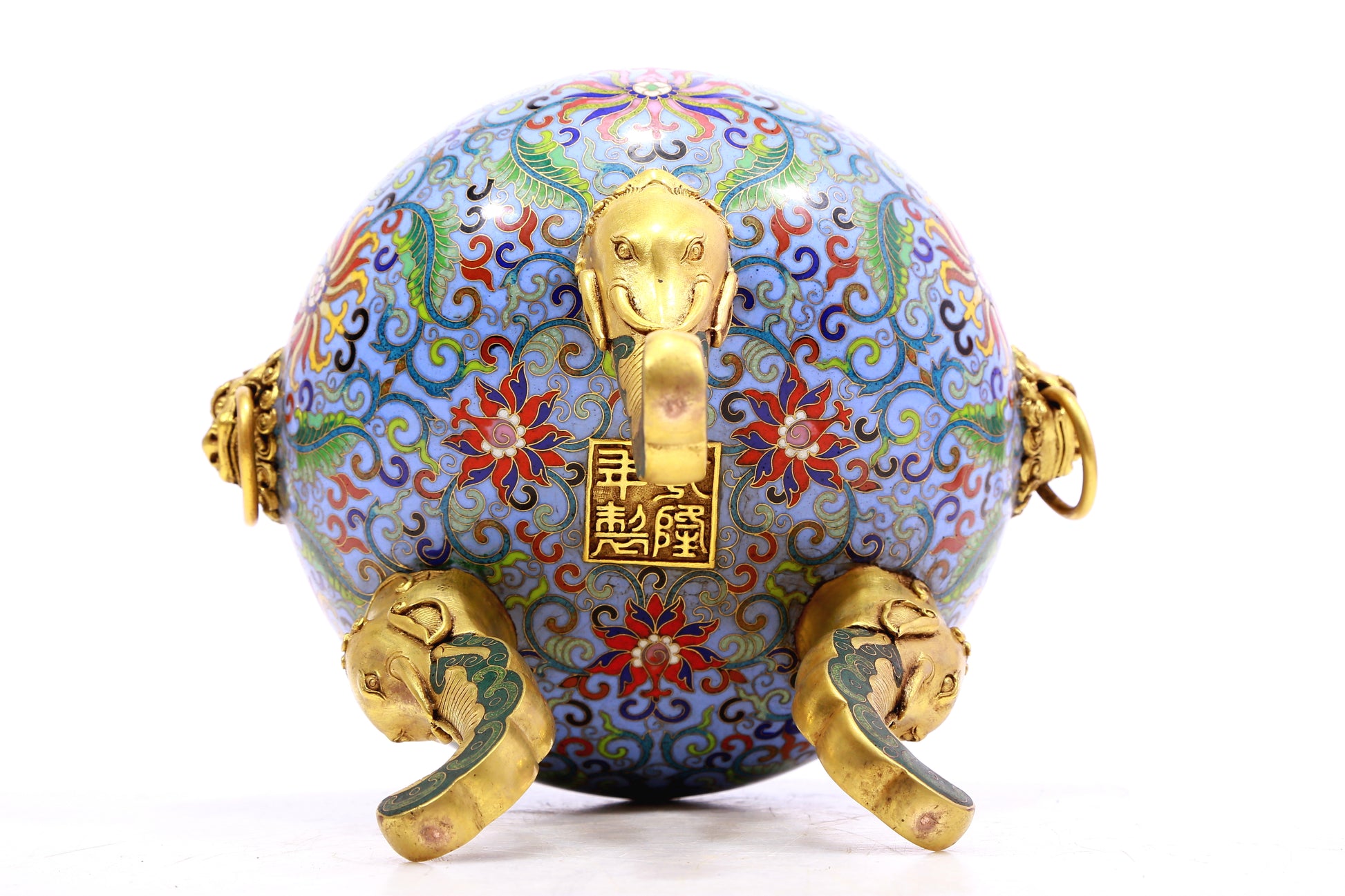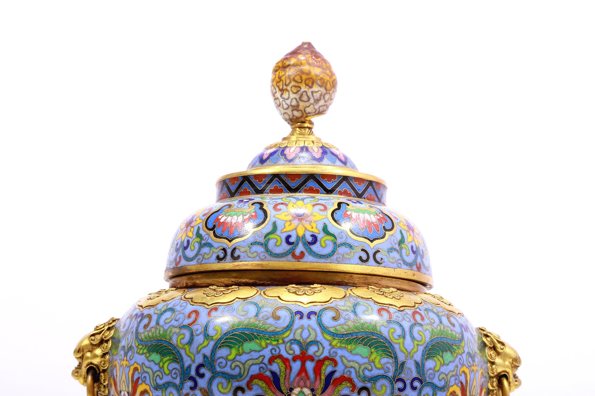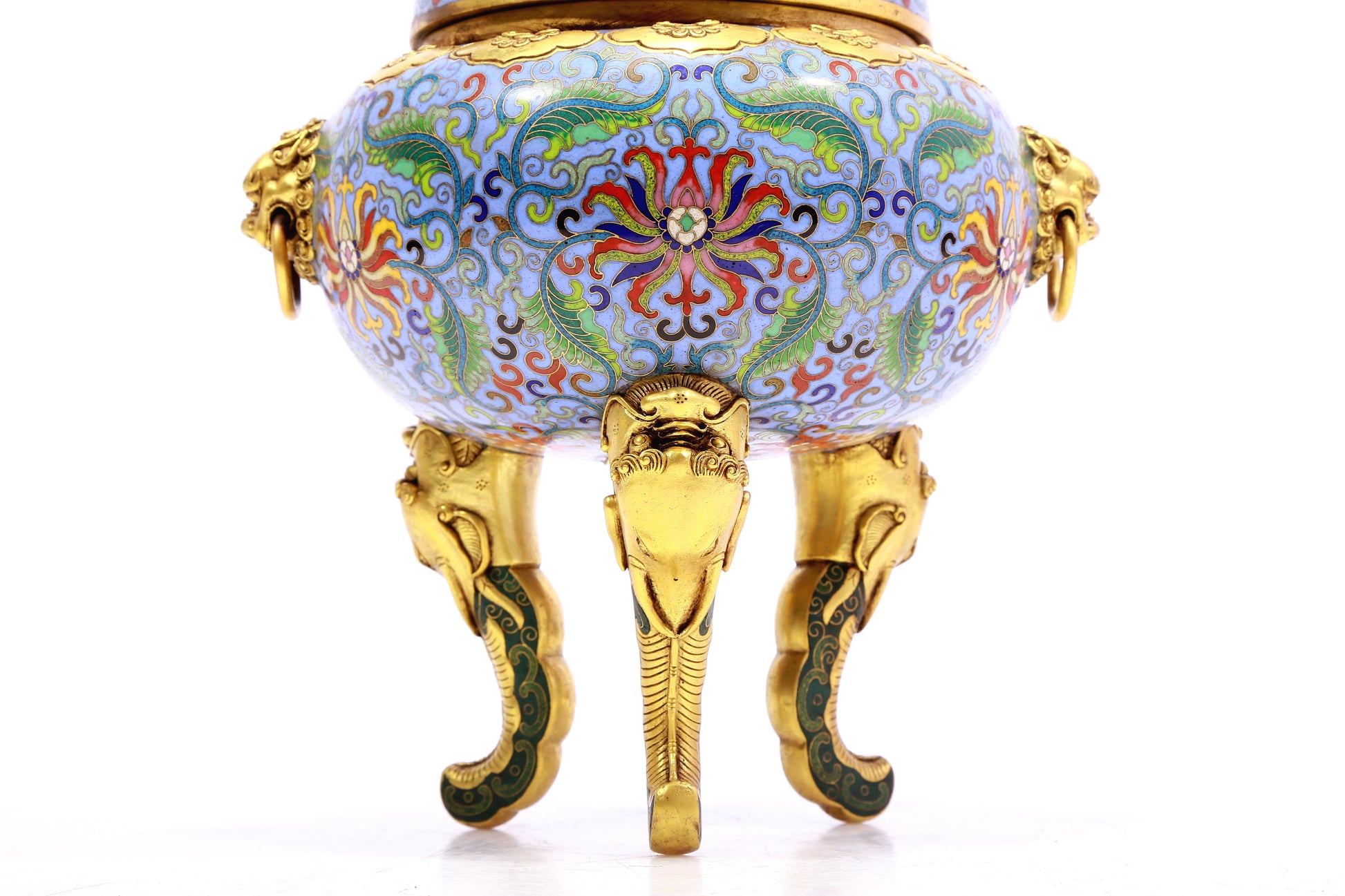 A Precious Cloisonne 'Scrolling Lotus' Lion-Handled Tripod Censer And Cover