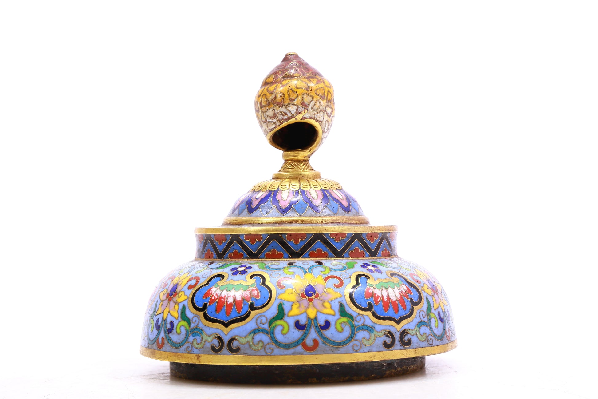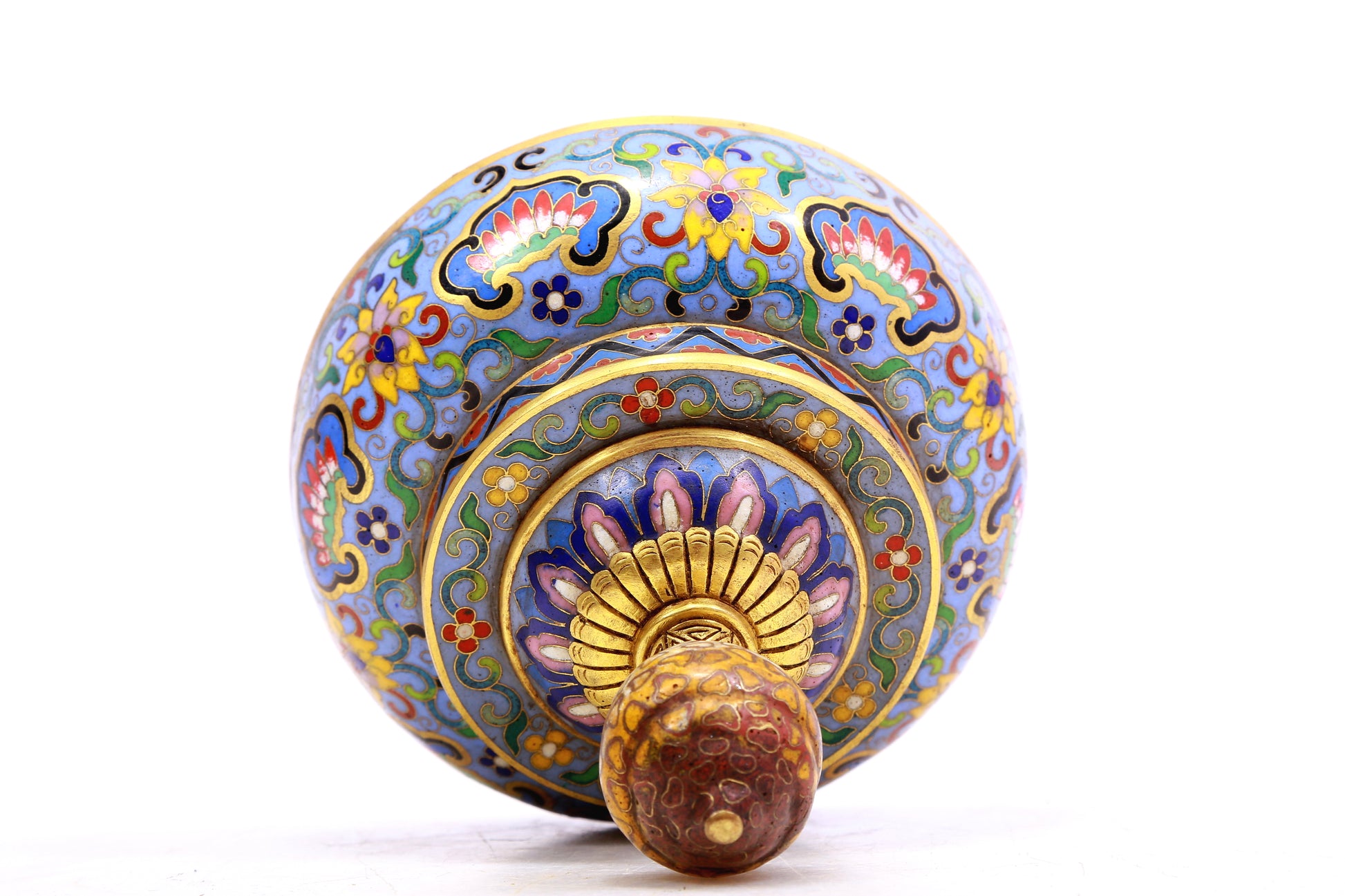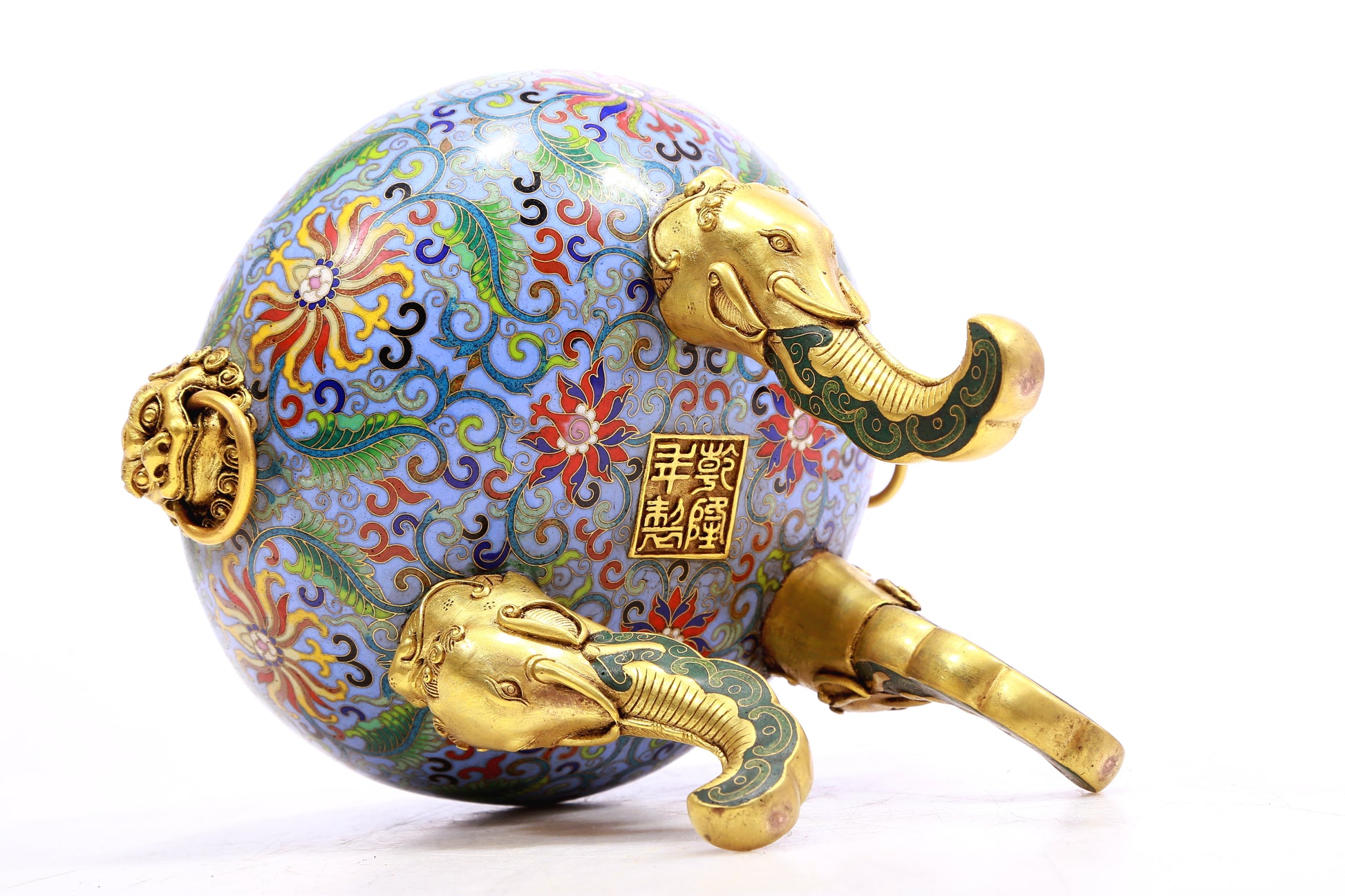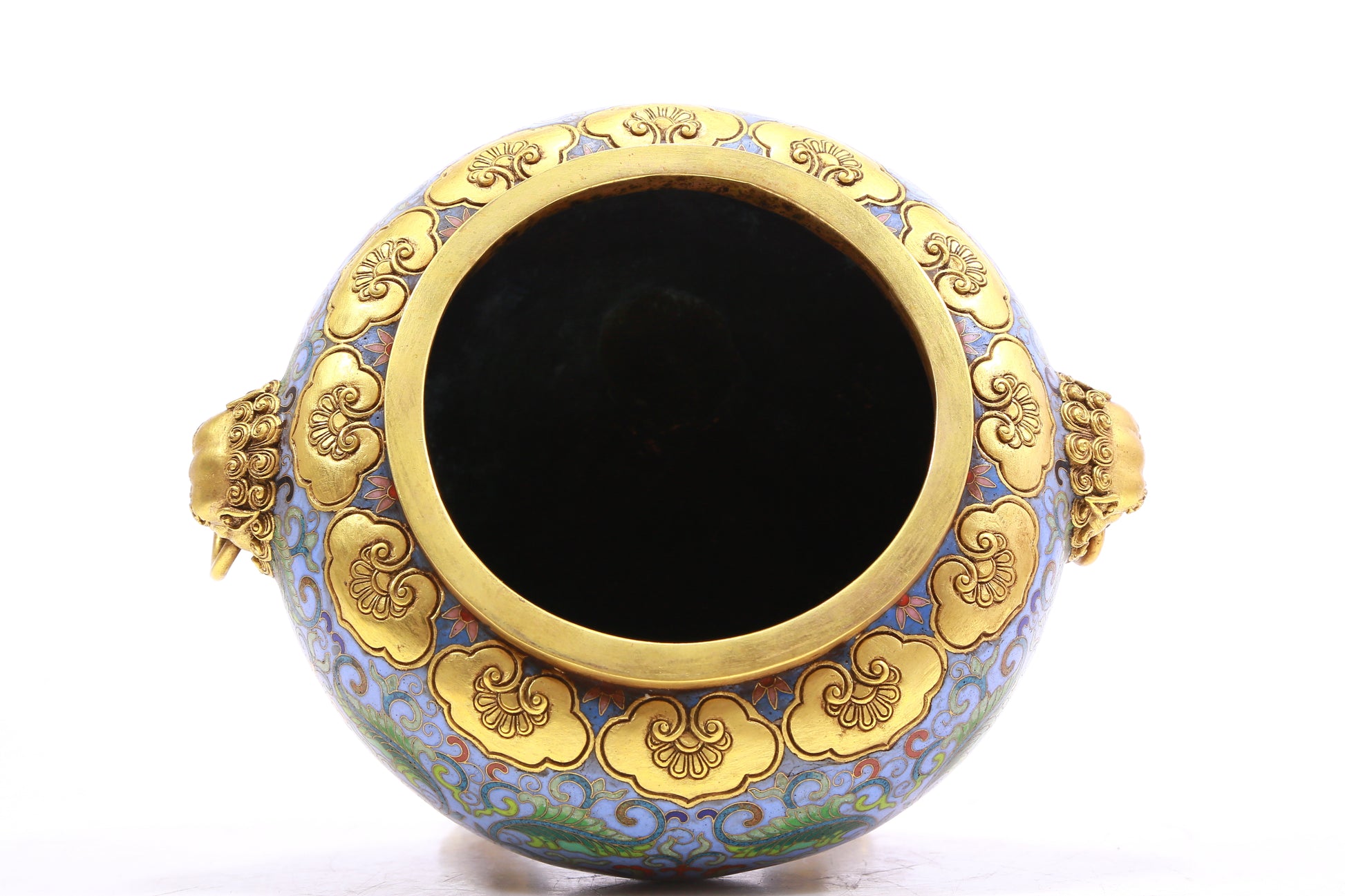 A Precious Cloisonne 'Scrolling Lotus' Lion-Handled Tripod Censer And Cover