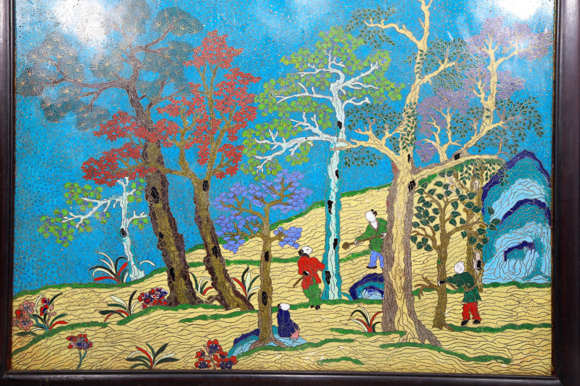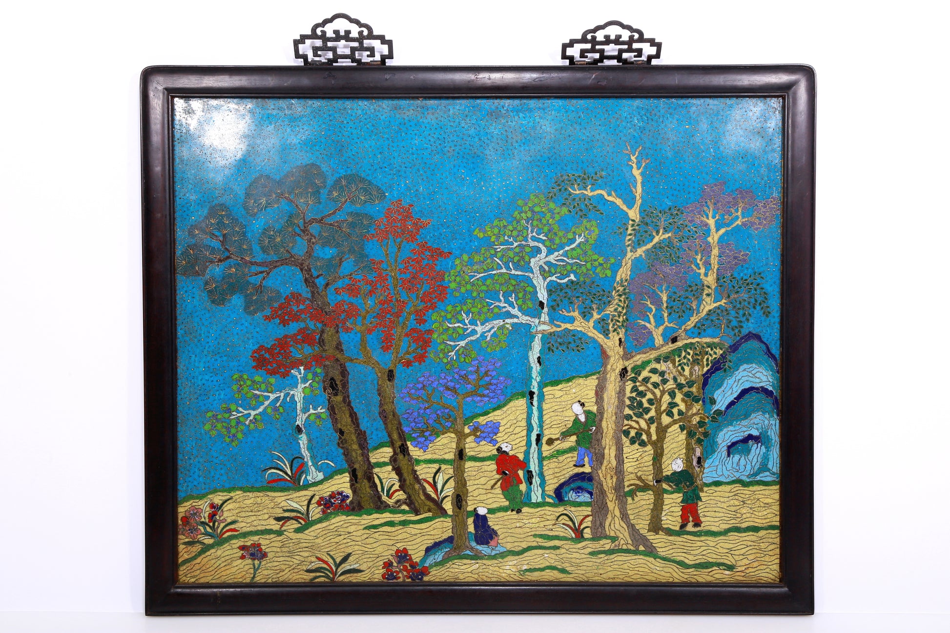 A Superb Cloisonne 'Landscape& Figure' Hanging Screen