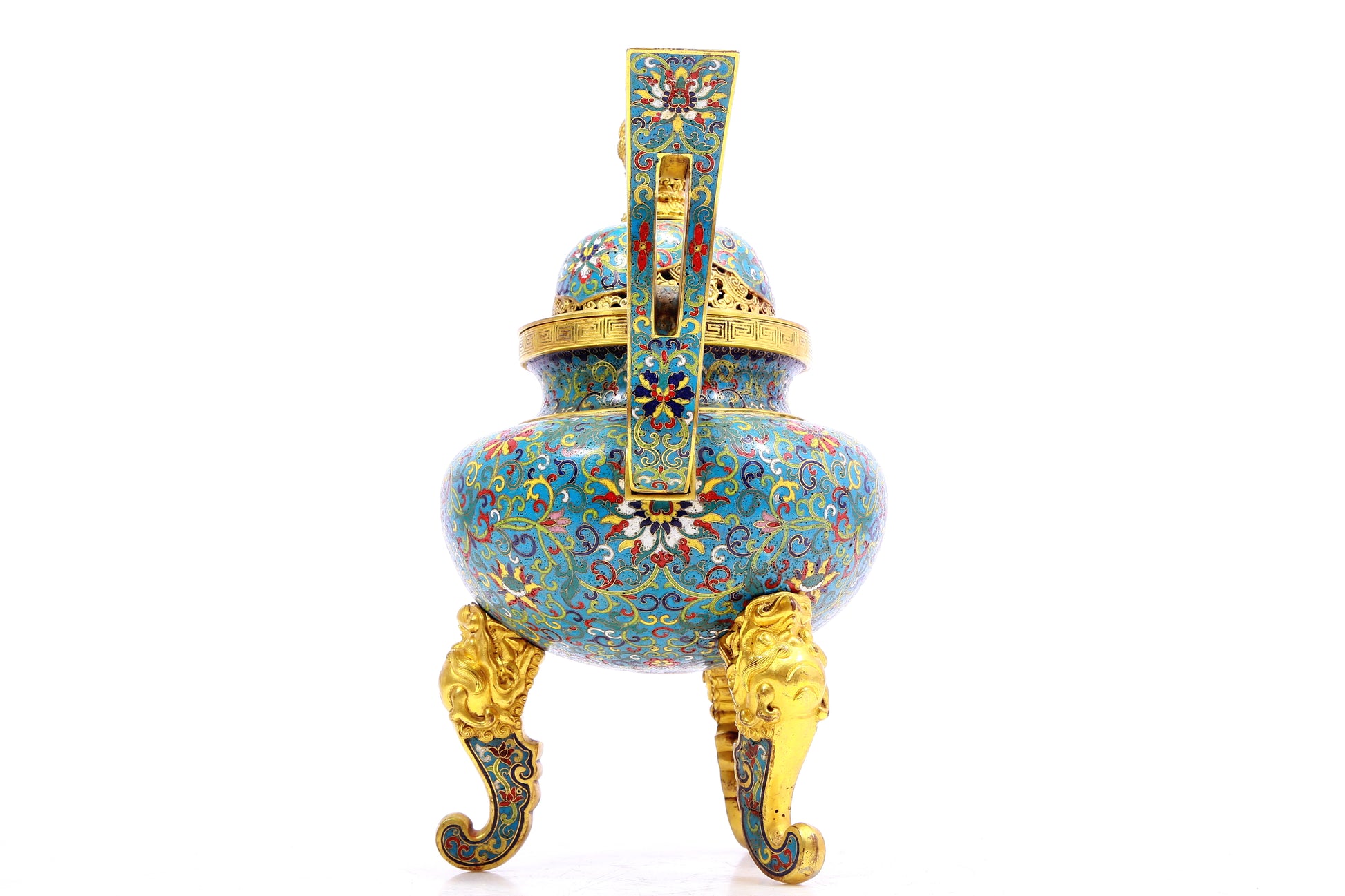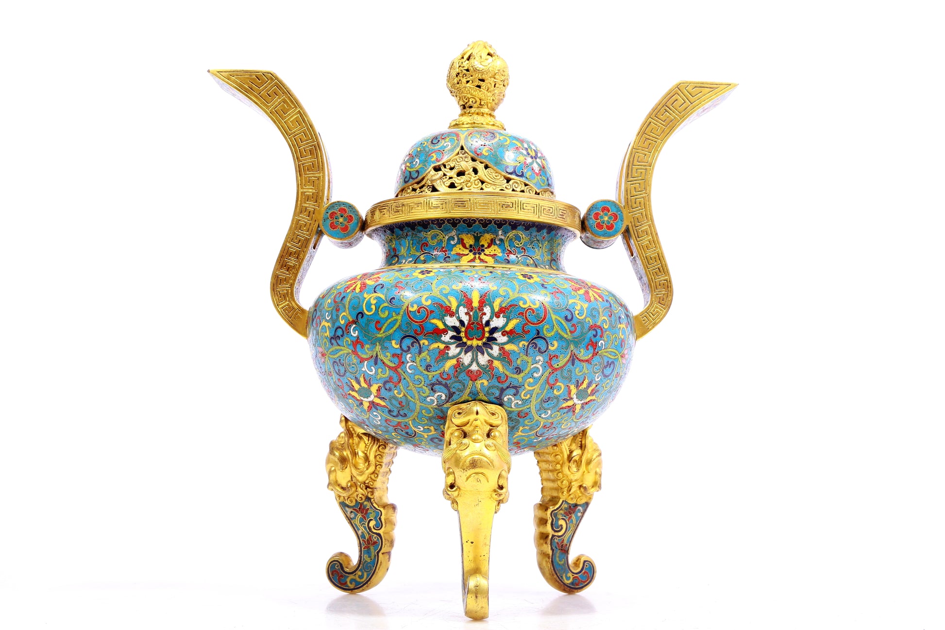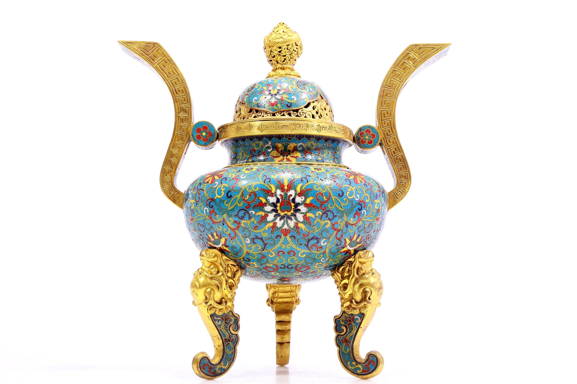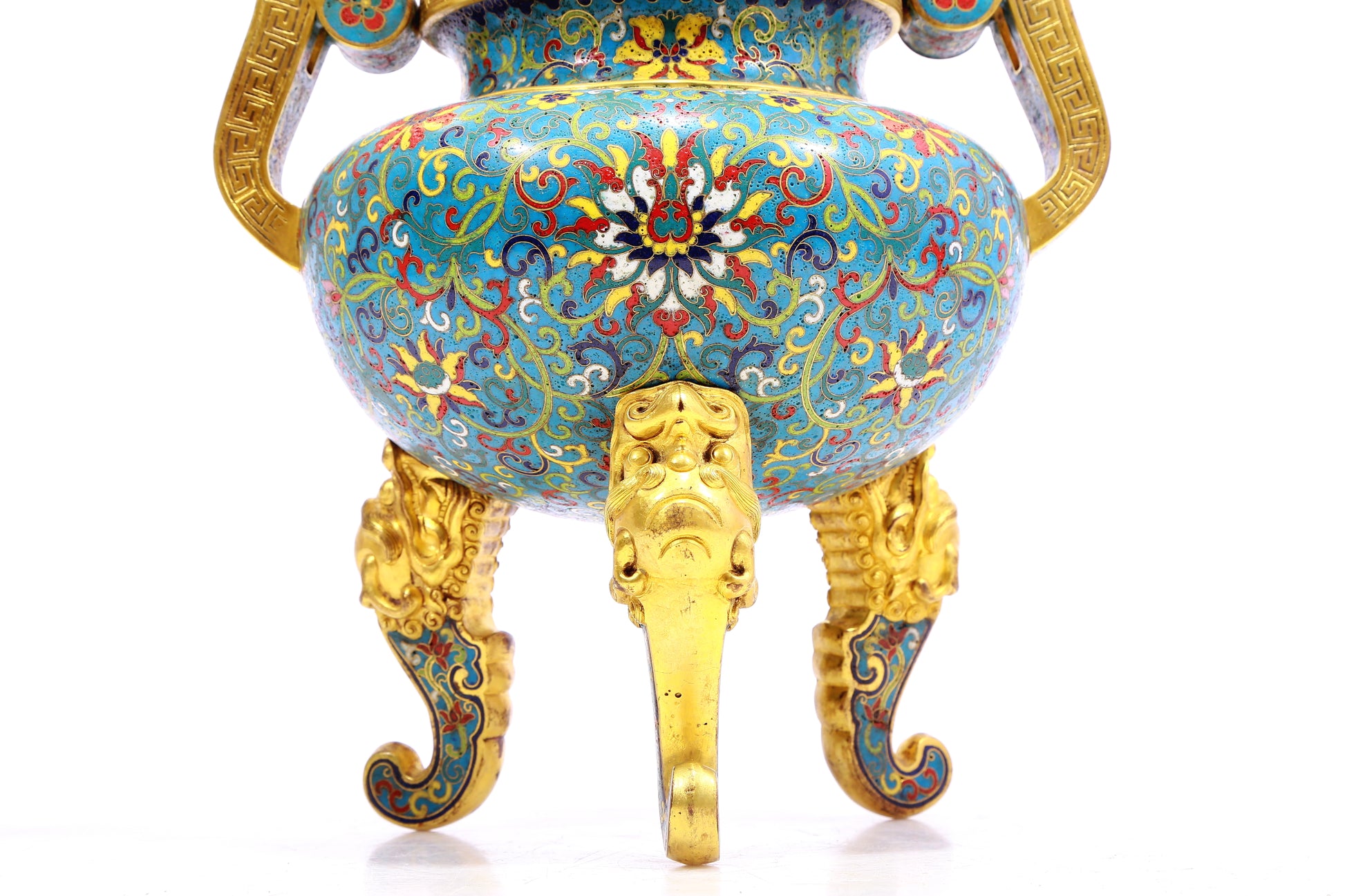 A Superb Cloisonne 'Scrolling Lotus& Dragon' Tripod Censer