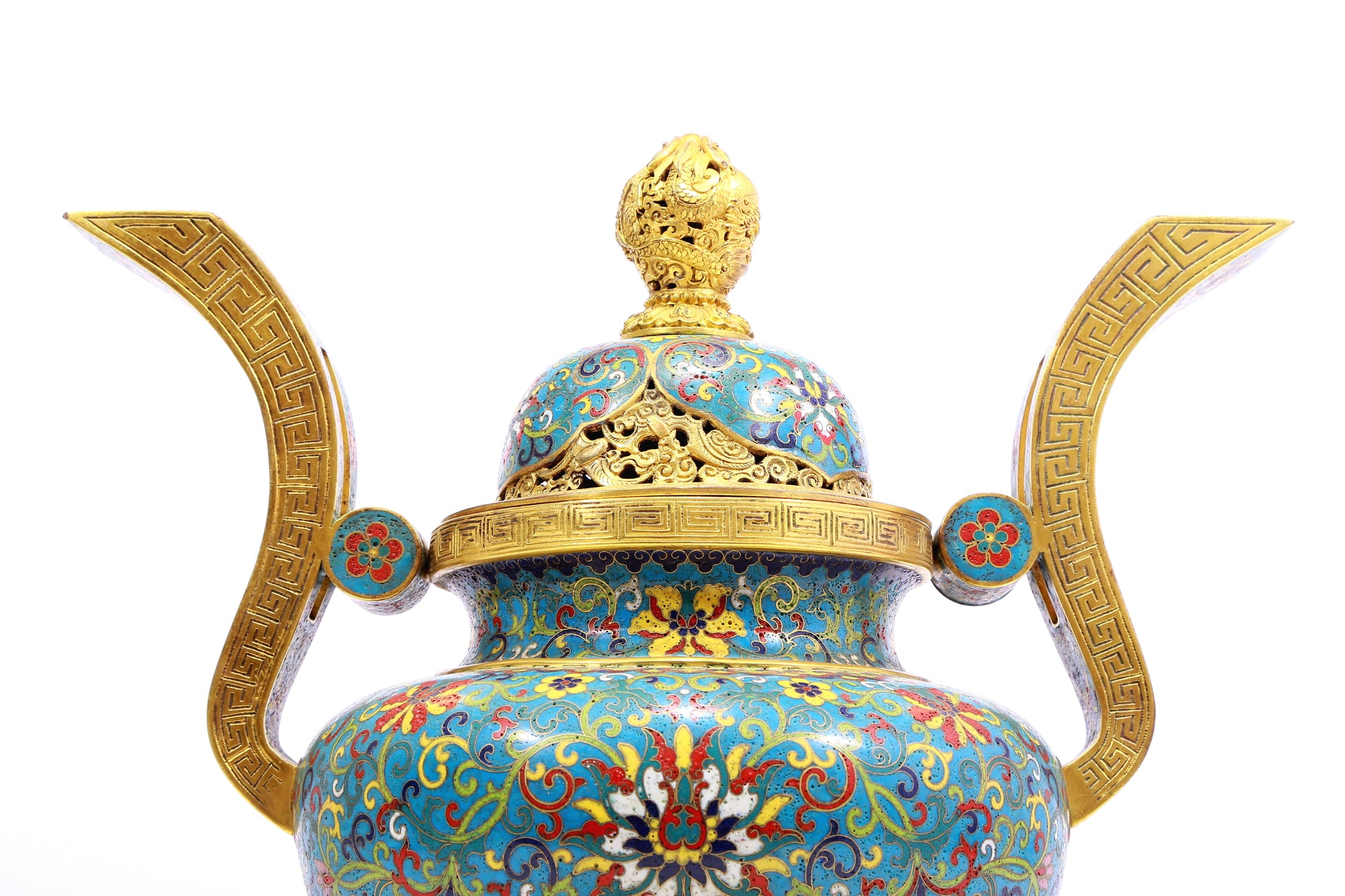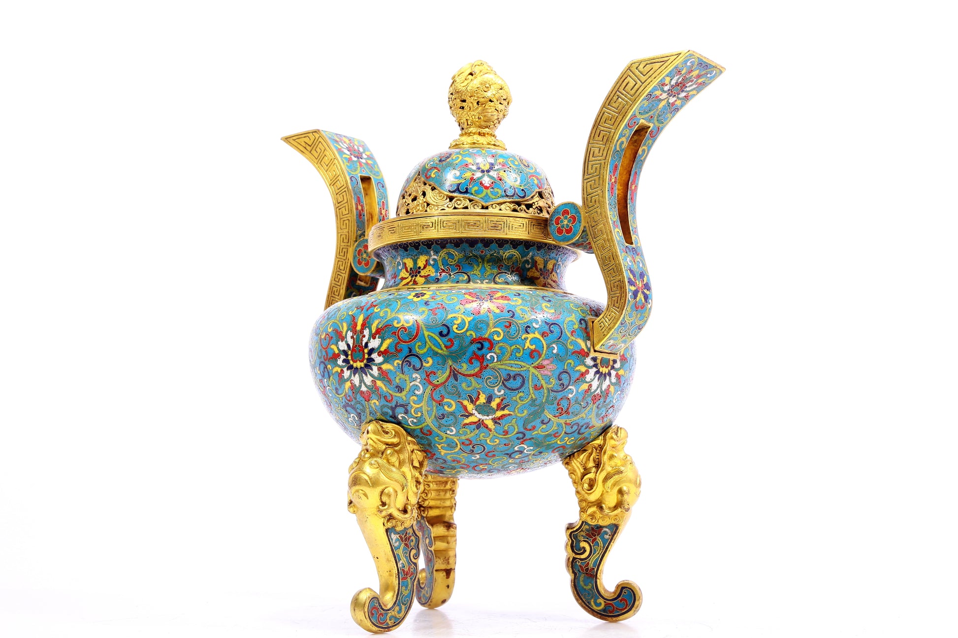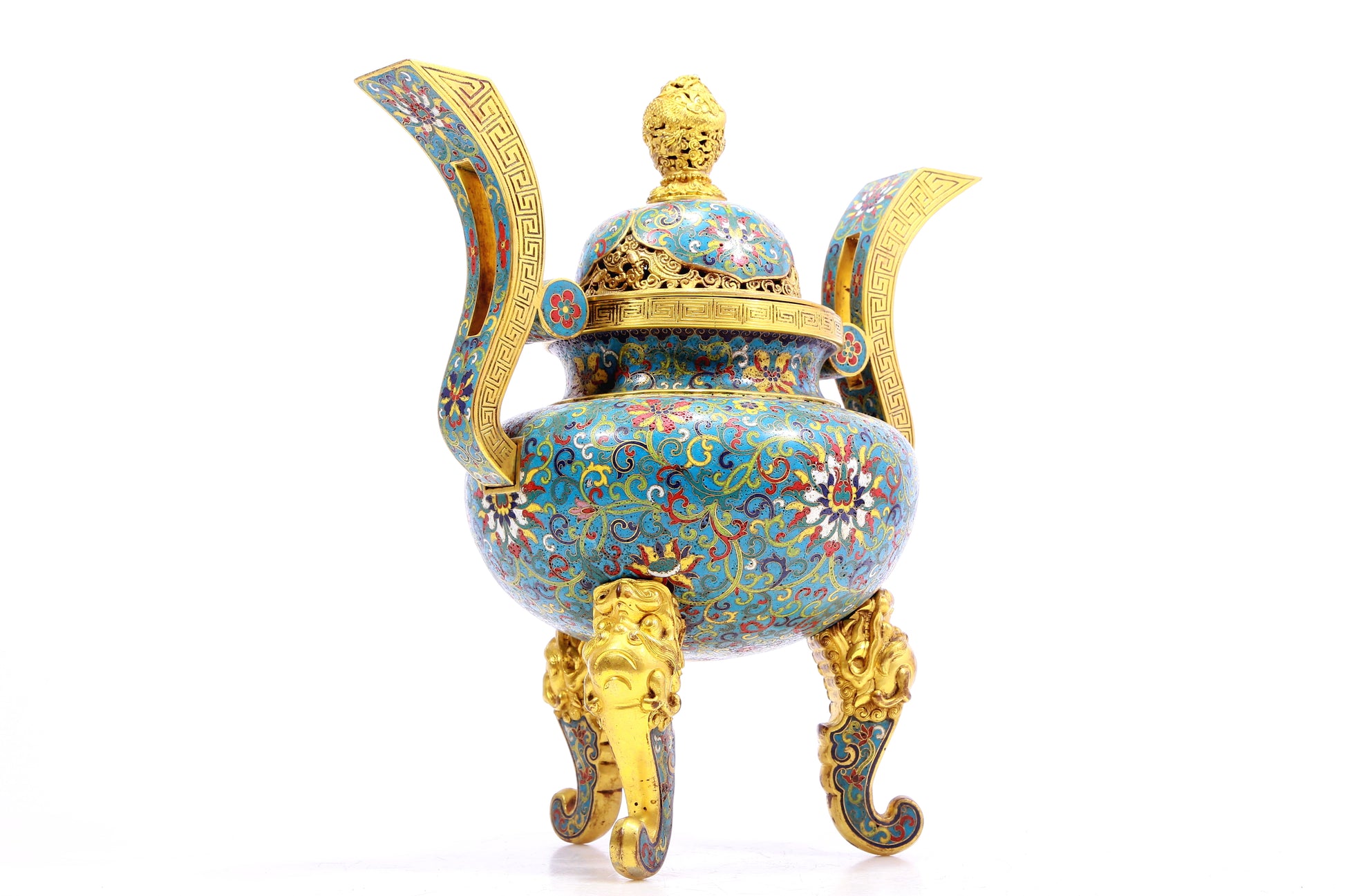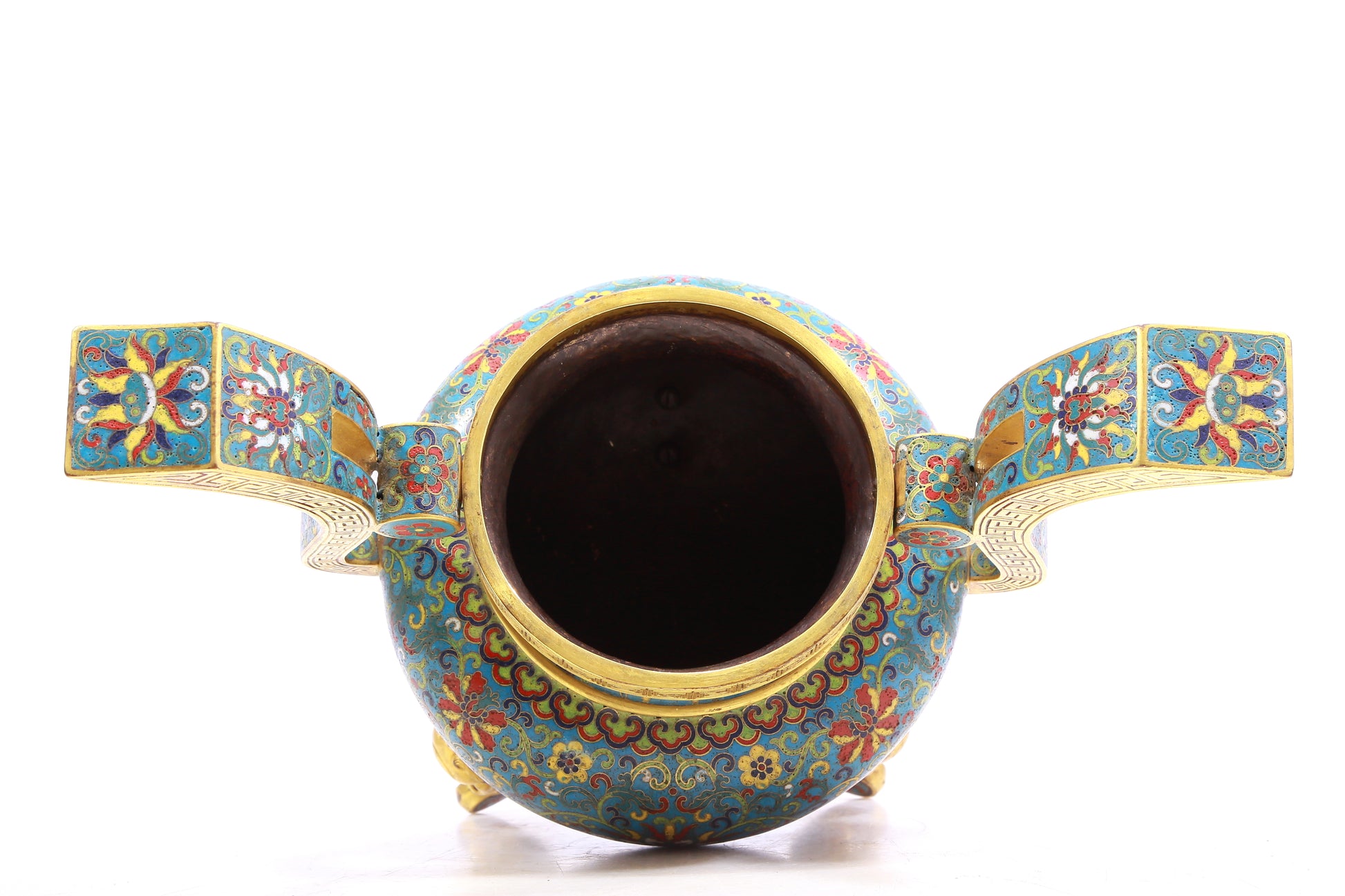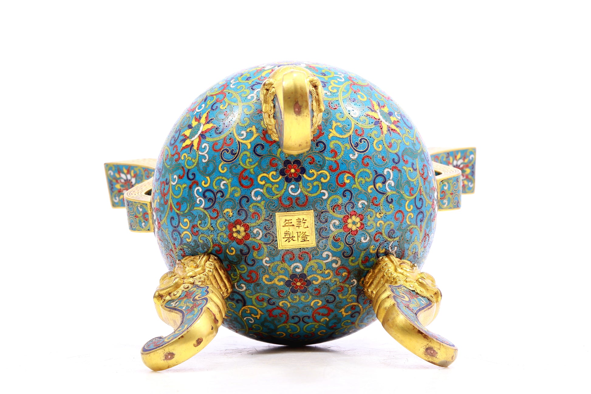 A Superb Cloisonne 'Scrolling Lotus& Dragon' Tripod Censer