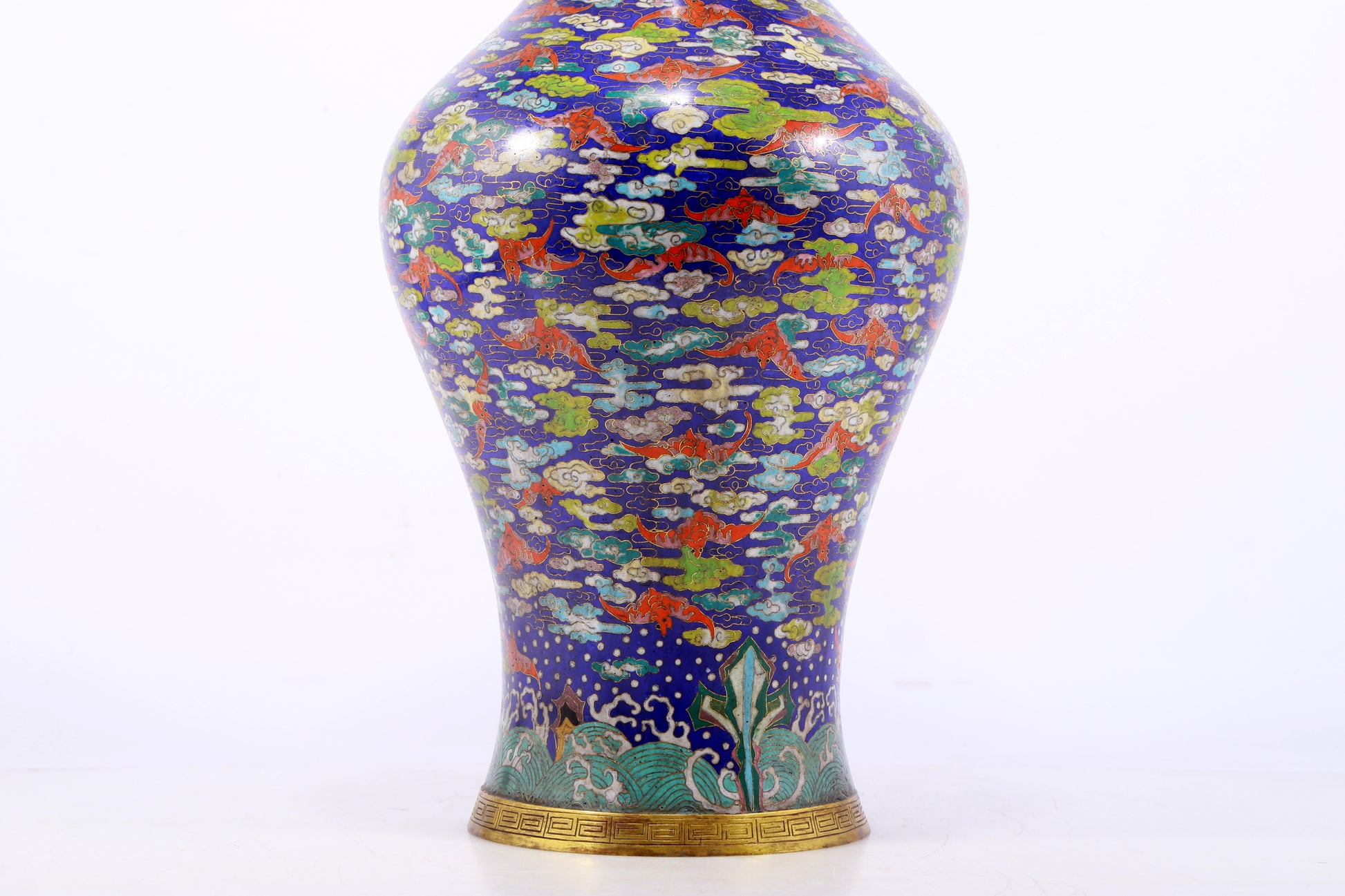An exquisite cloisonné 'Crane and Bat' pattern vase