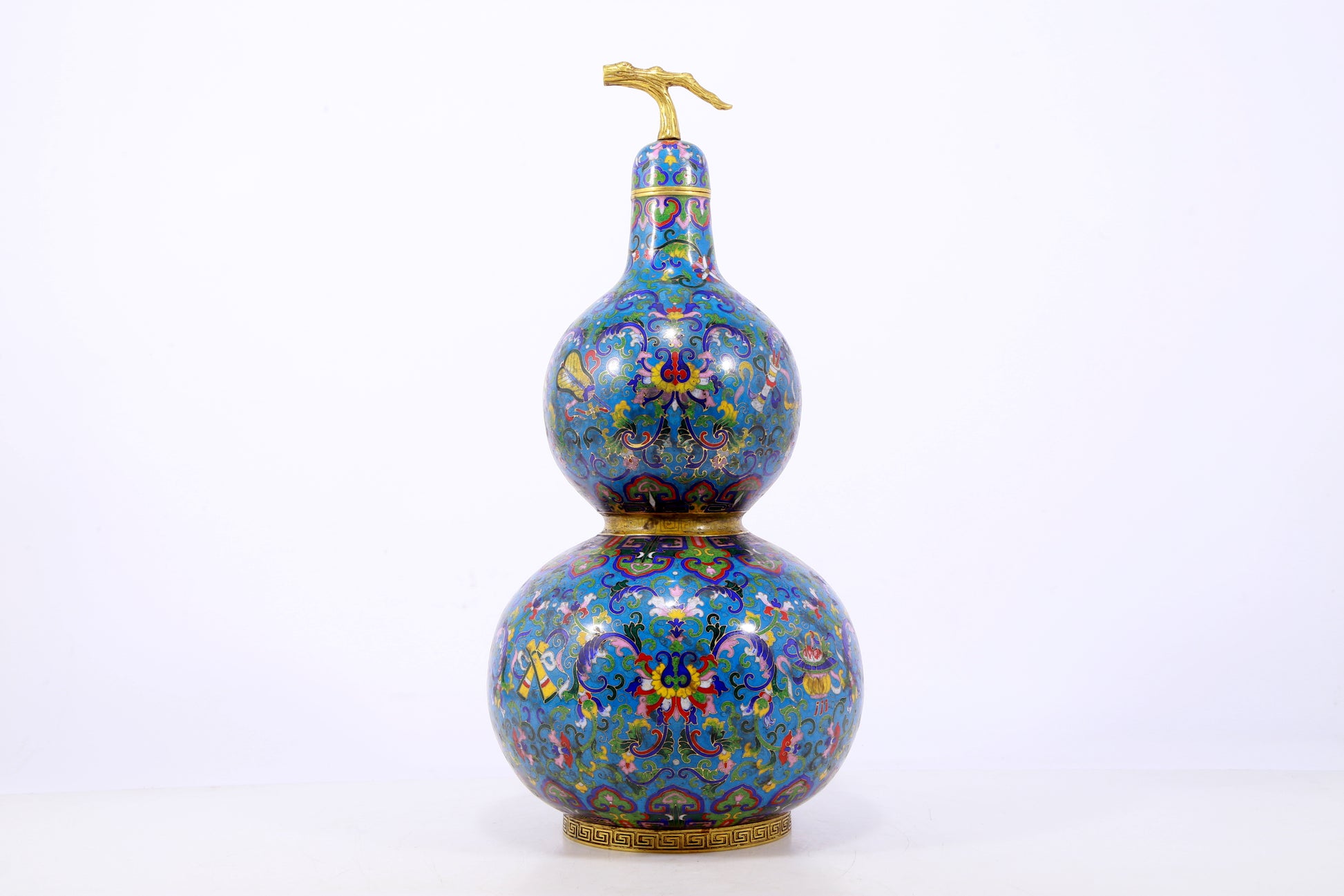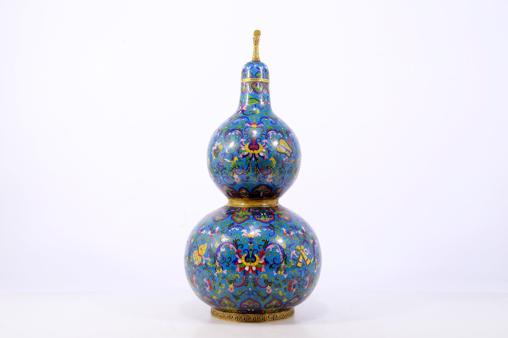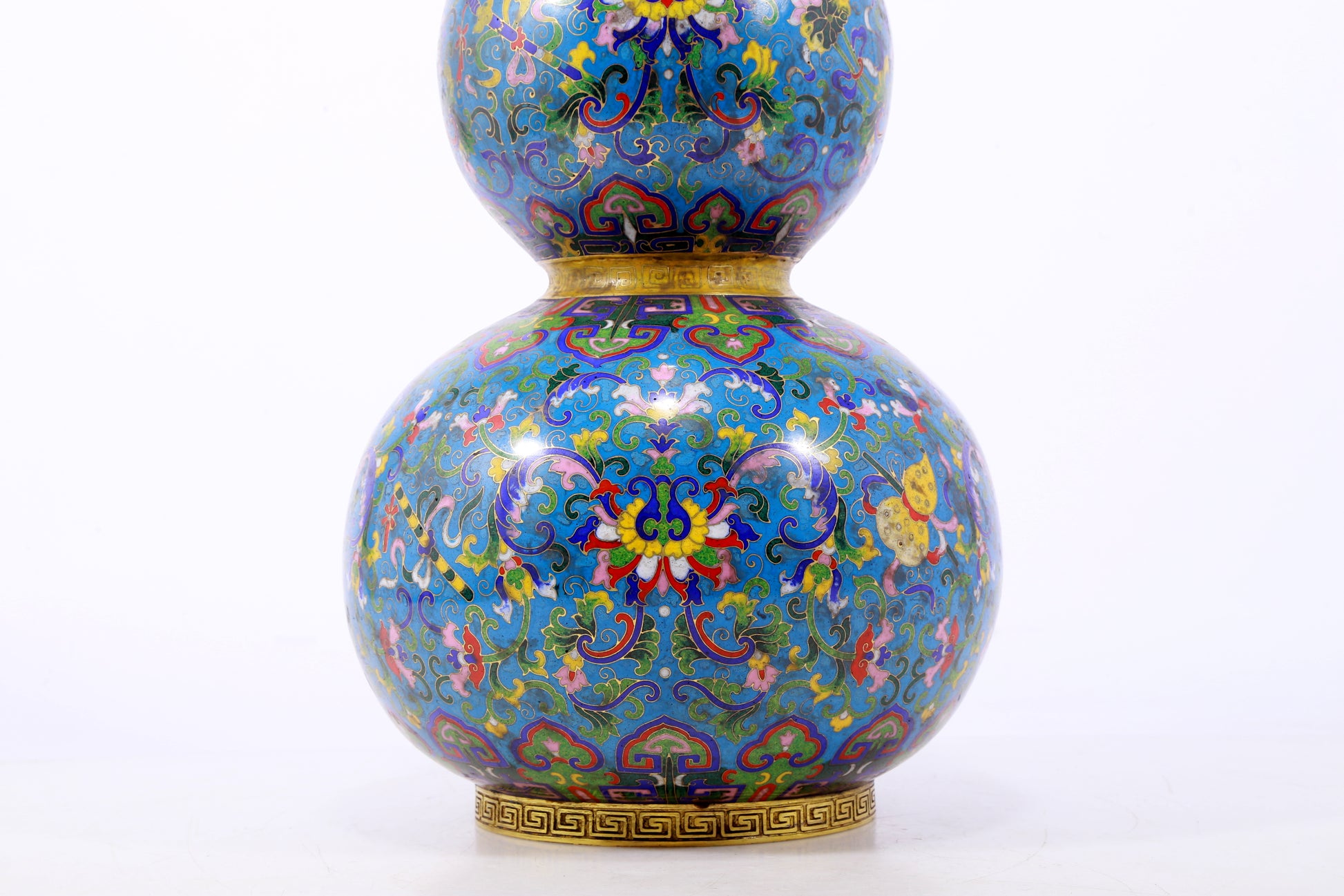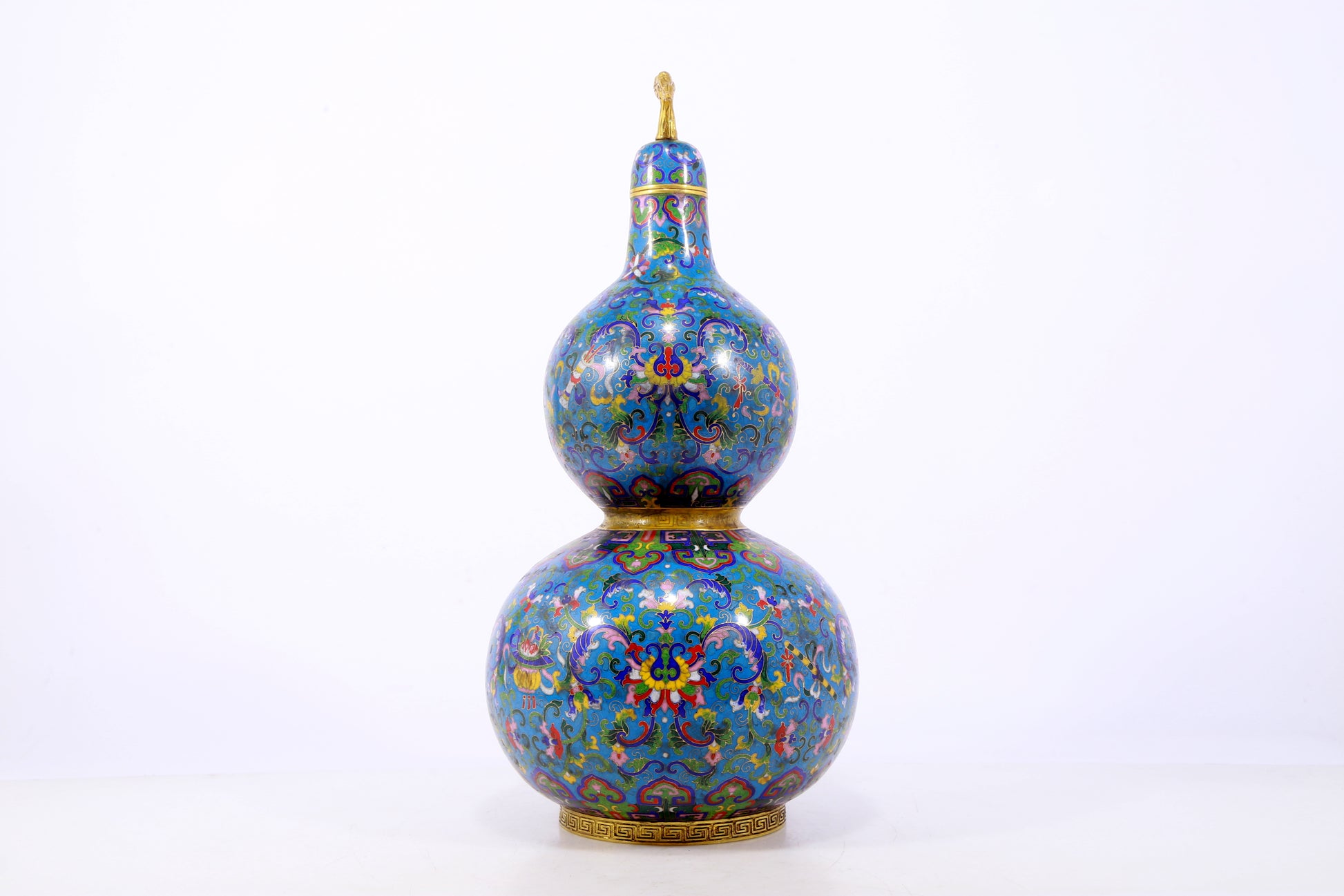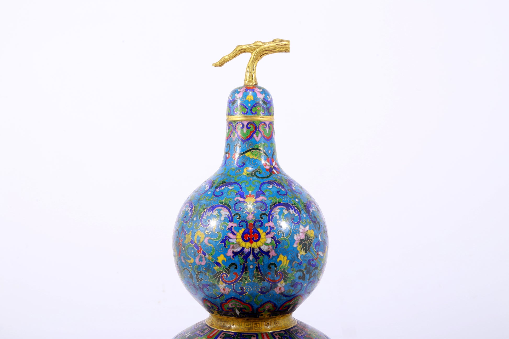 An exquisite cloisonné gourd-shaped vase with lotus pattern