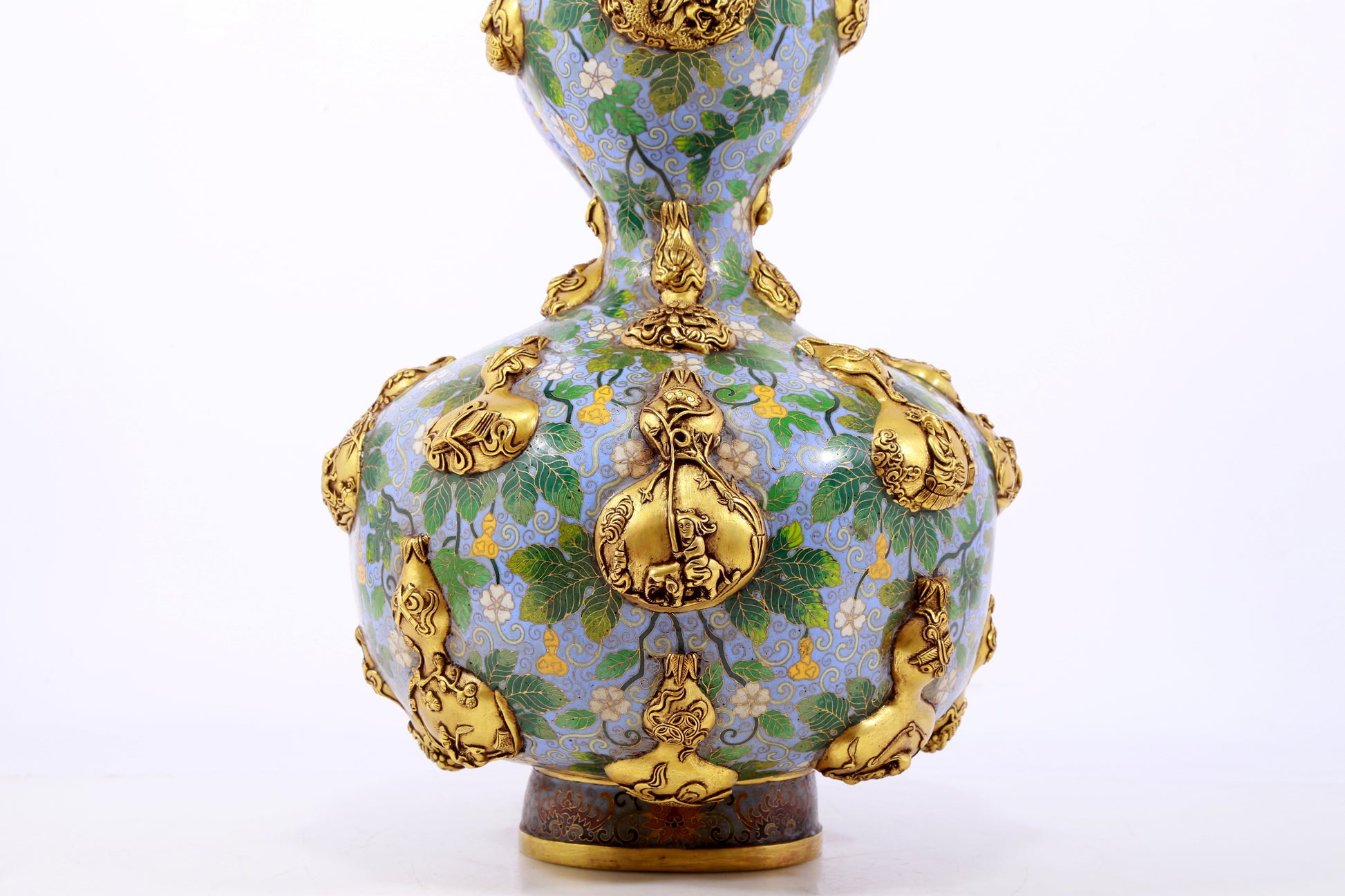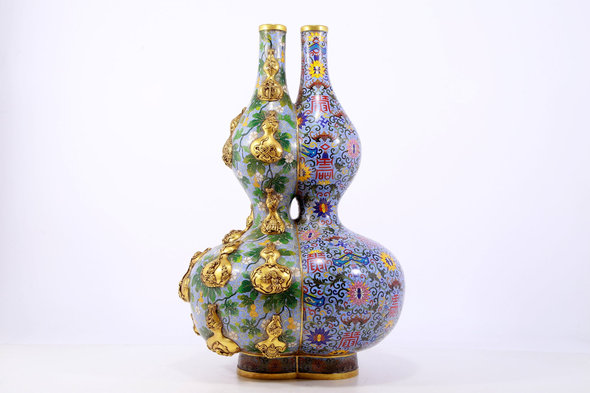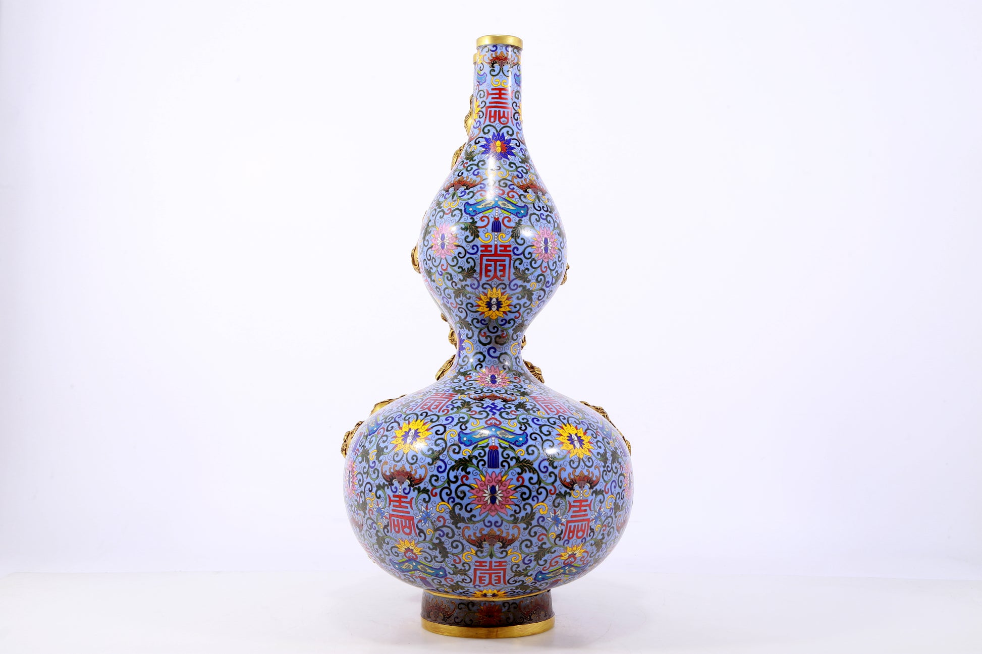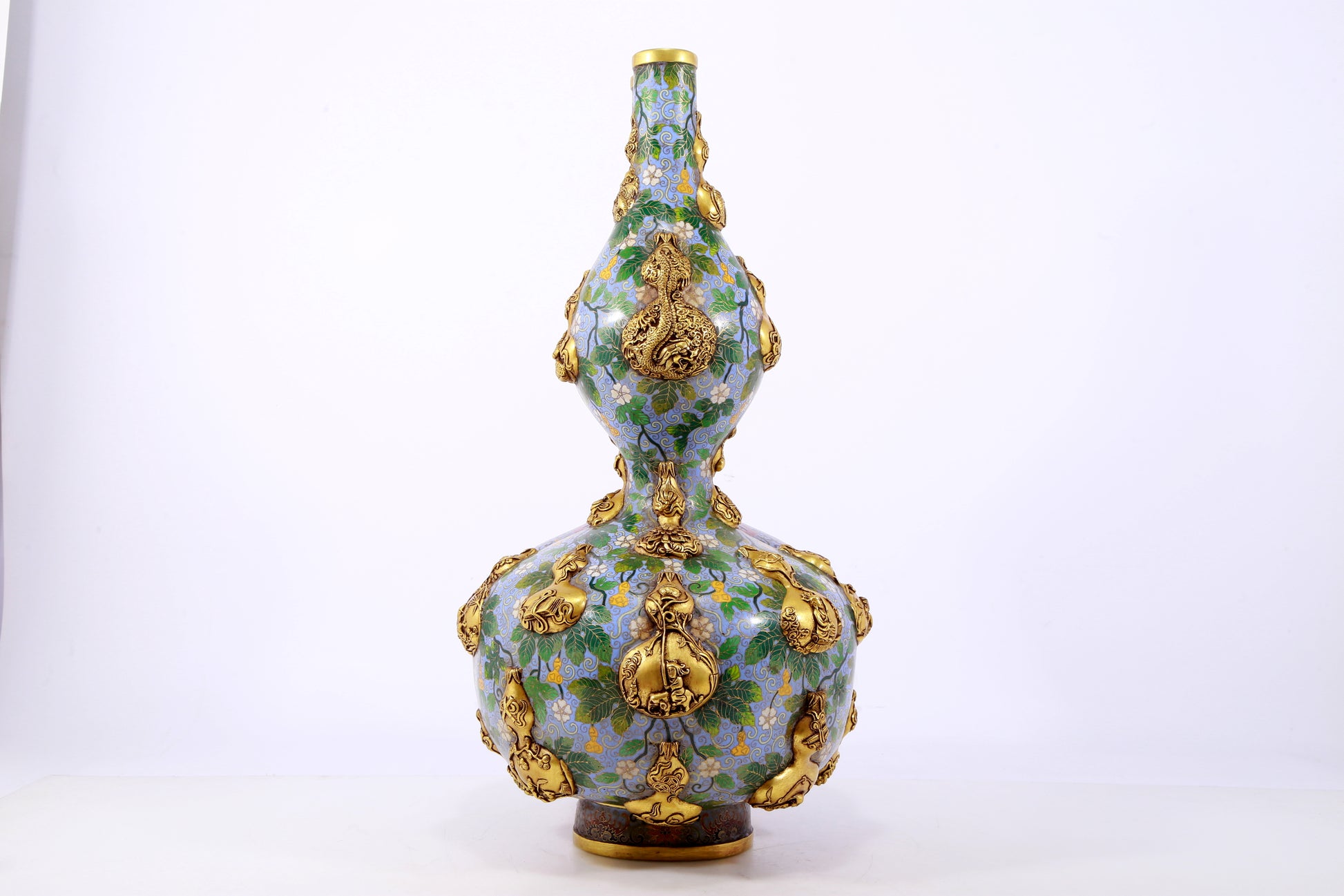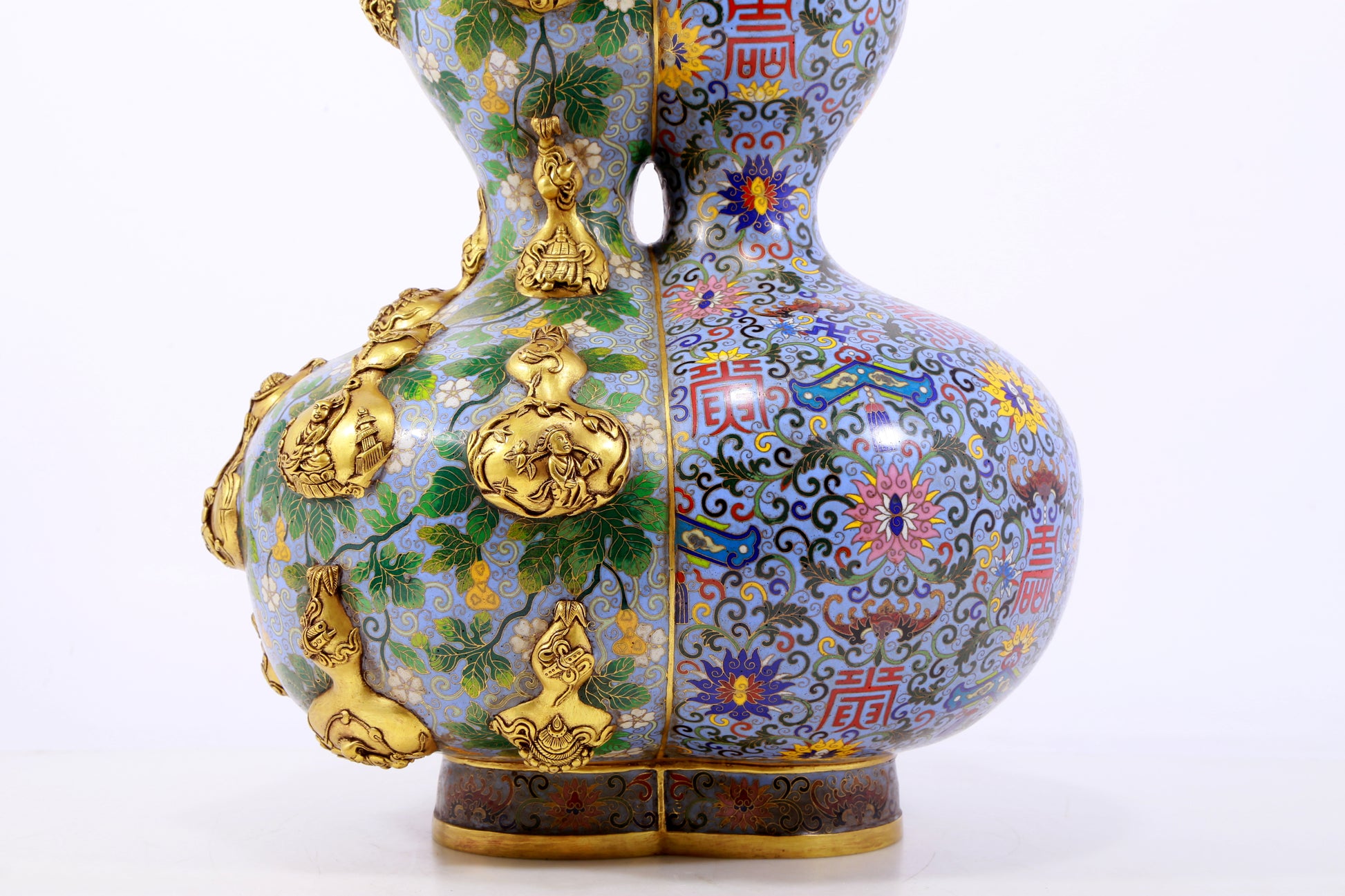An exquisite cloisonné gourd-shaped vase with lotus pattern
