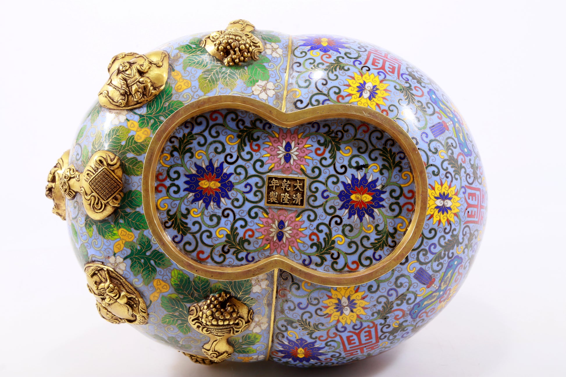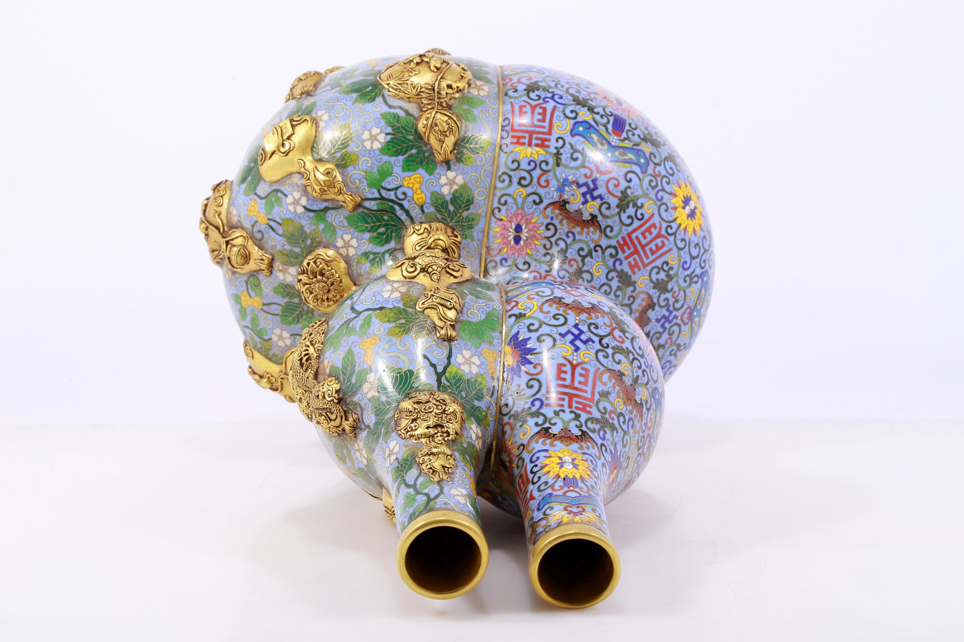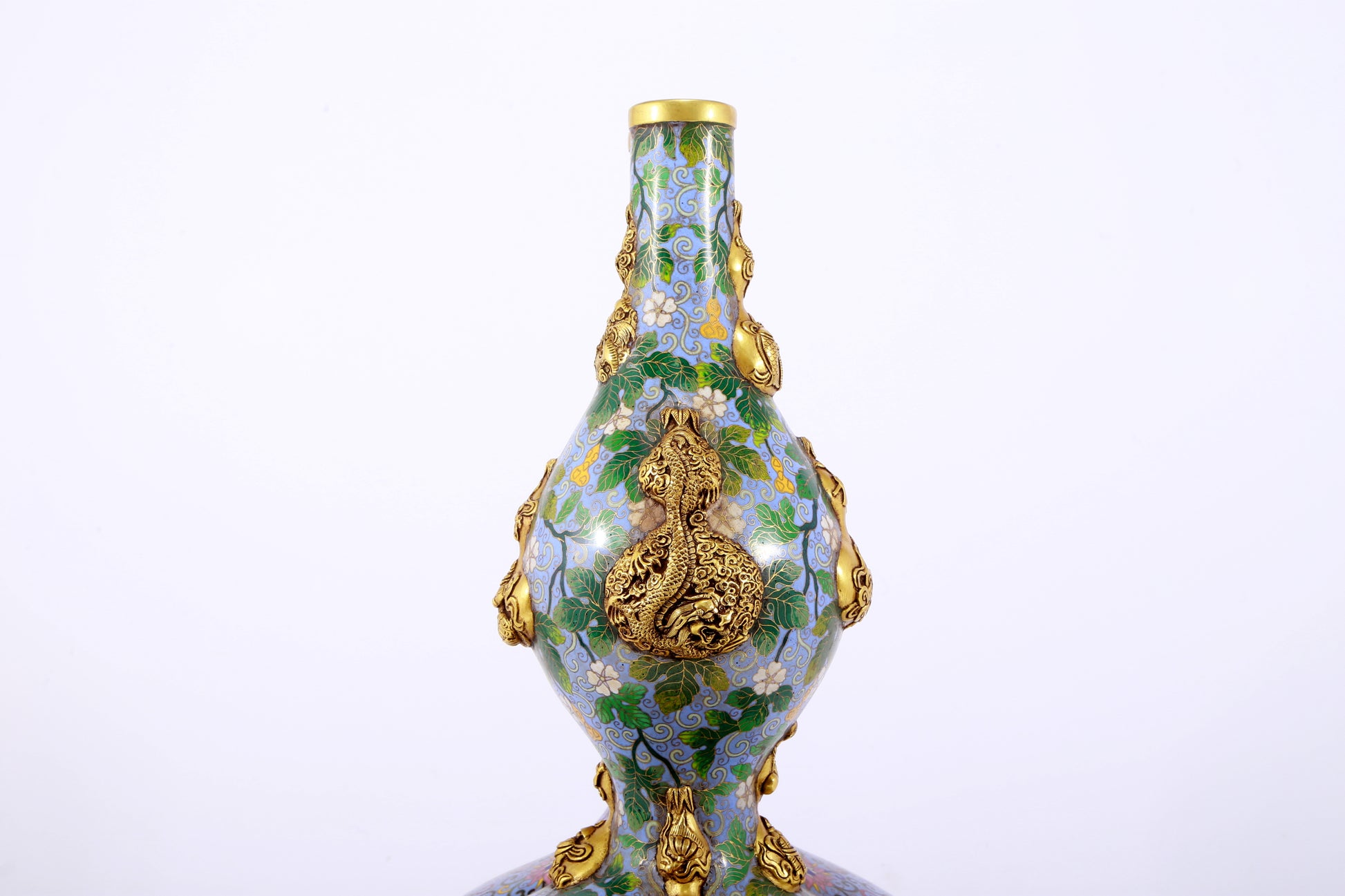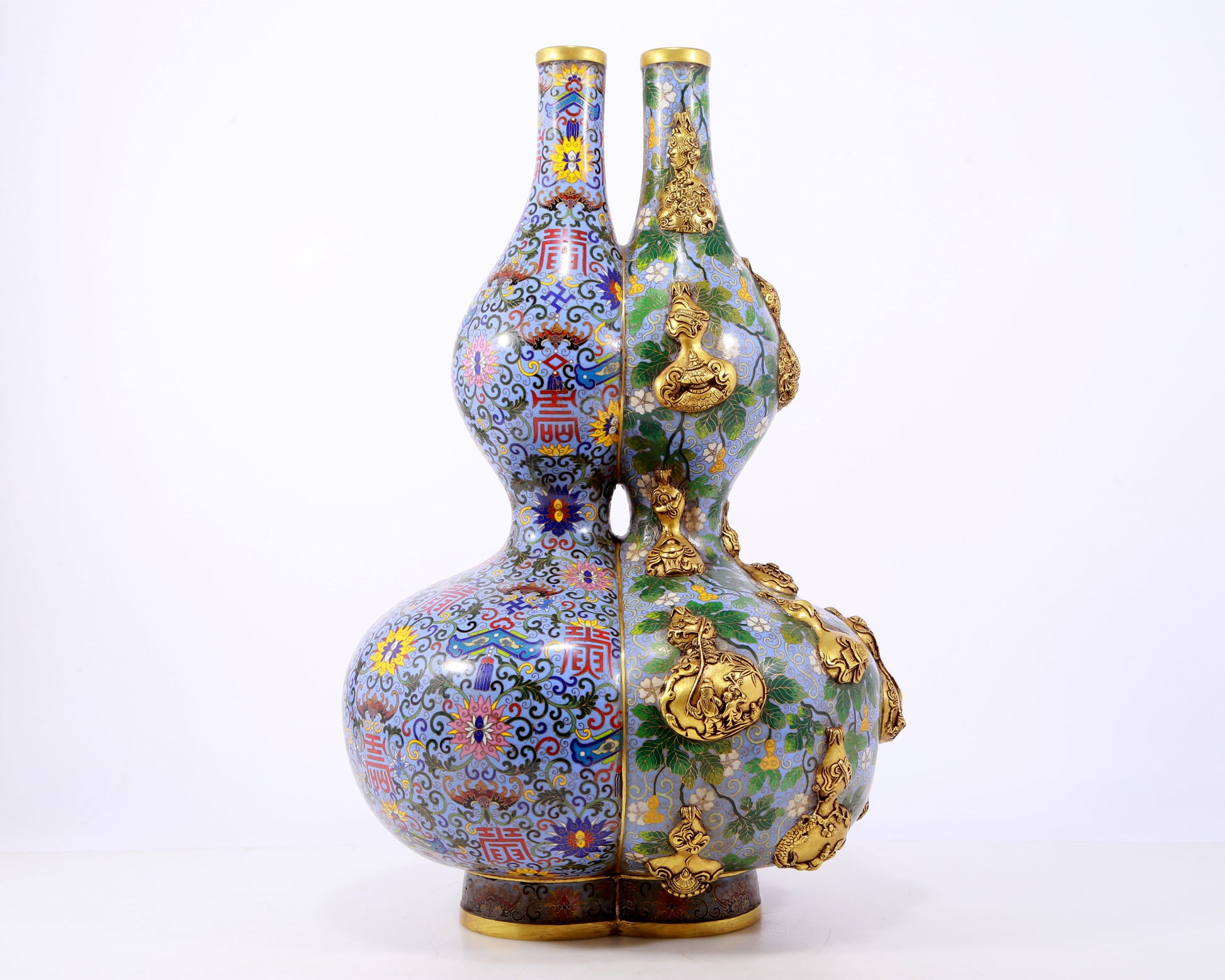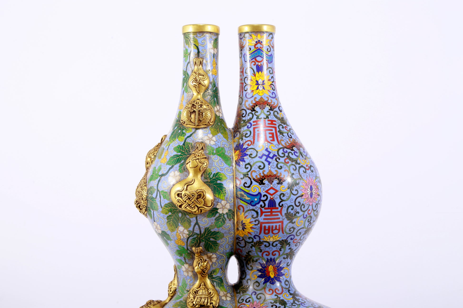 An exquisite cloisonné gourd-shaped vase with lotus pattern