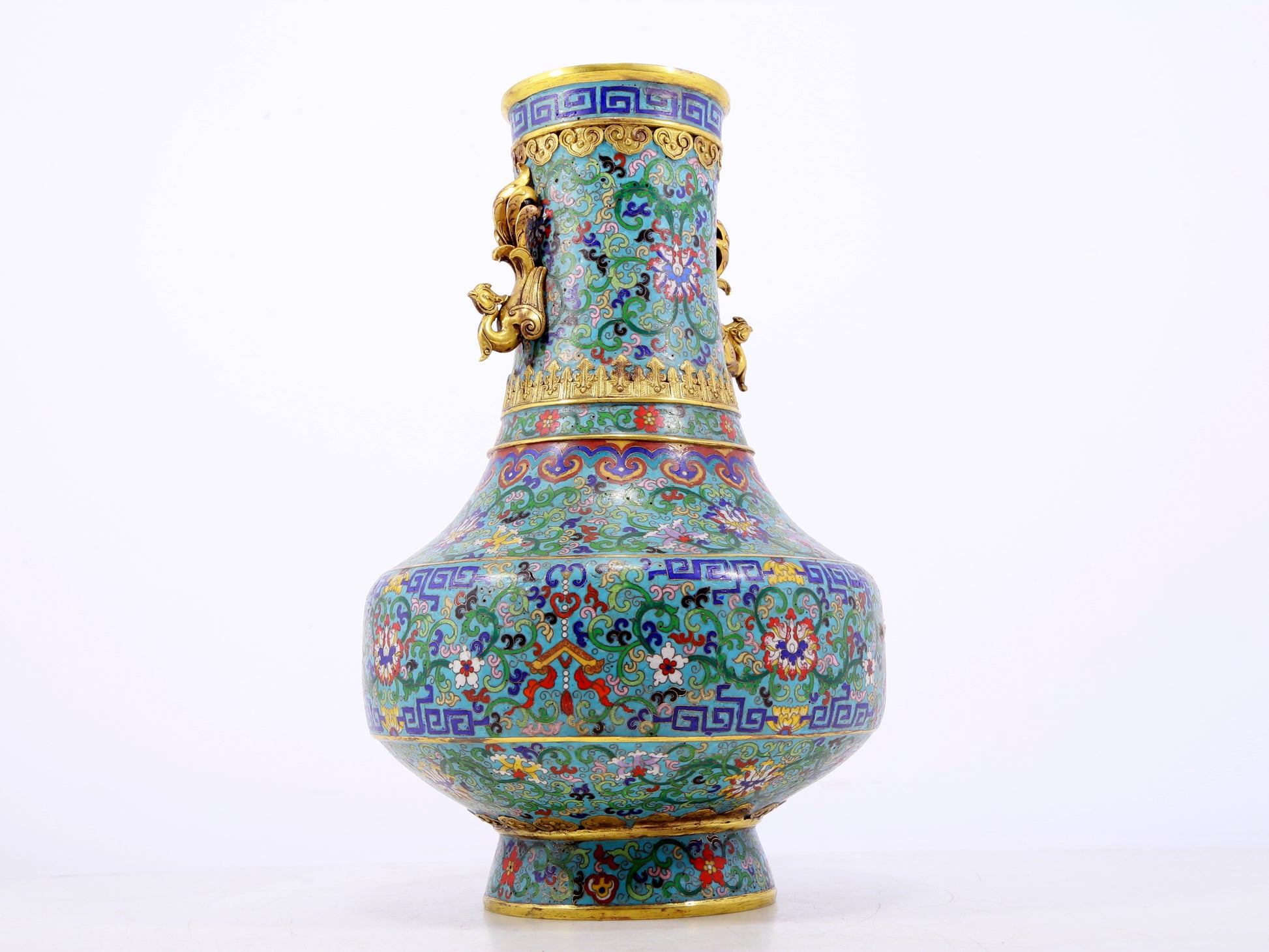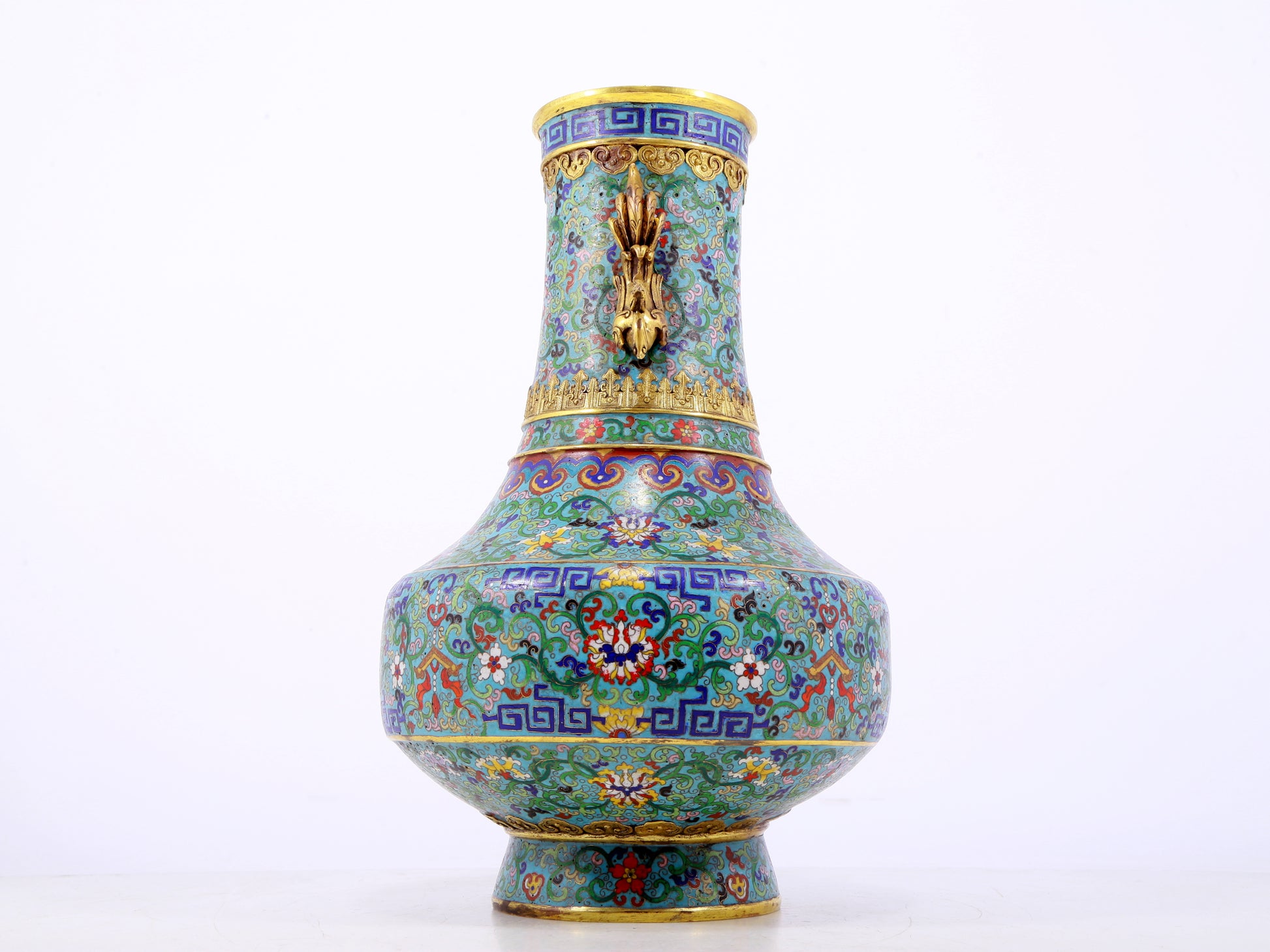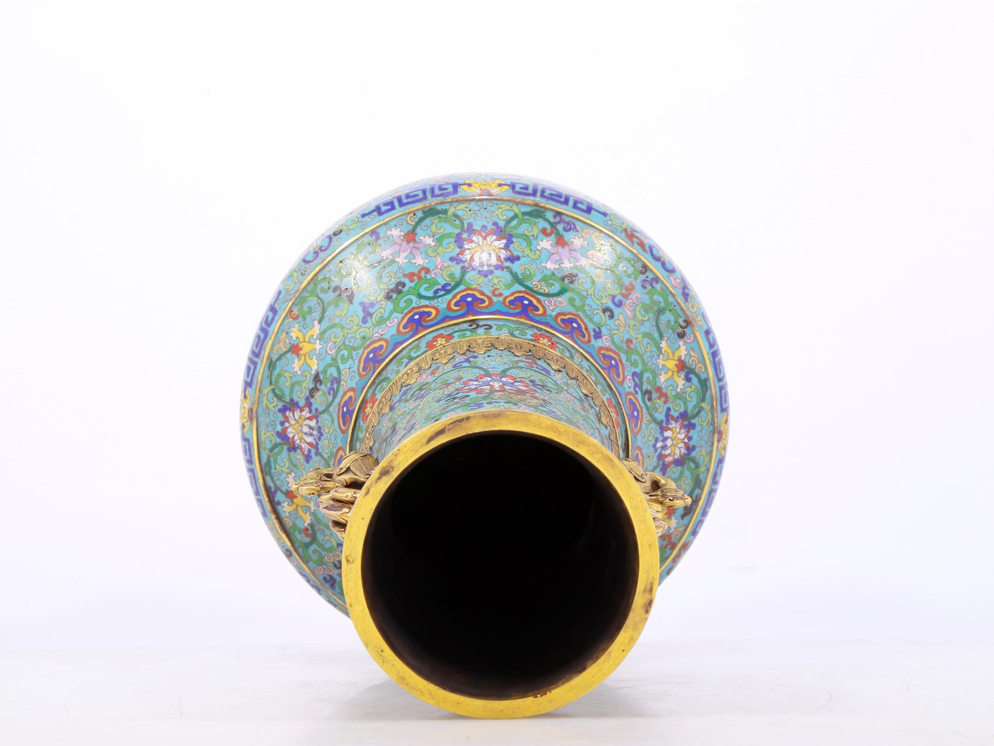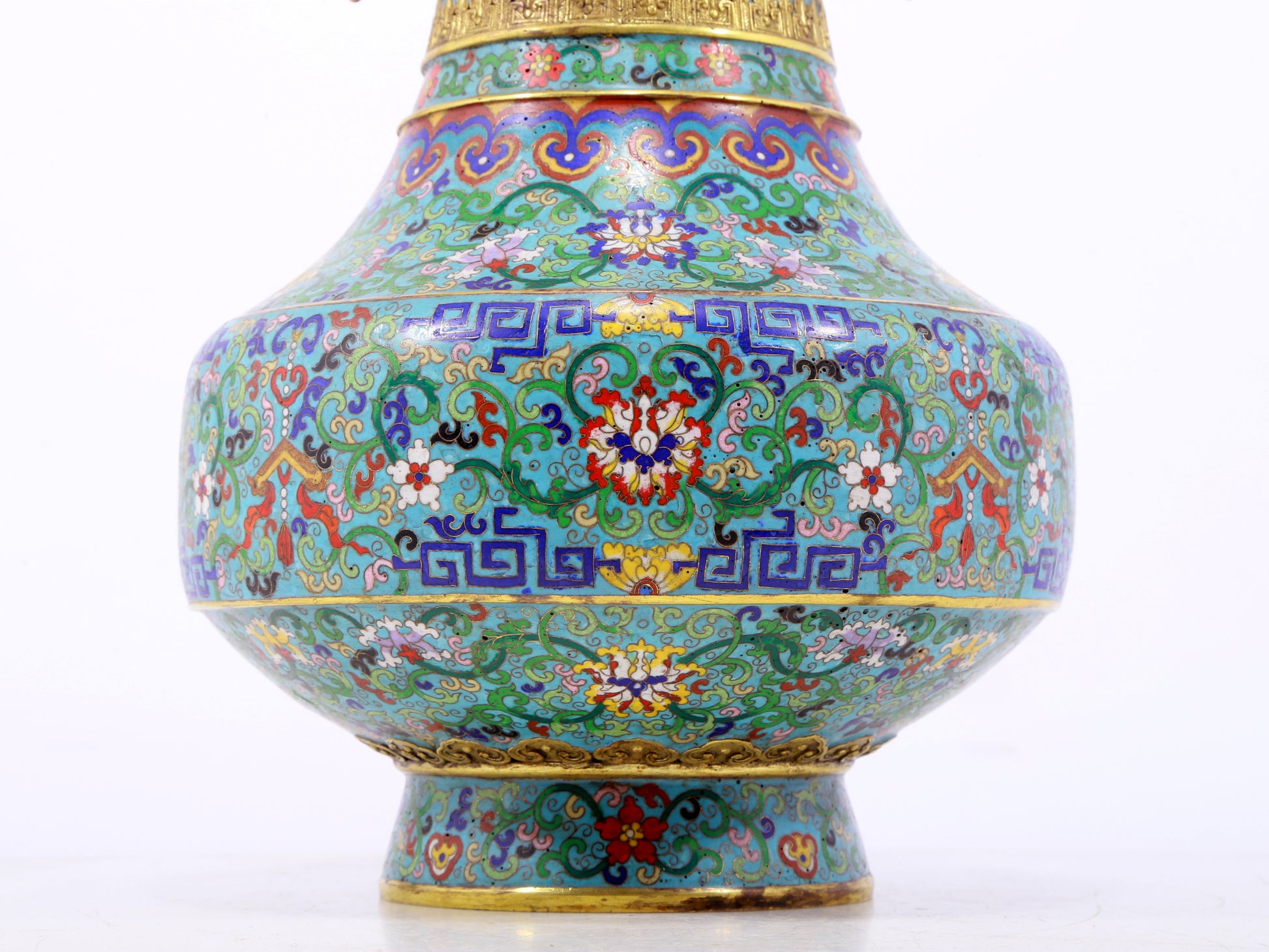 An exquisite cloisonne lotus pattern amphora