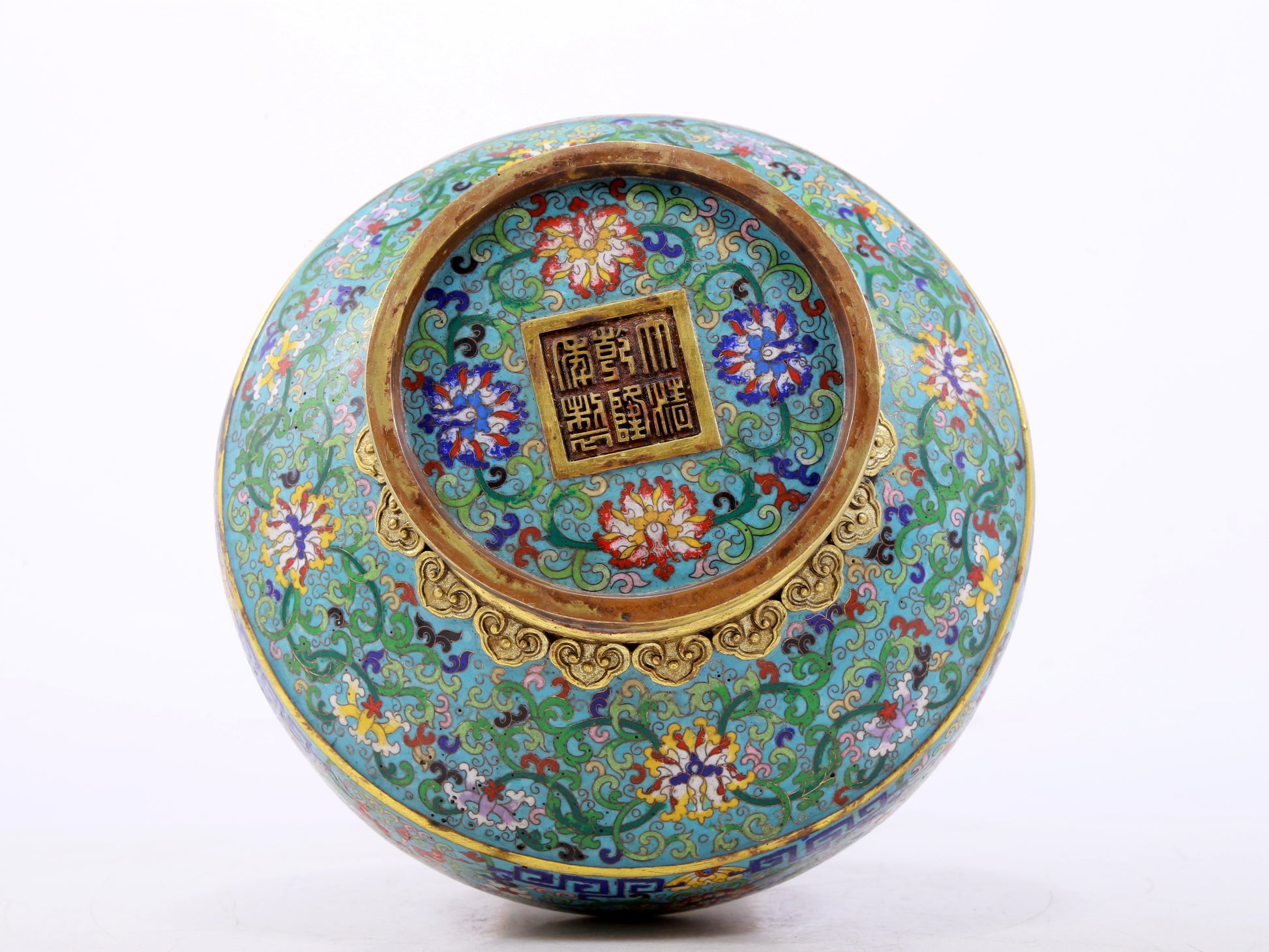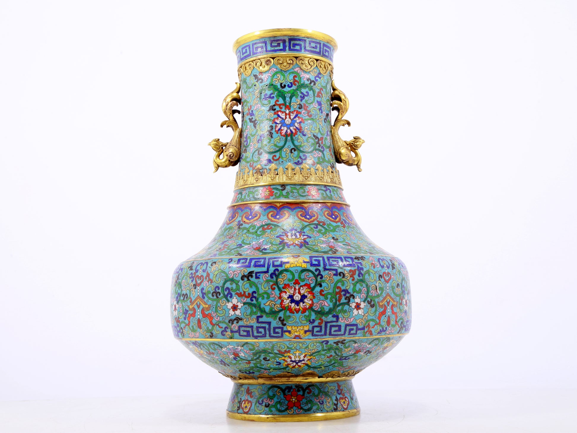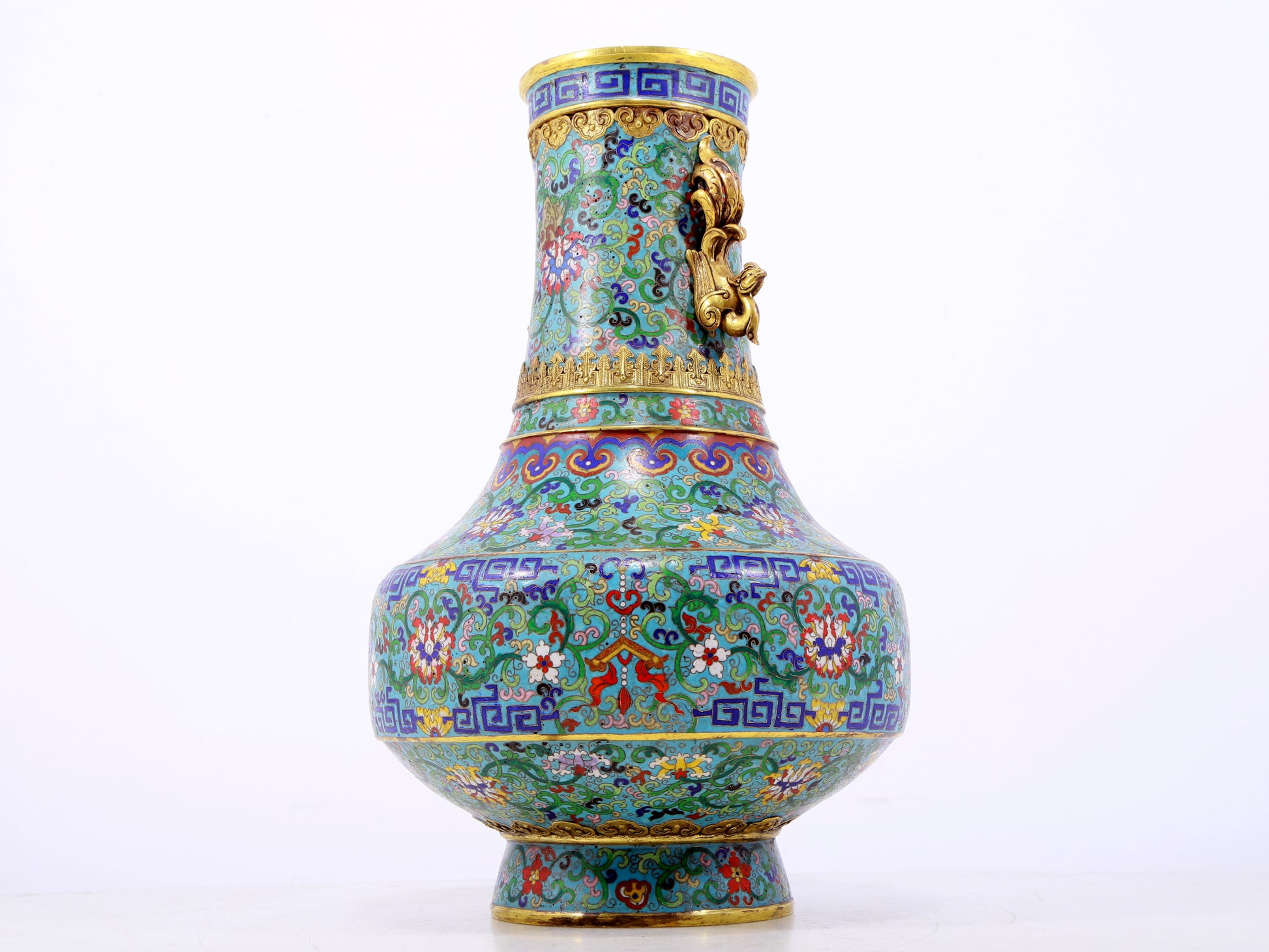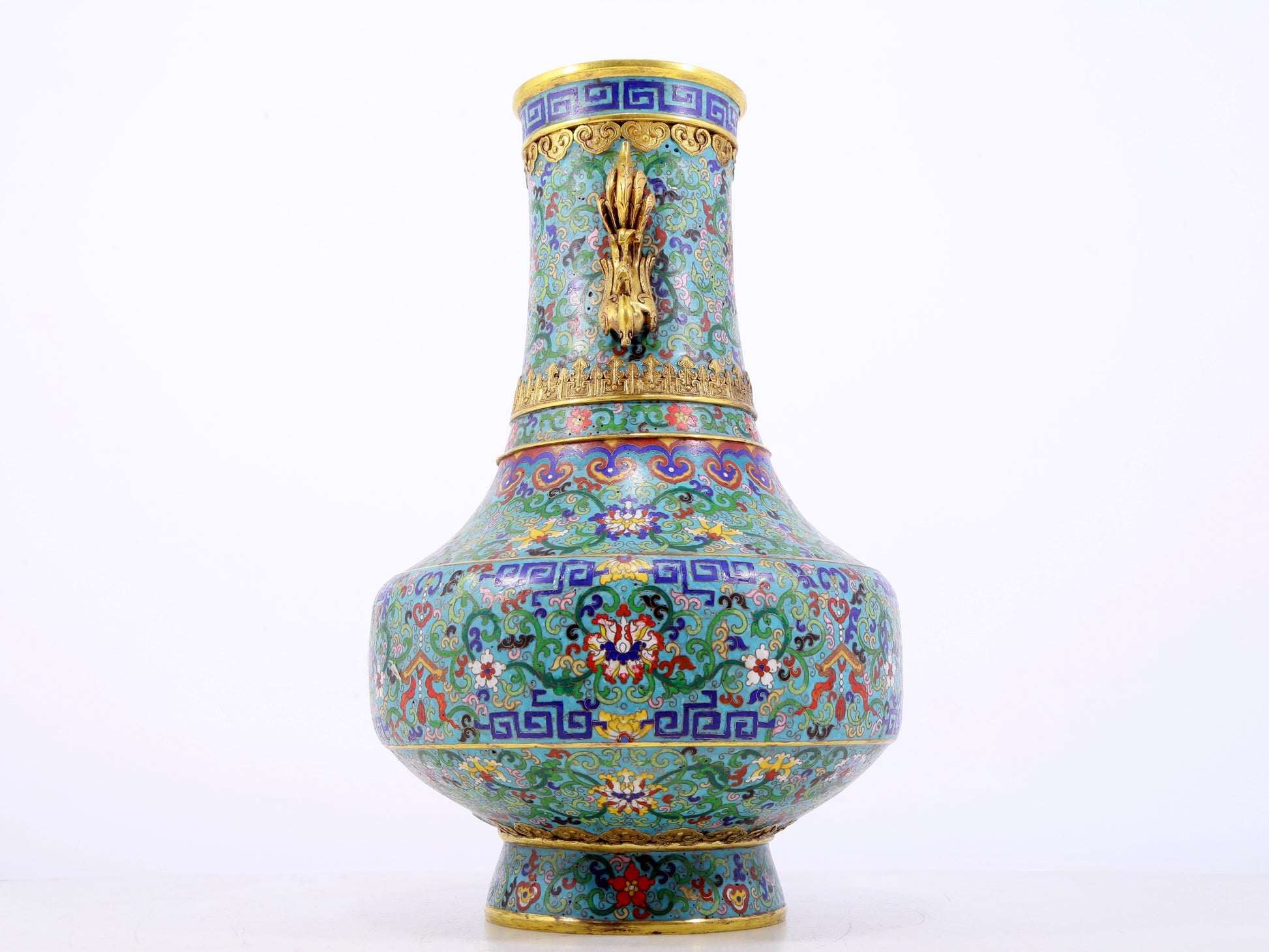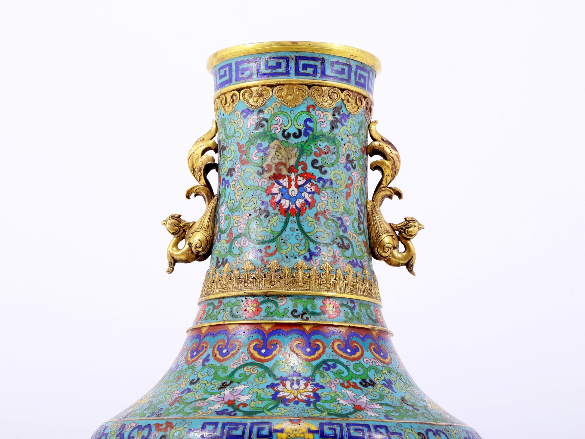 An exquisite cloisonne lotus pattern amphora