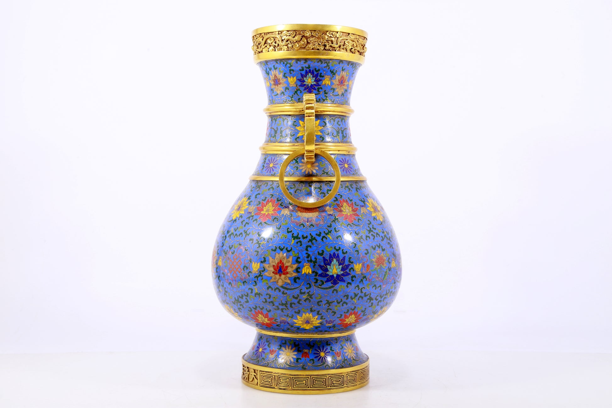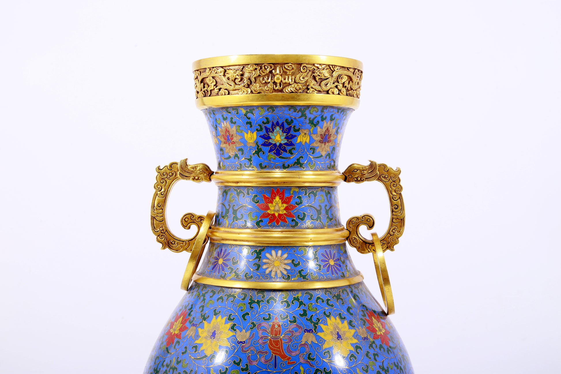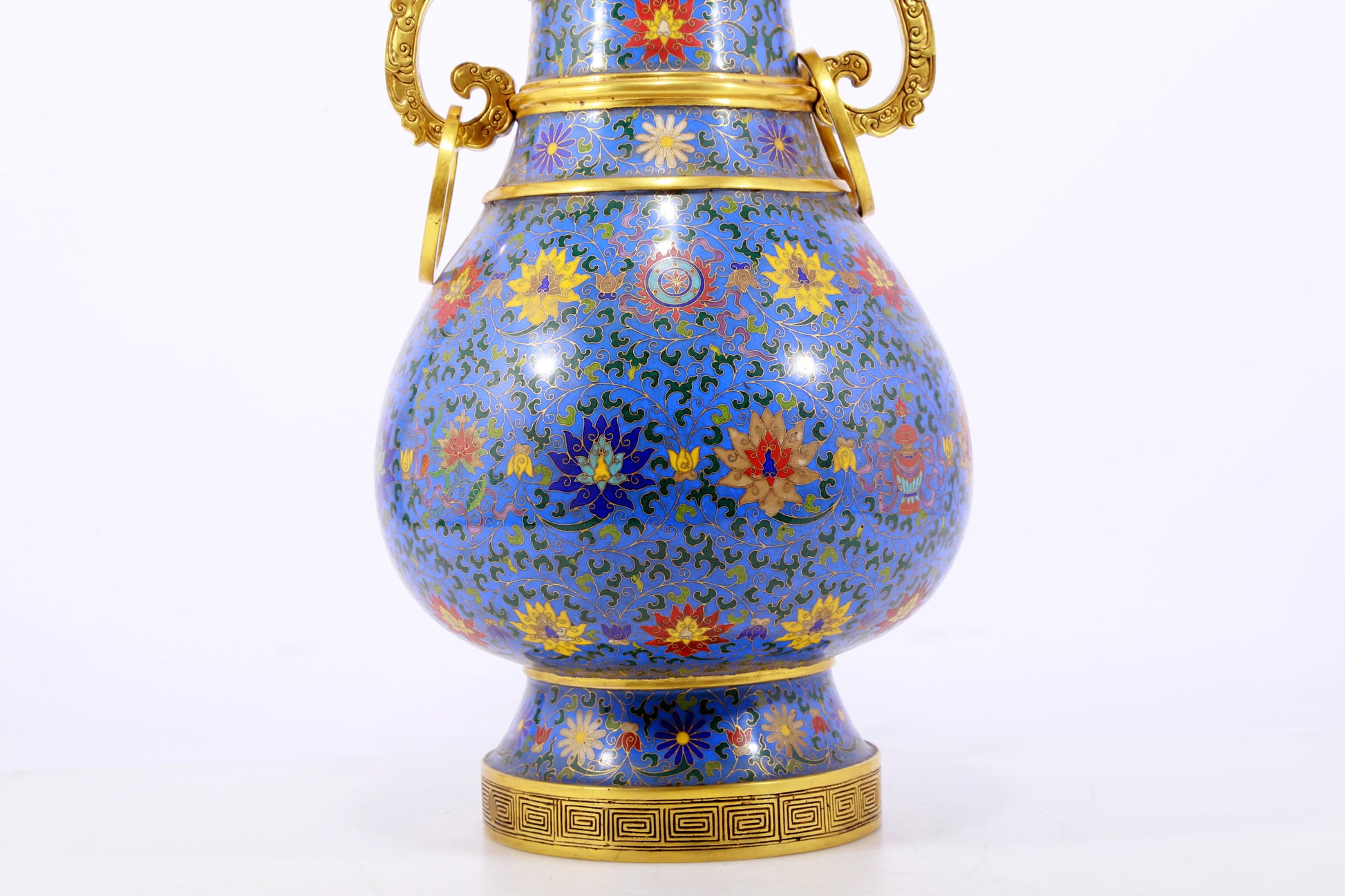 An exquisite cloisonne lotus pattern amphora