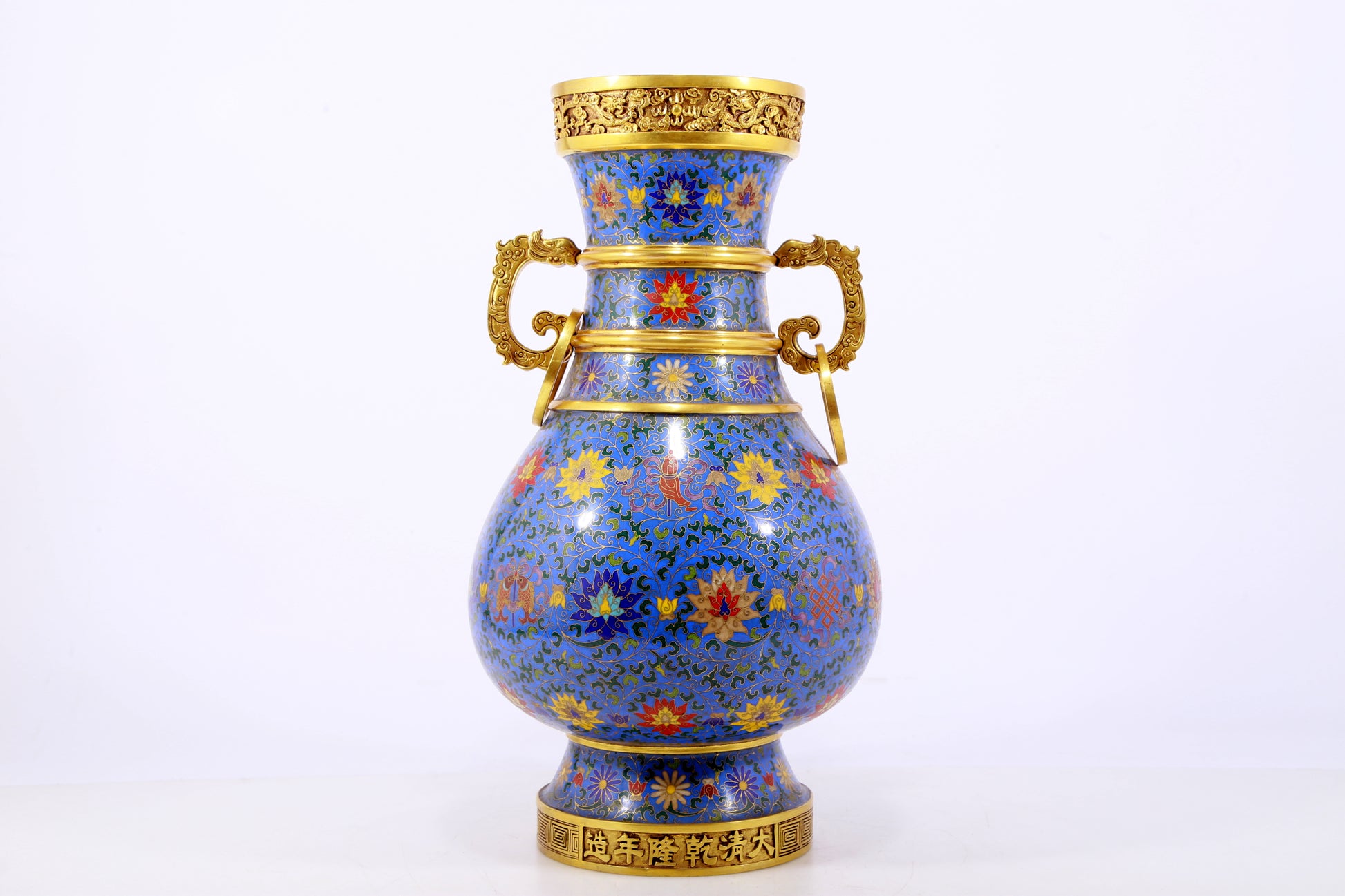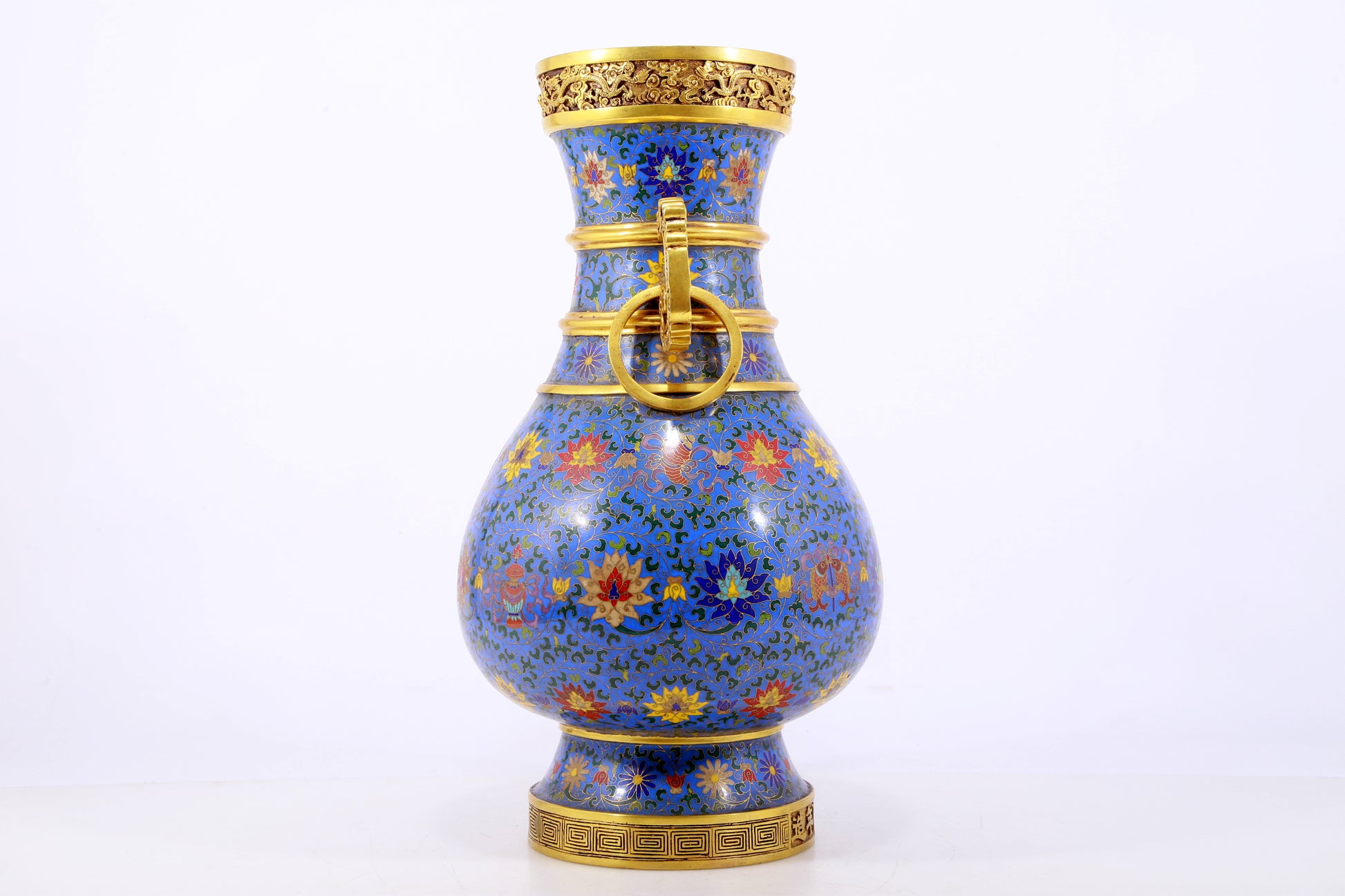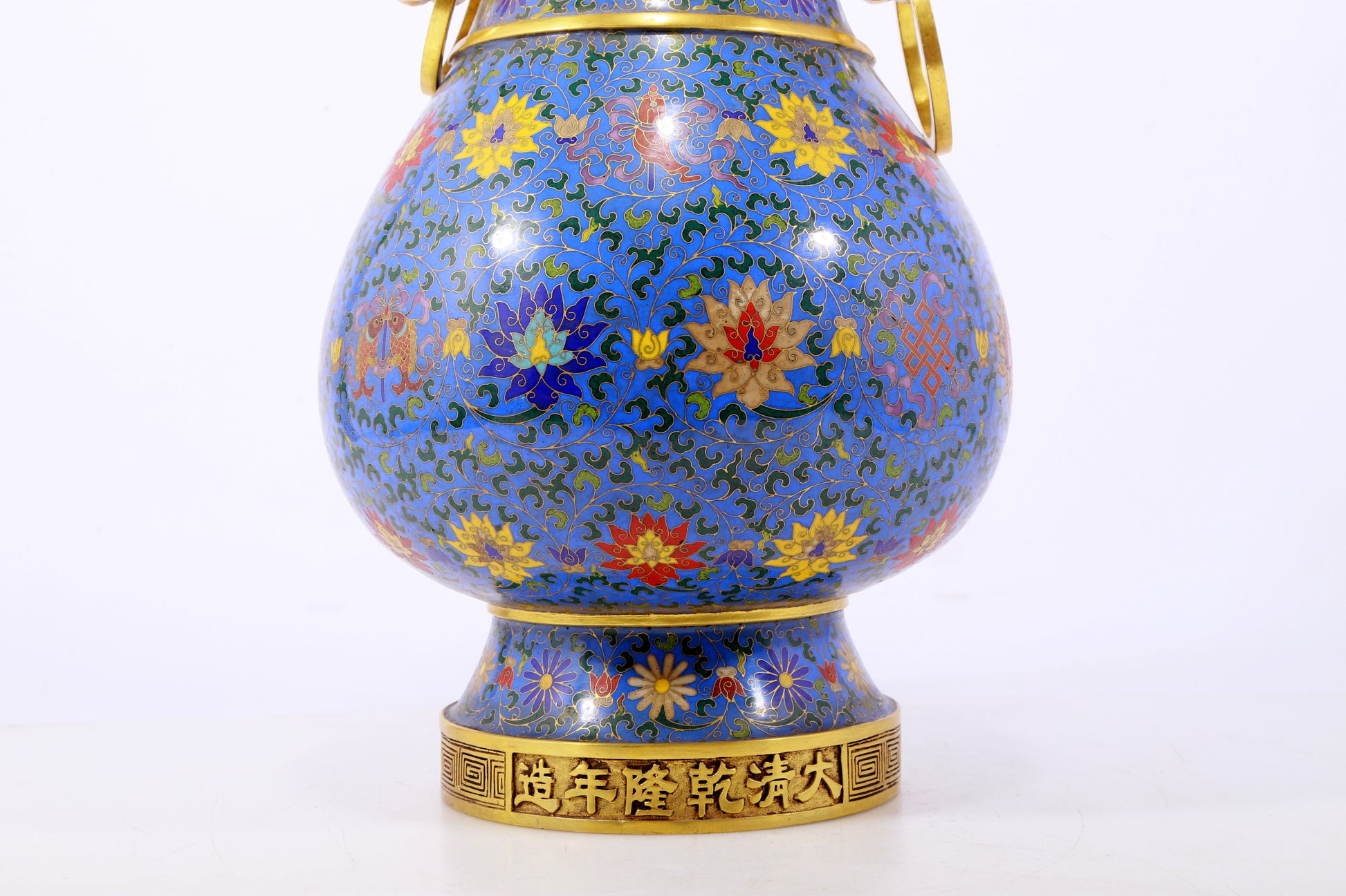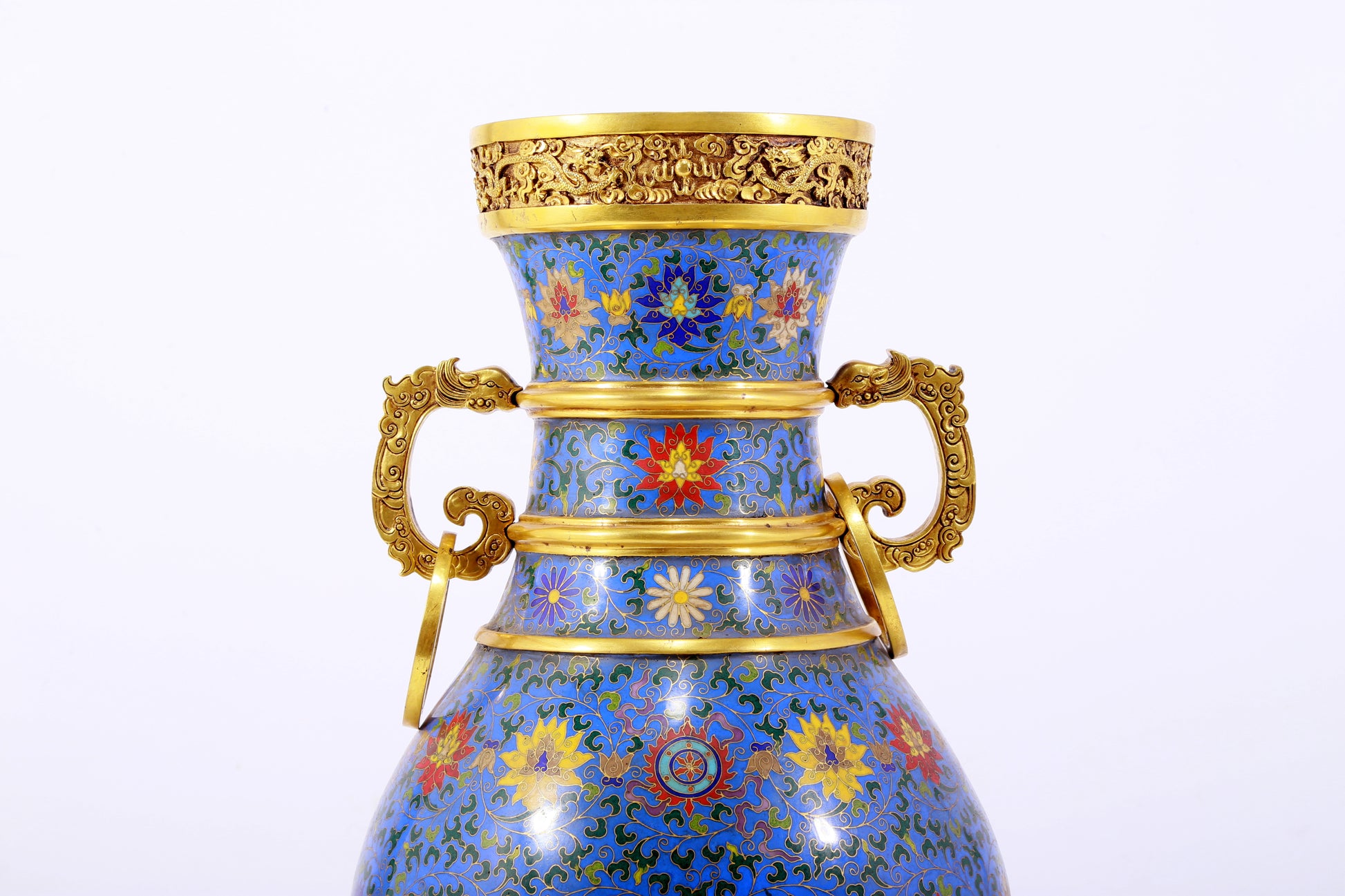 An exquisite cloisonne lotus pattern amphora