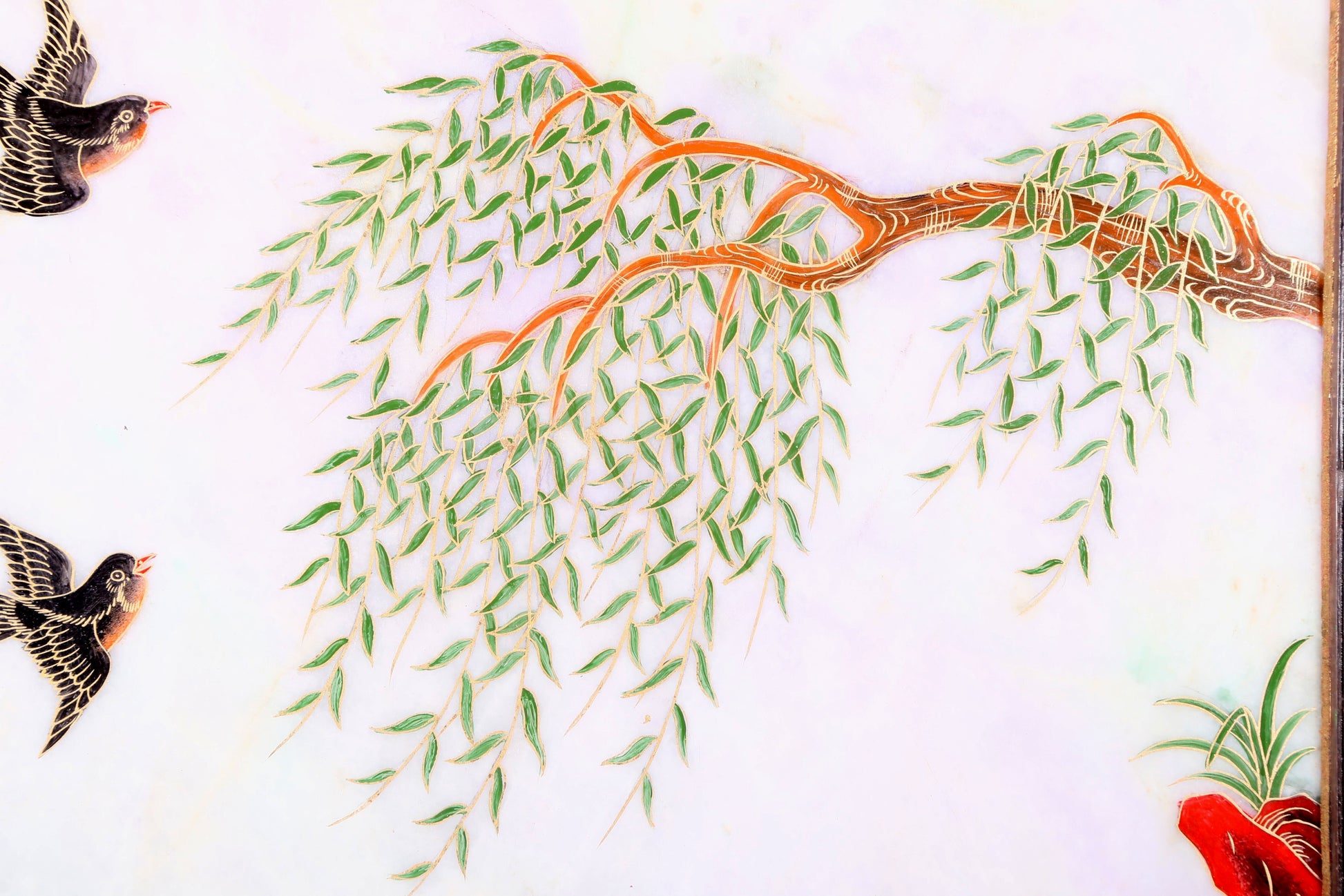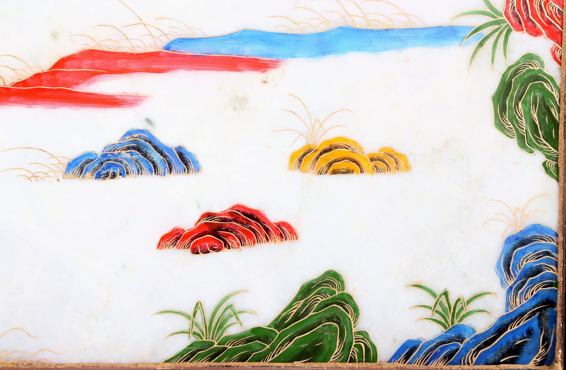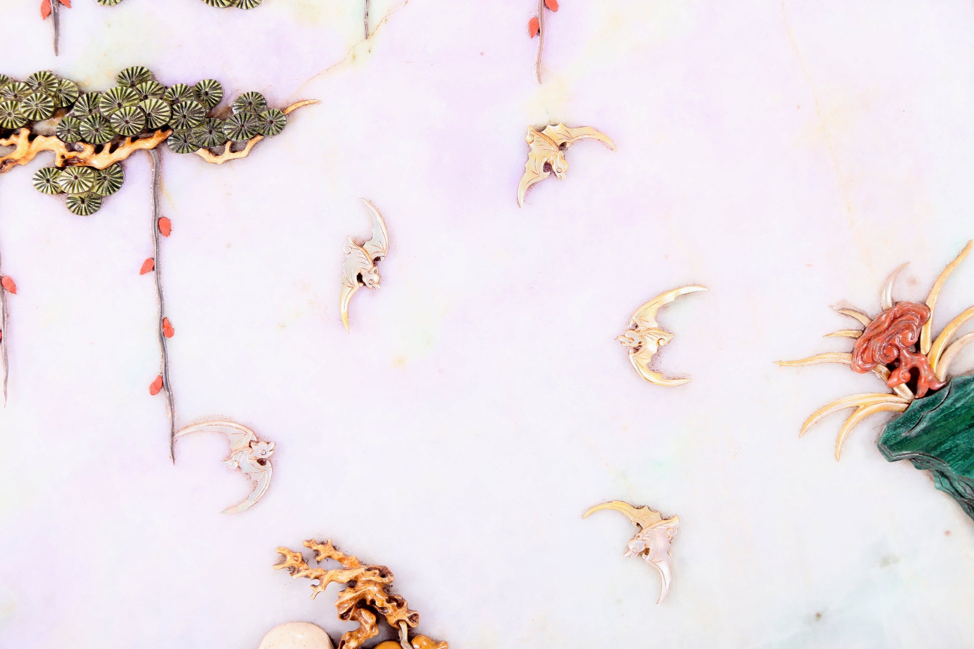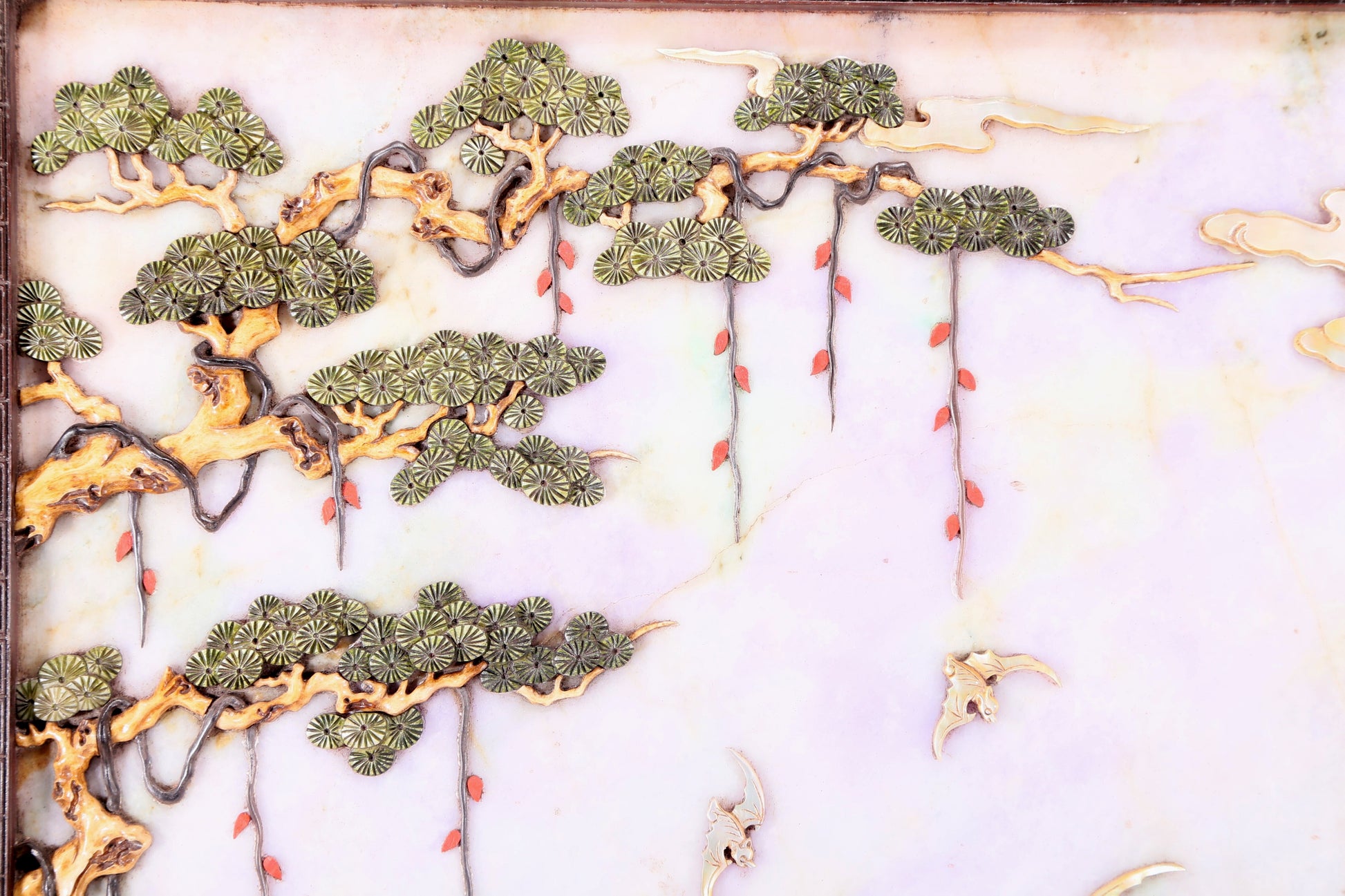 An exquisite zitanwood table screen filled with lacquer, painted with gold and inlaid with gems and figures.  Qing Dynasty , China.. It used zitanwood as the base material and was filled with lacquer using exquisite craftsmanship. In the paint-filling process, gemstones are cleverly embedded, just like stars dotting the night sky, exuding a unique brilliance. The overall pattern carving is lifelike, demonstrating the craftsman's superb carving skills. Size:50cmx27cmx72cm. Weight:13255g       紫檀木填漆描金嵌百宝贺寿图台屏, 中国清代,采用了紫檀木作为基材,经过精湛的工艺填漆而成。填漆工艺中,巧妙地嵌入了宝石,犹如星辰点缀夜空,散发出独特的光彩。整体图案雕刻栩栩如生,展示了匠师高超的雕刻技艺。
