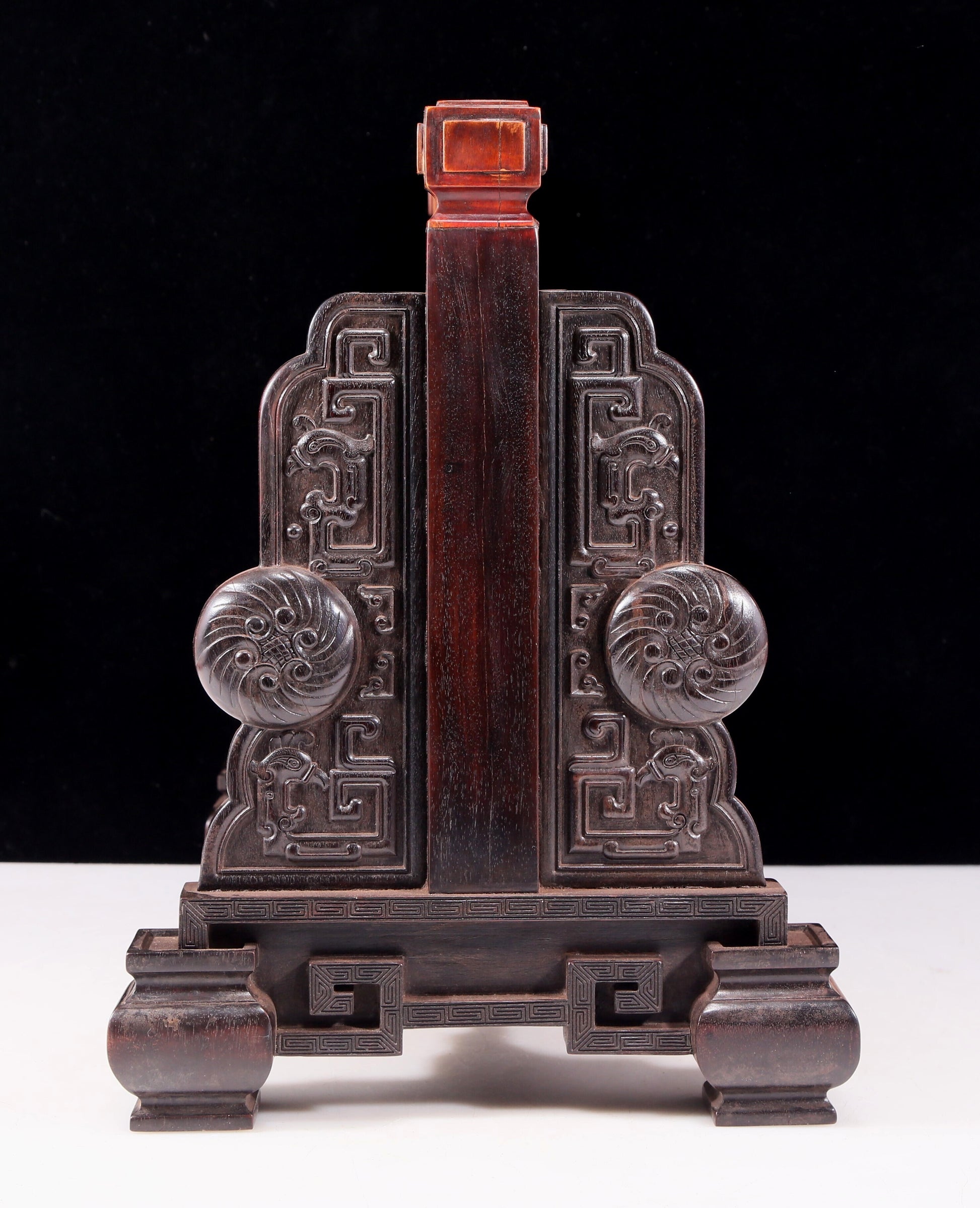 An exquisite zitanwood lacquered, gold-embedded, character-patterned table screen