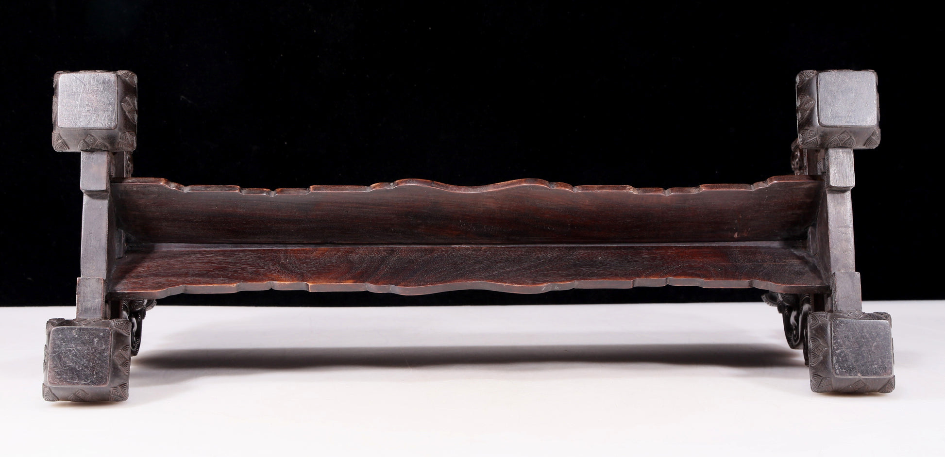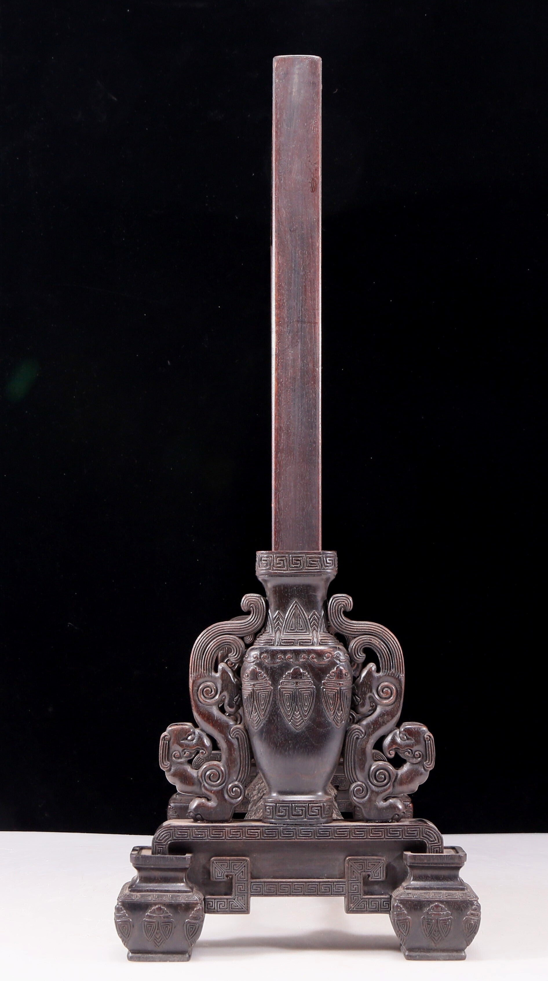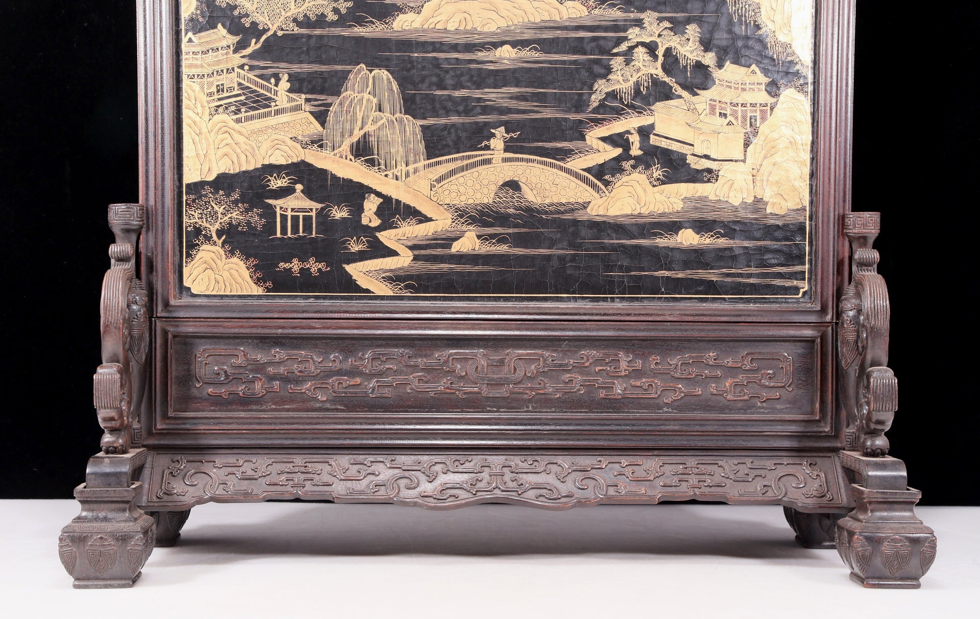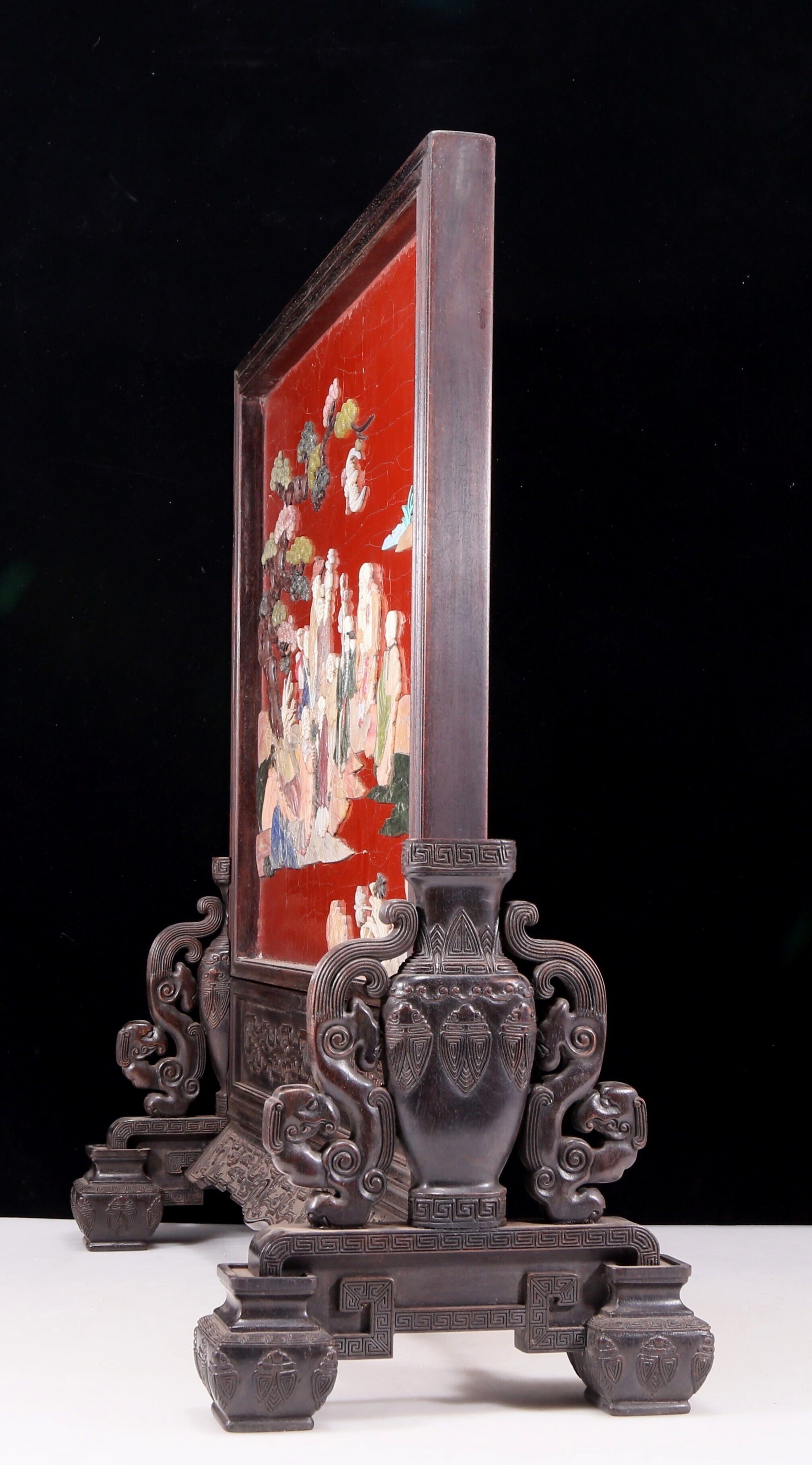 An exquisite zitanwood lacquered, gold-embedded, character-patterned table screen