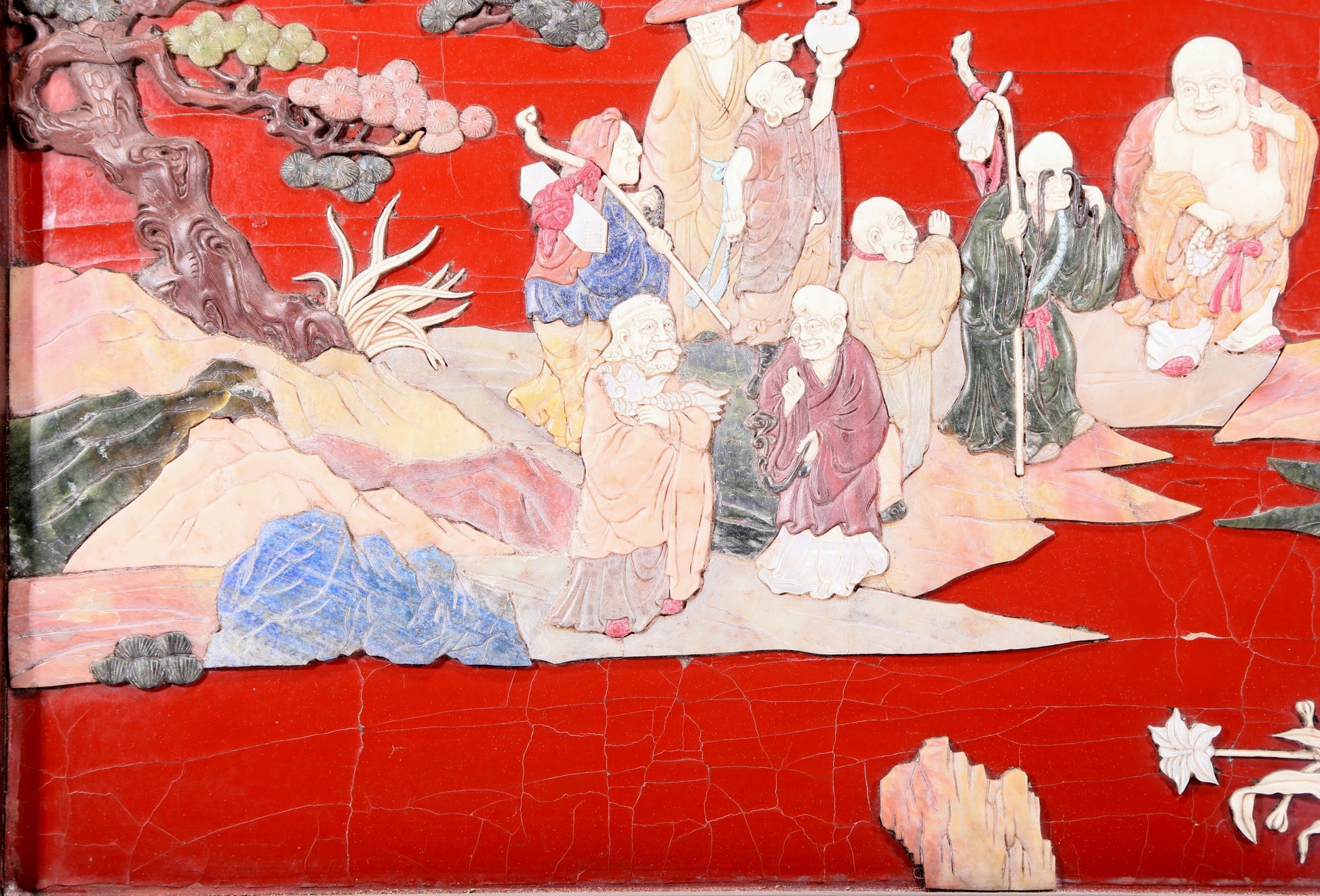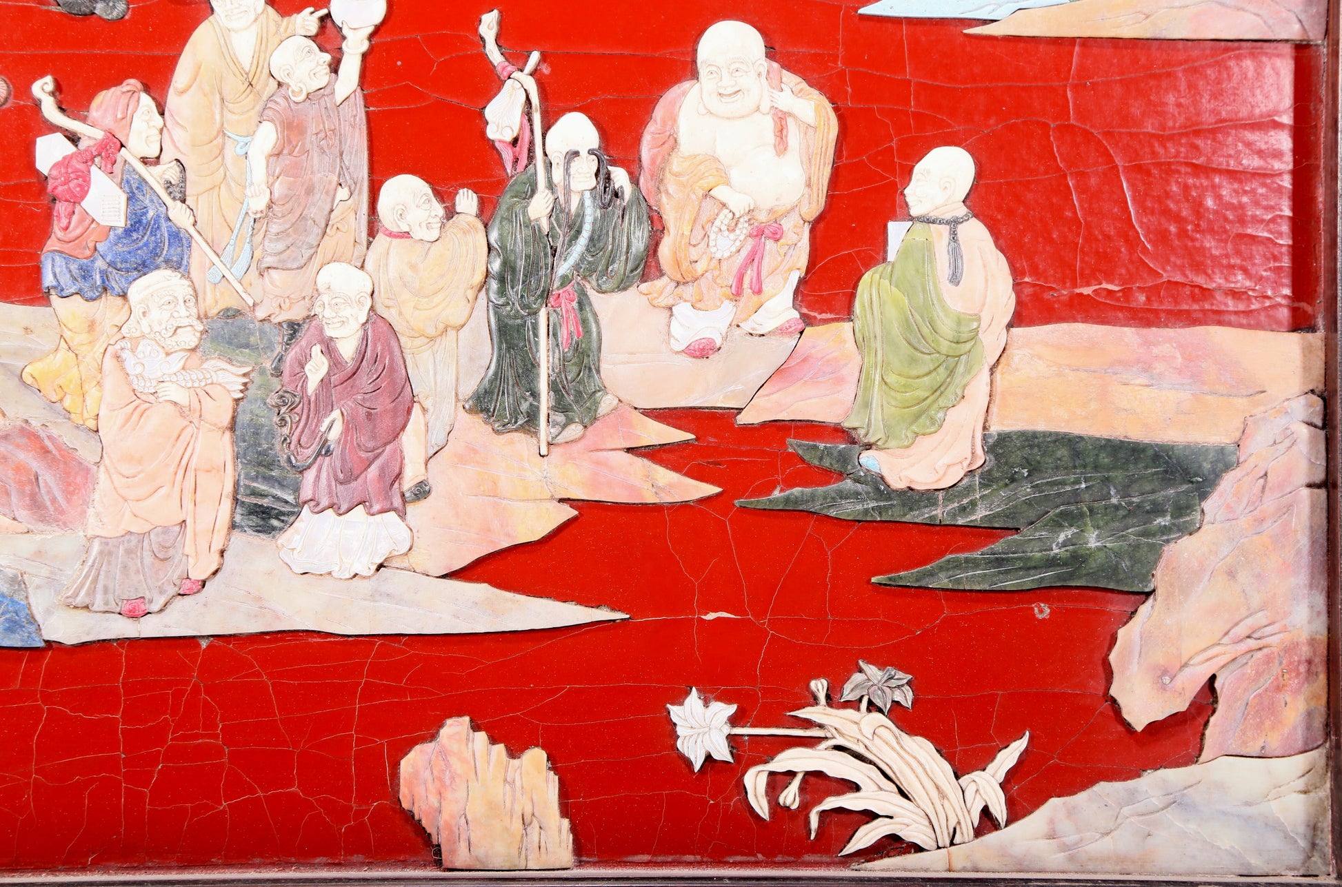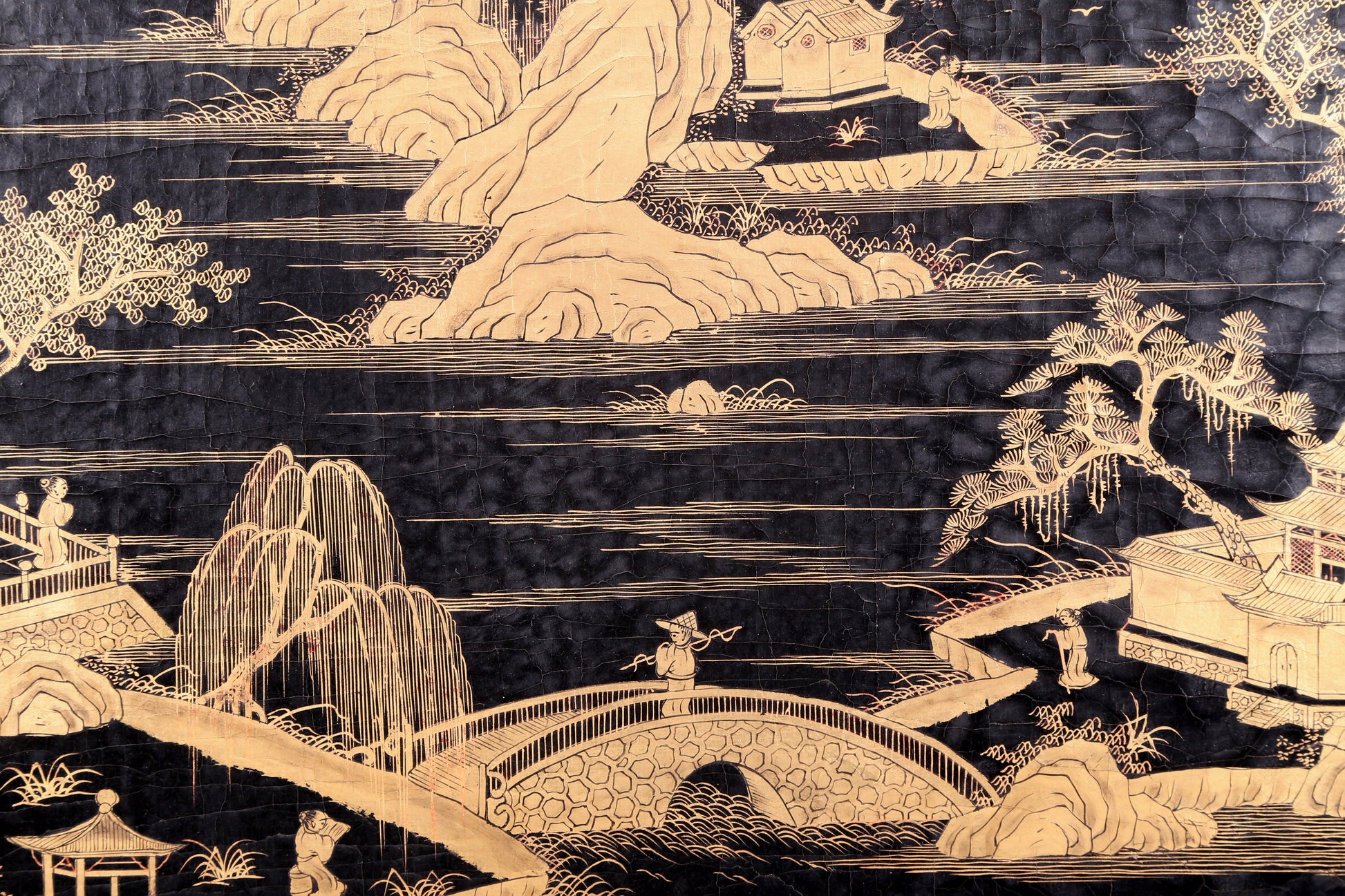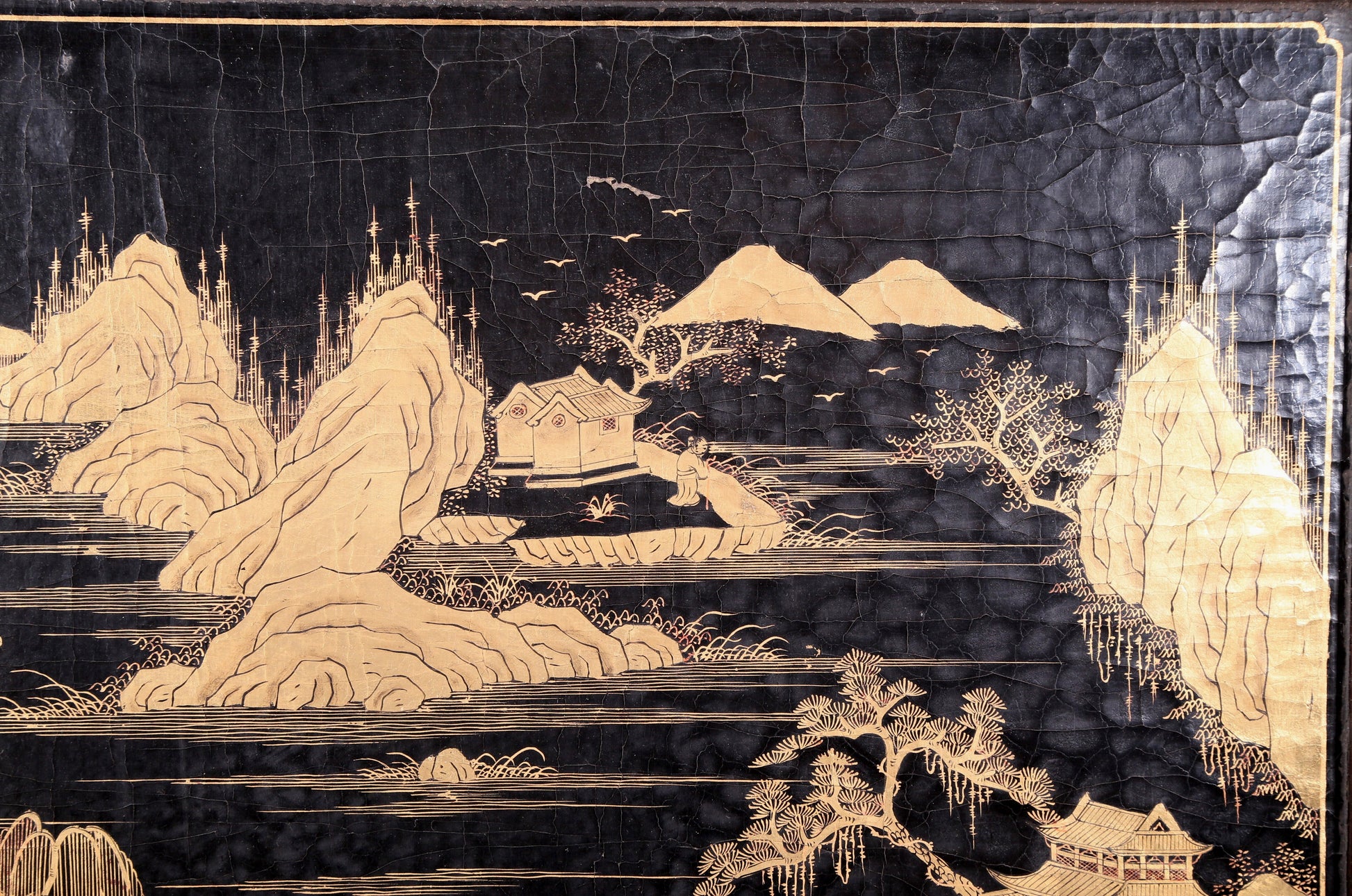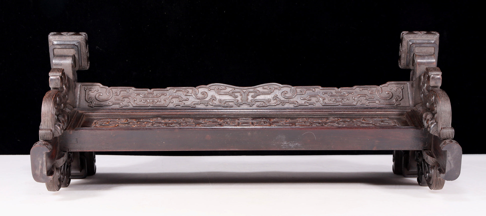 An exquisite zitanwood lacquered, gold-embedded, character-patterned table screen