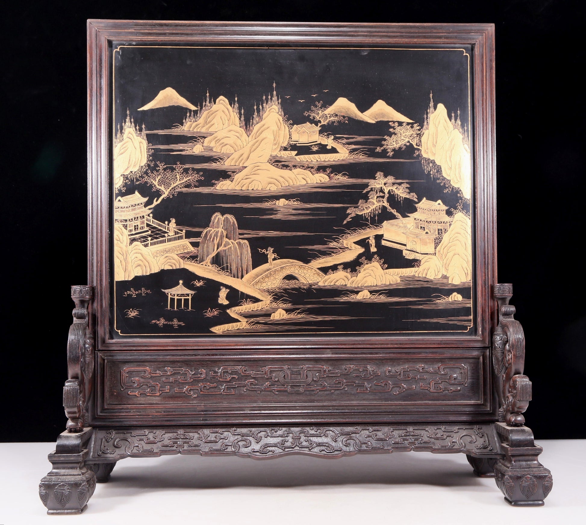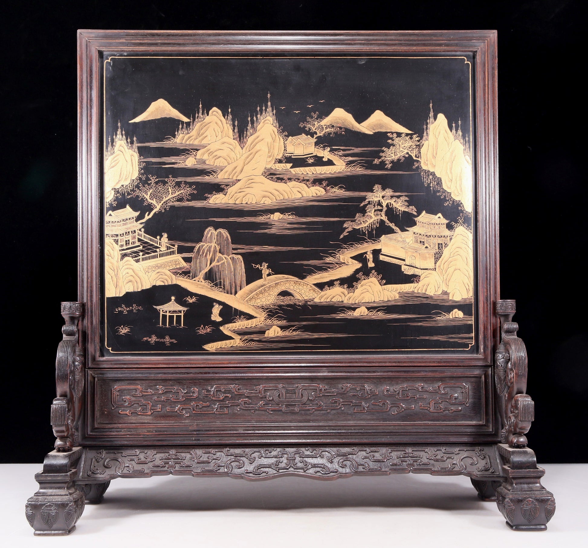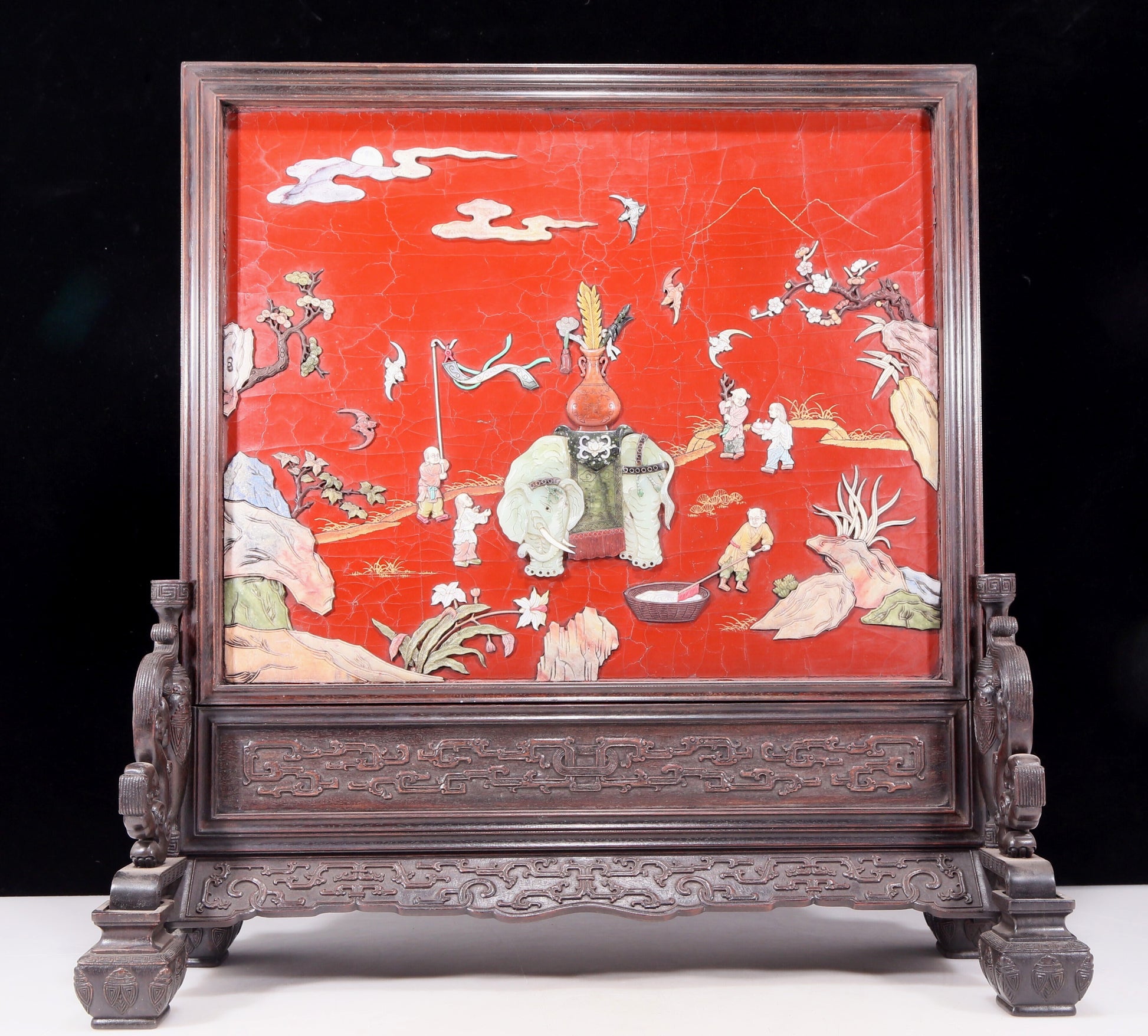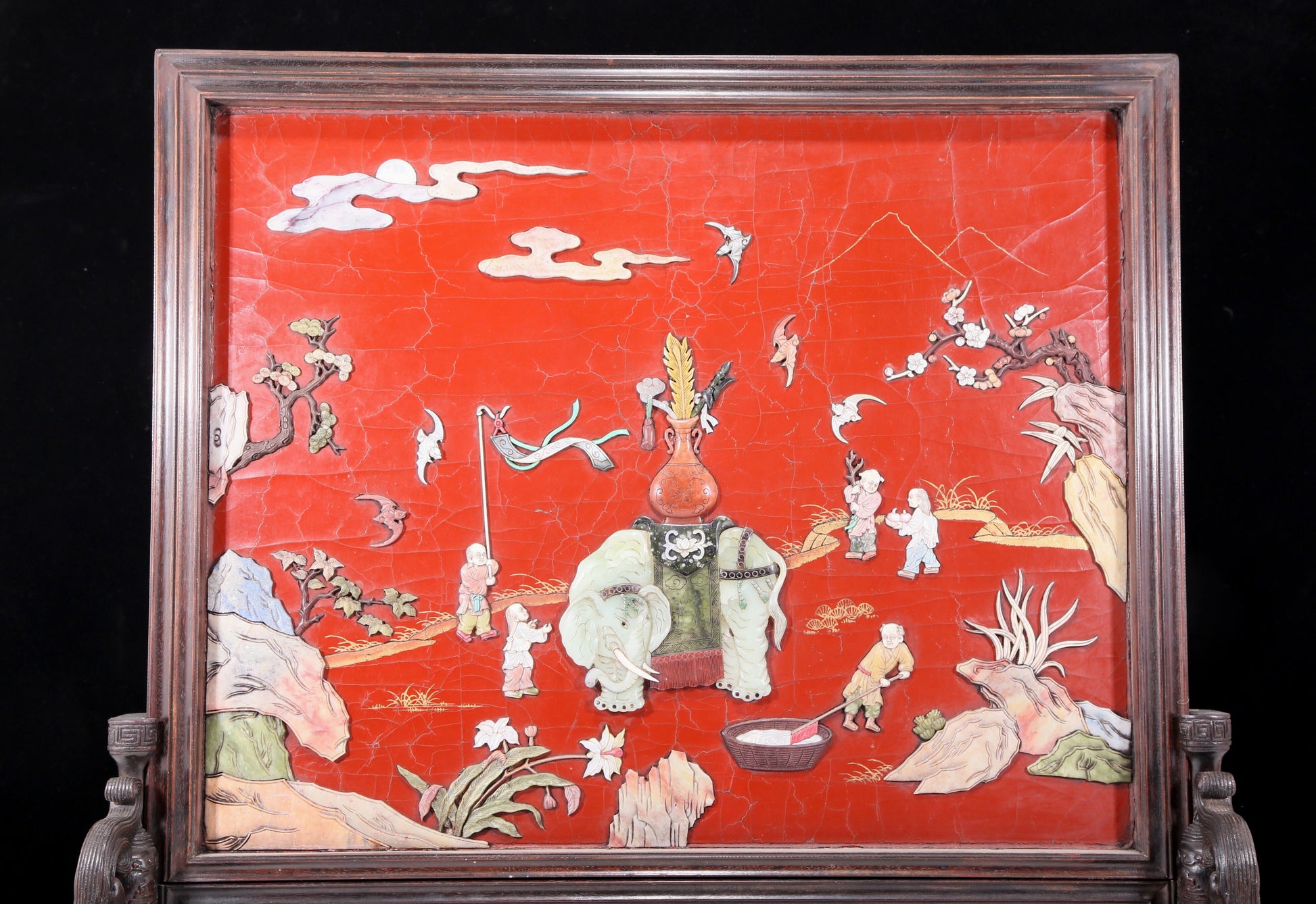 An exquisite zitanwood lacquered gold-embedded elephant pattern table screen