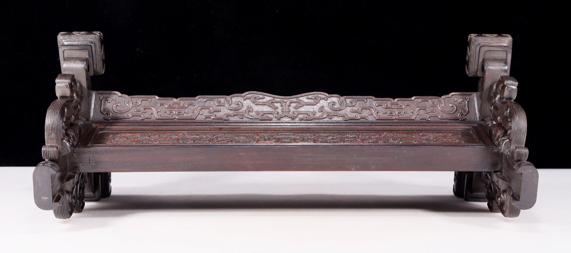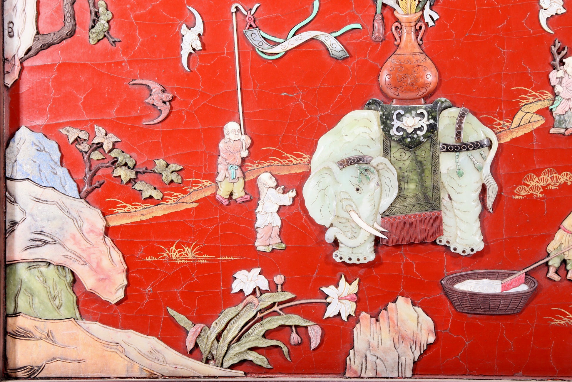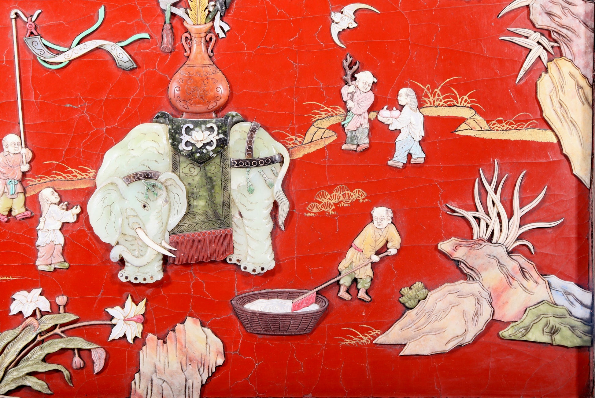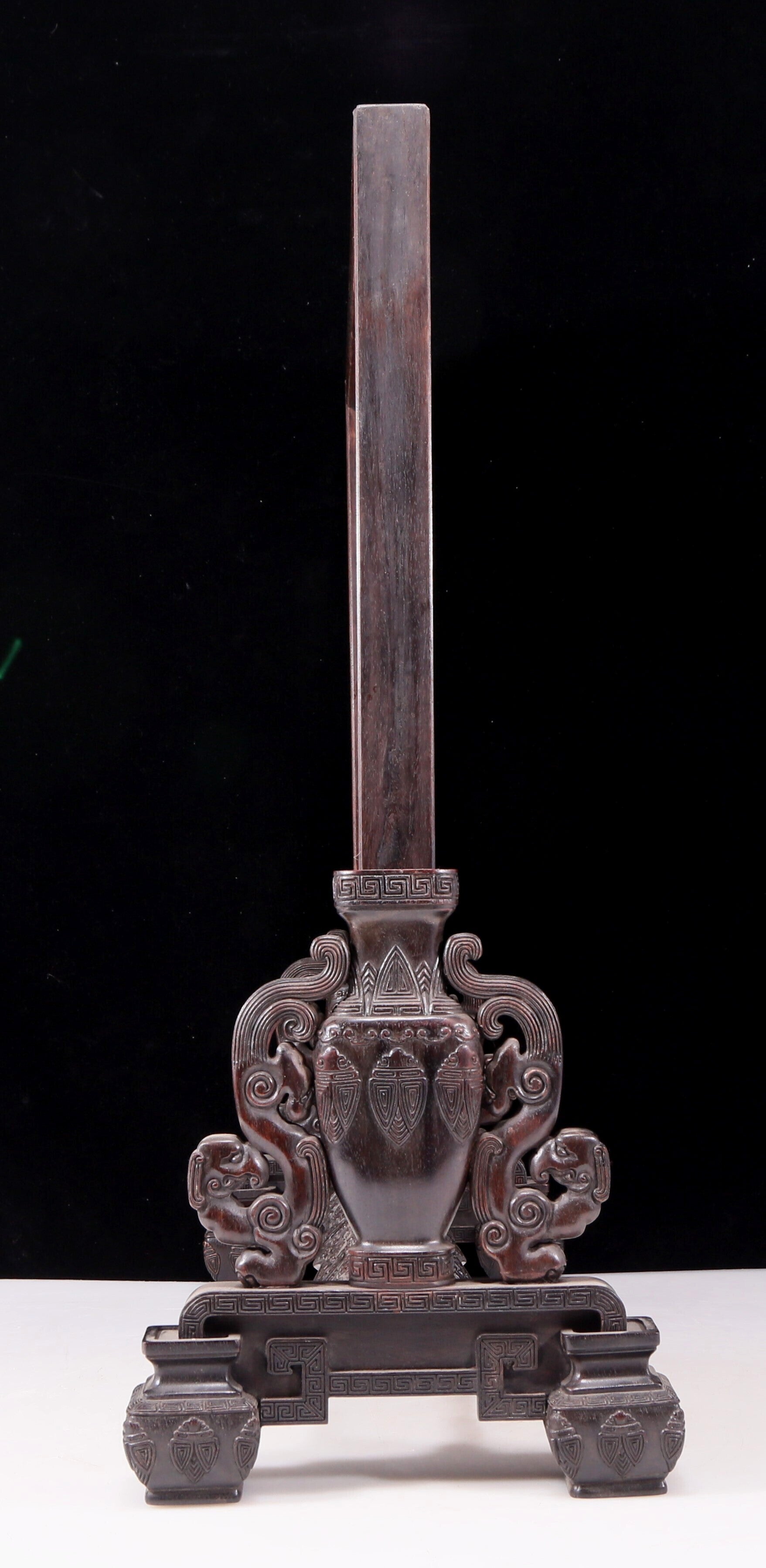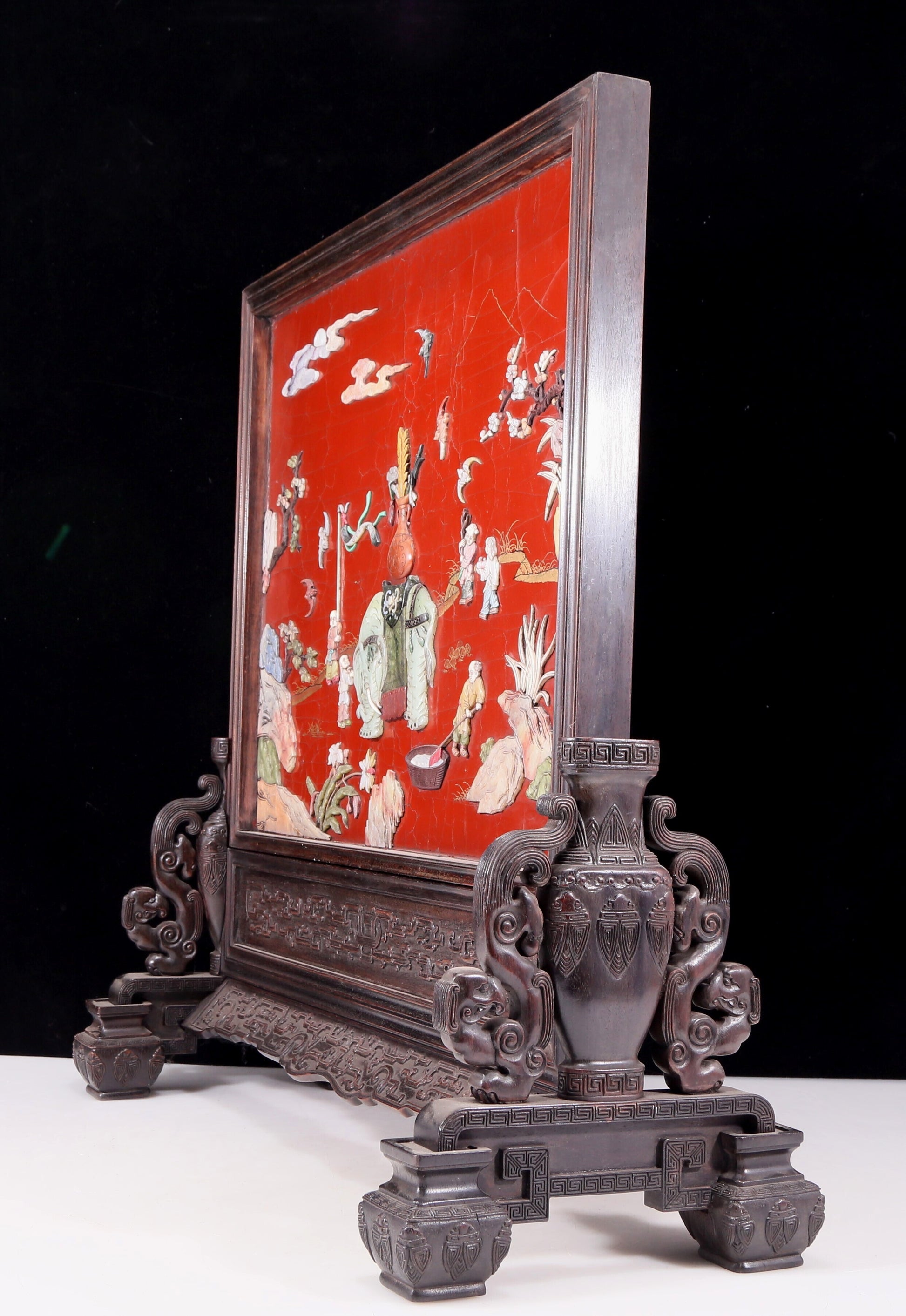An exquisite zitanwood lacquered gold-embedded elephant pattern table screen