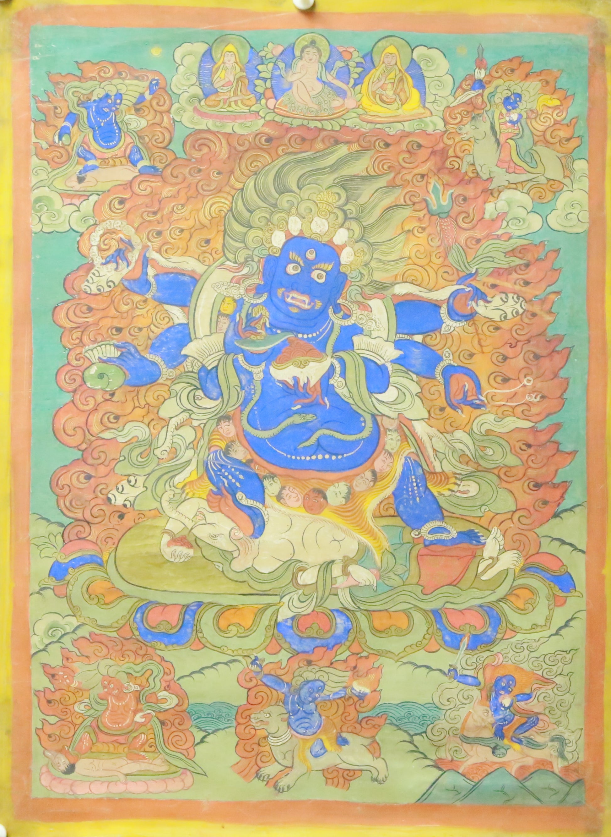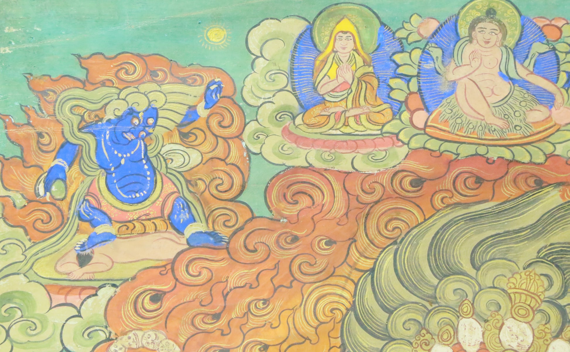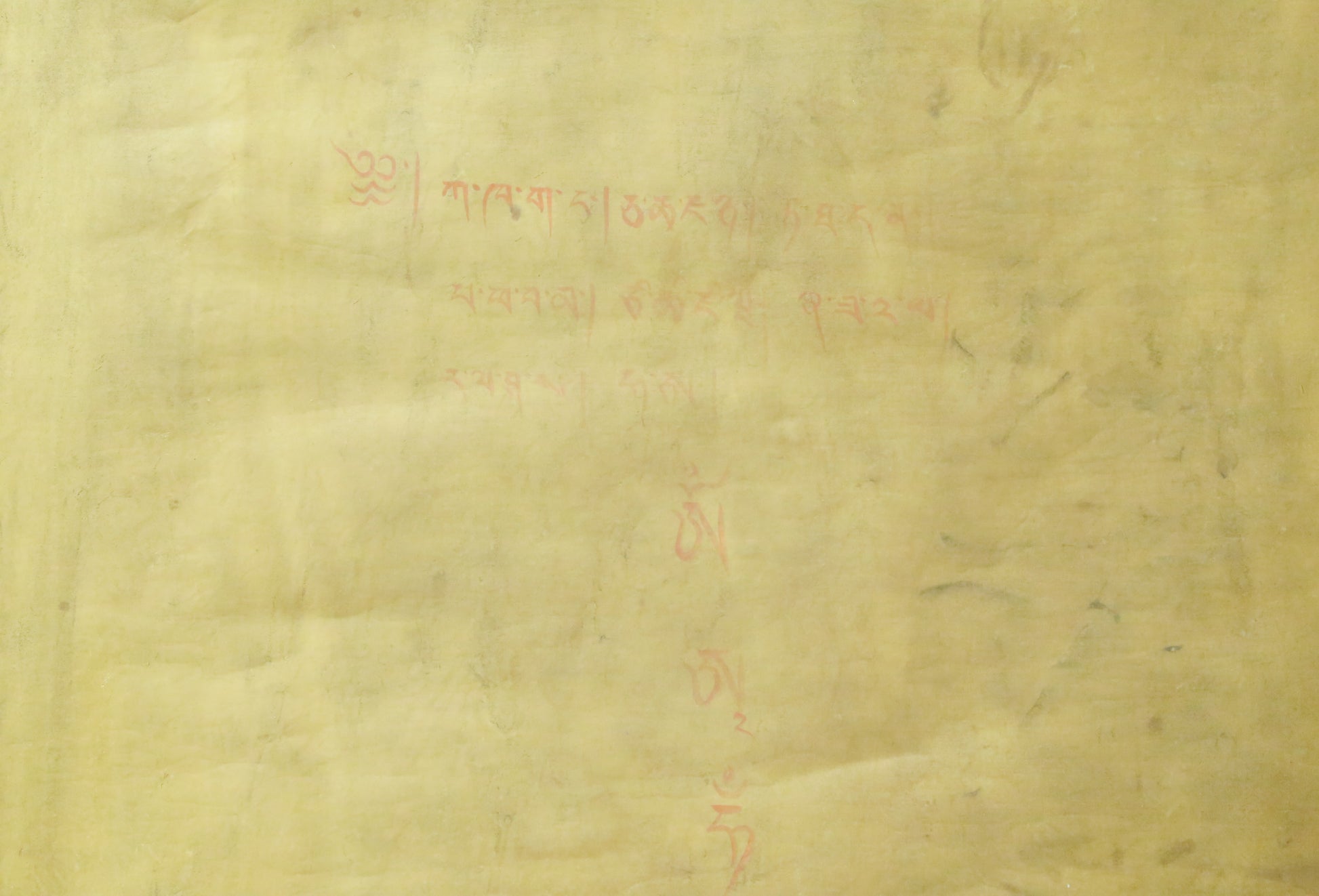 An Exquiste Painted Gold Vajra Thangka, With inscription, Qing Dynasty, China. Size:57cmx76cm     清代  彩绘描金金刚像唐卡
