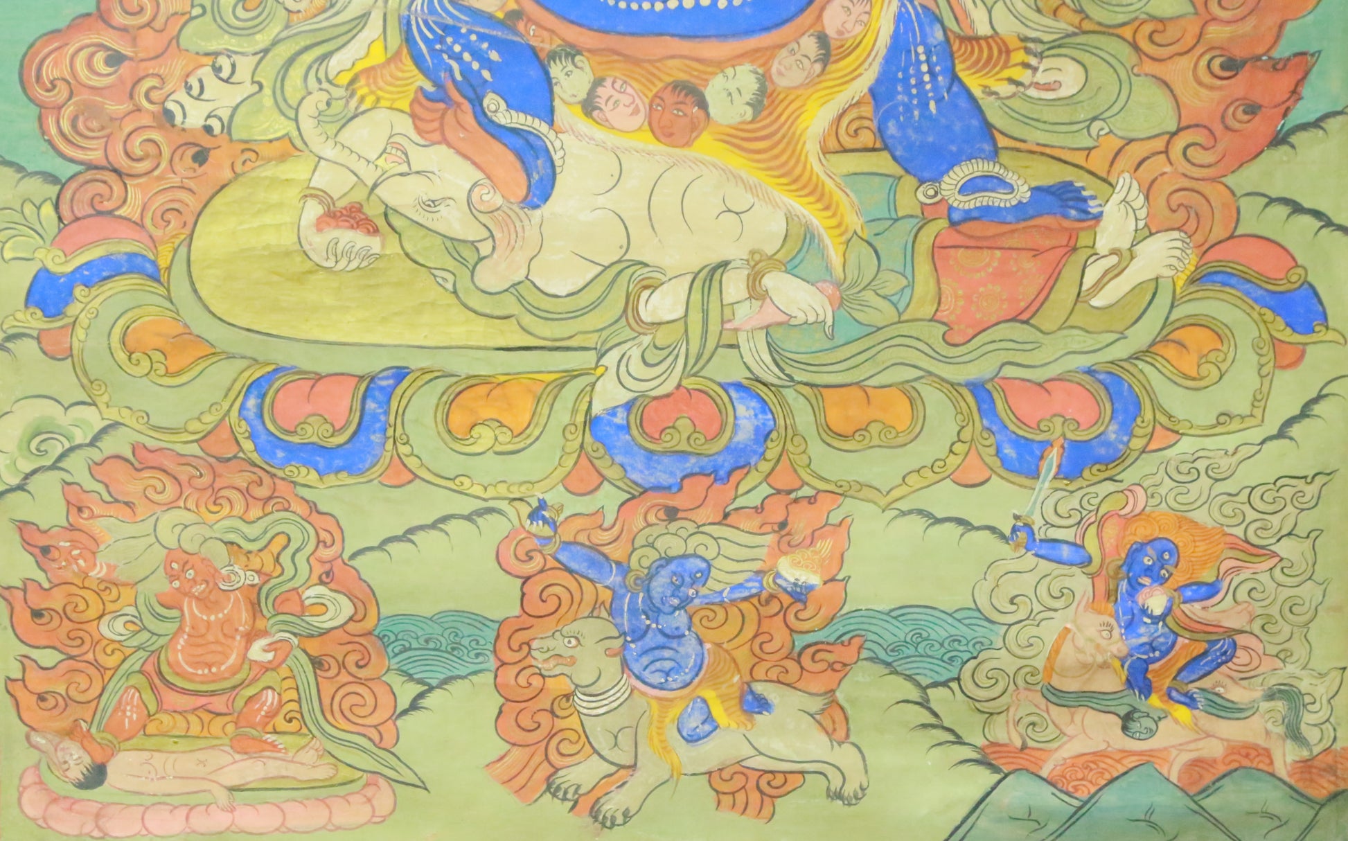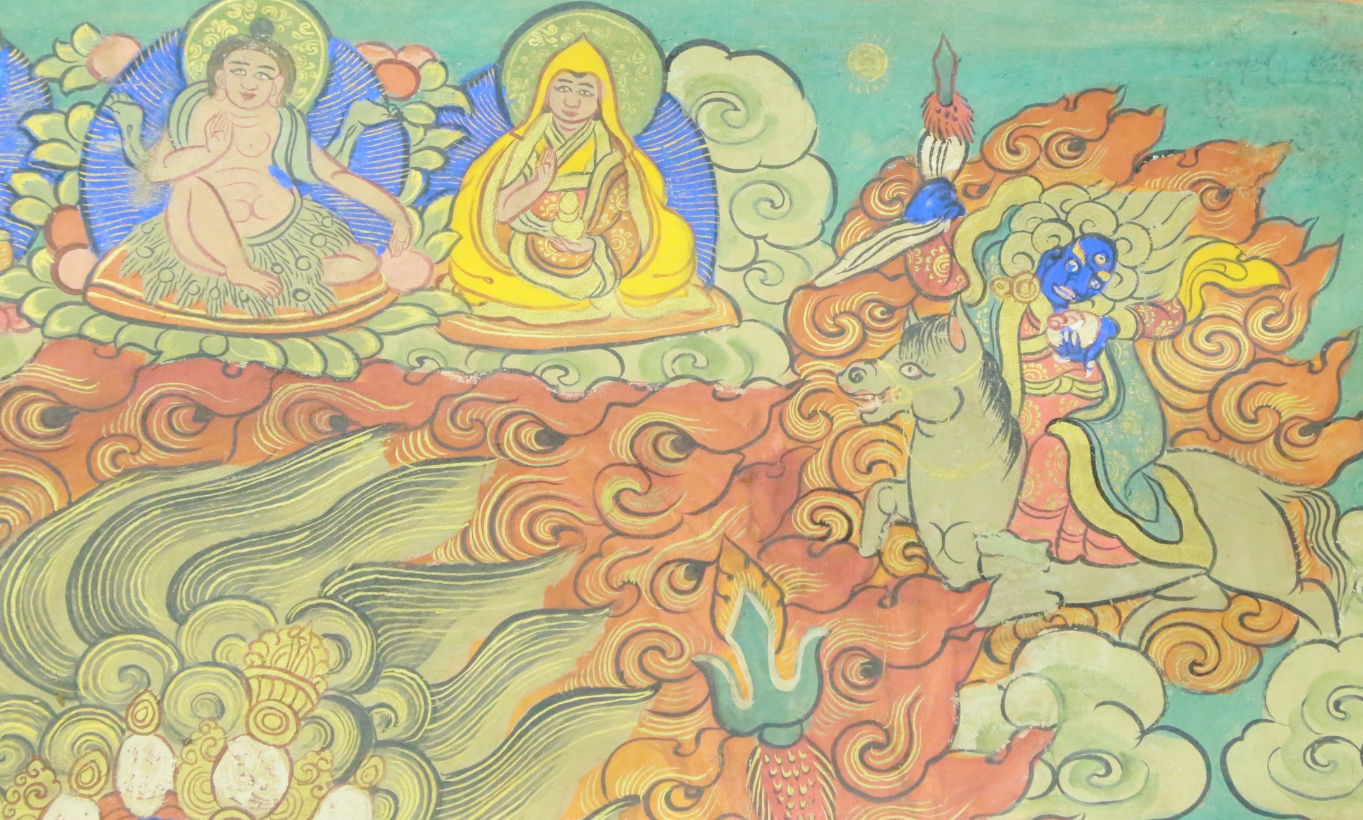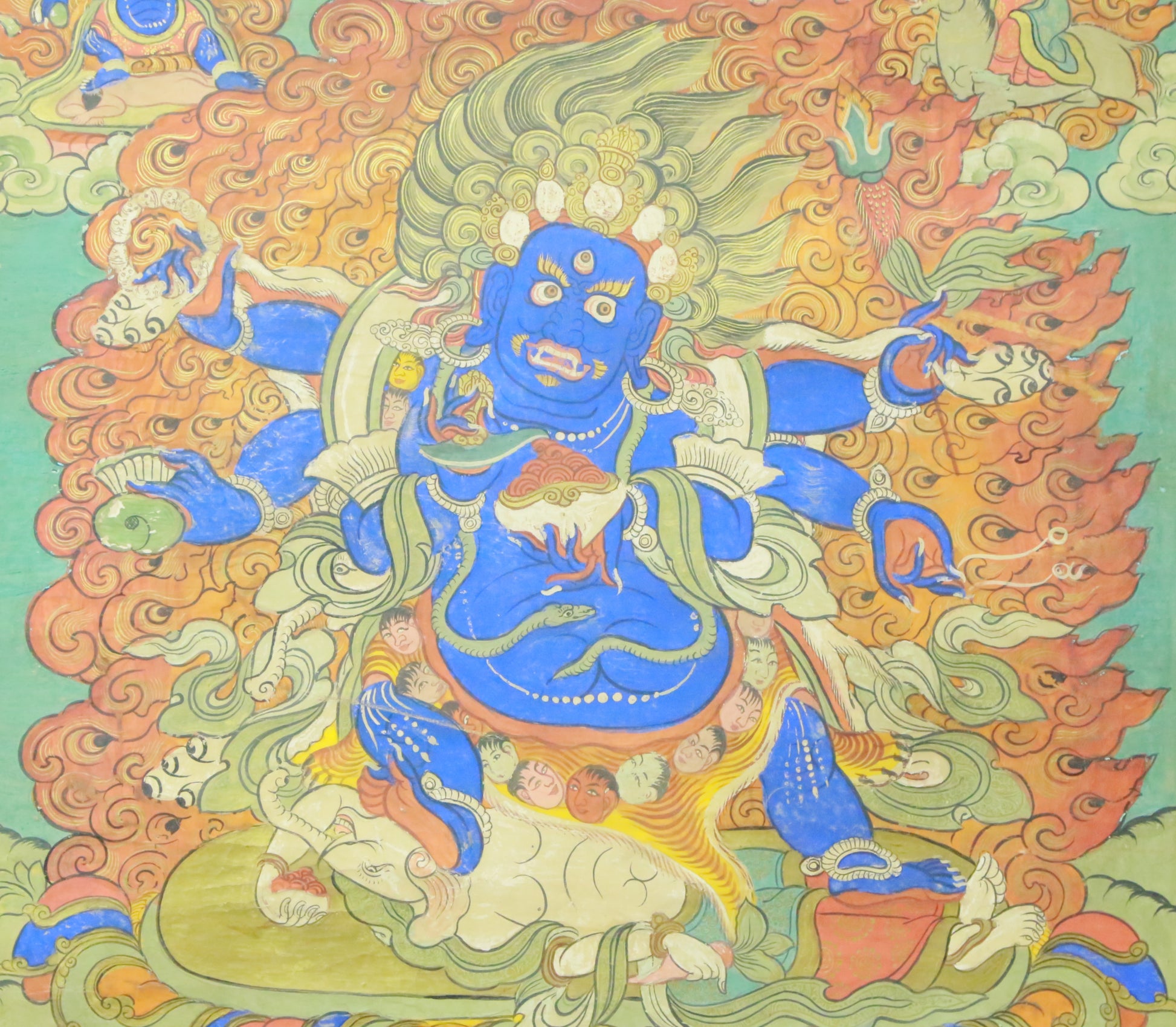 An Exquiste Painted Gold Vajra Thangka, With inscription, Qing Dynasty, China. Size:57cmx76cm     清代  彩绘描金金刚像唐卡