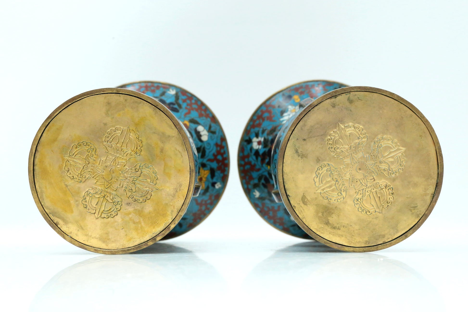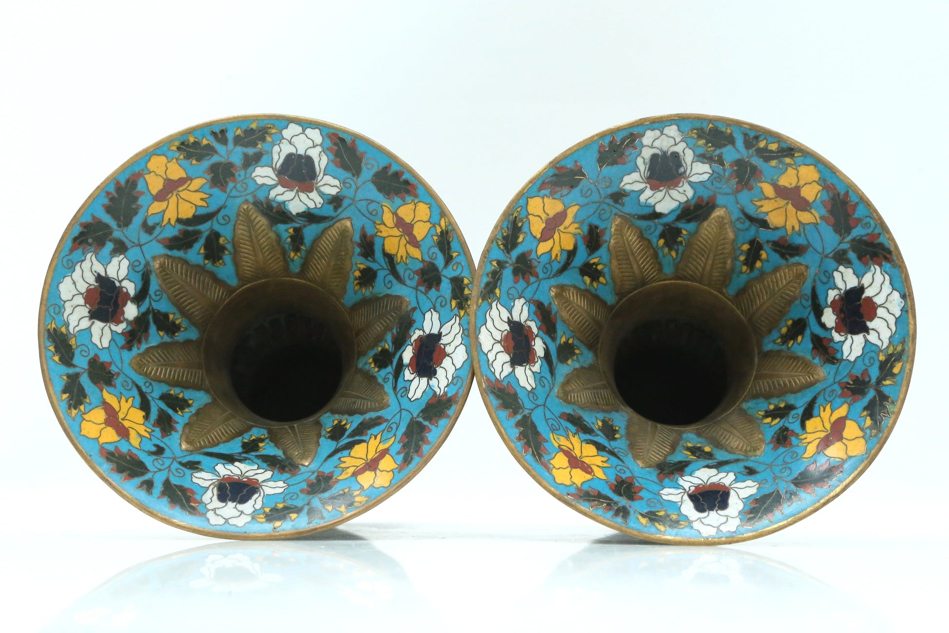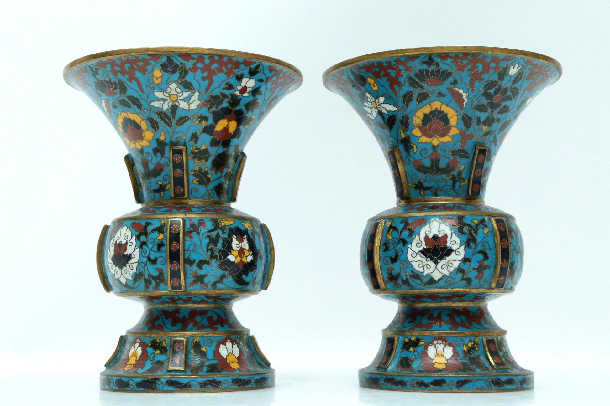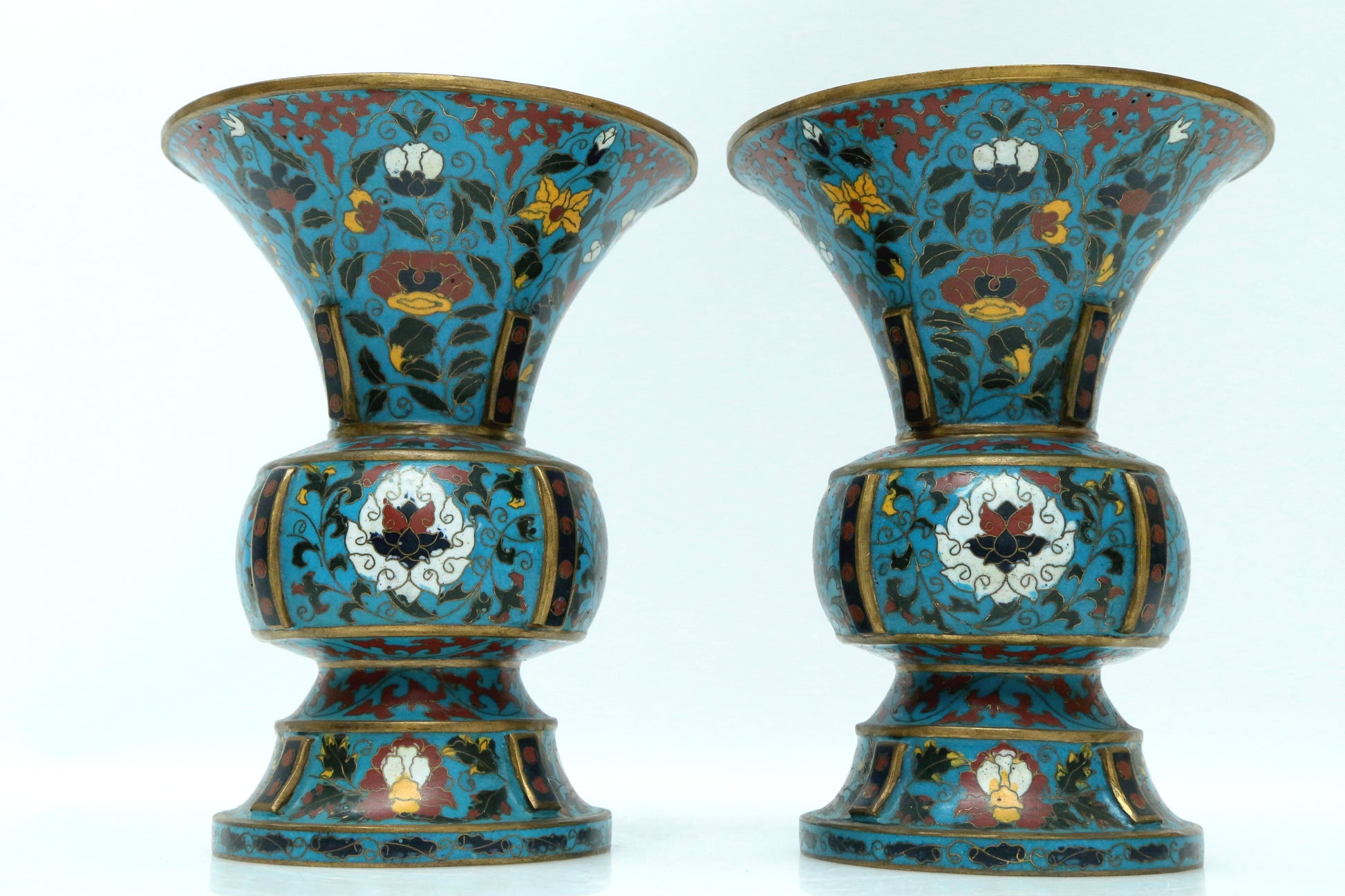 Fine Pair Of Cloisonne 'Scrolling Lotus' Vases
