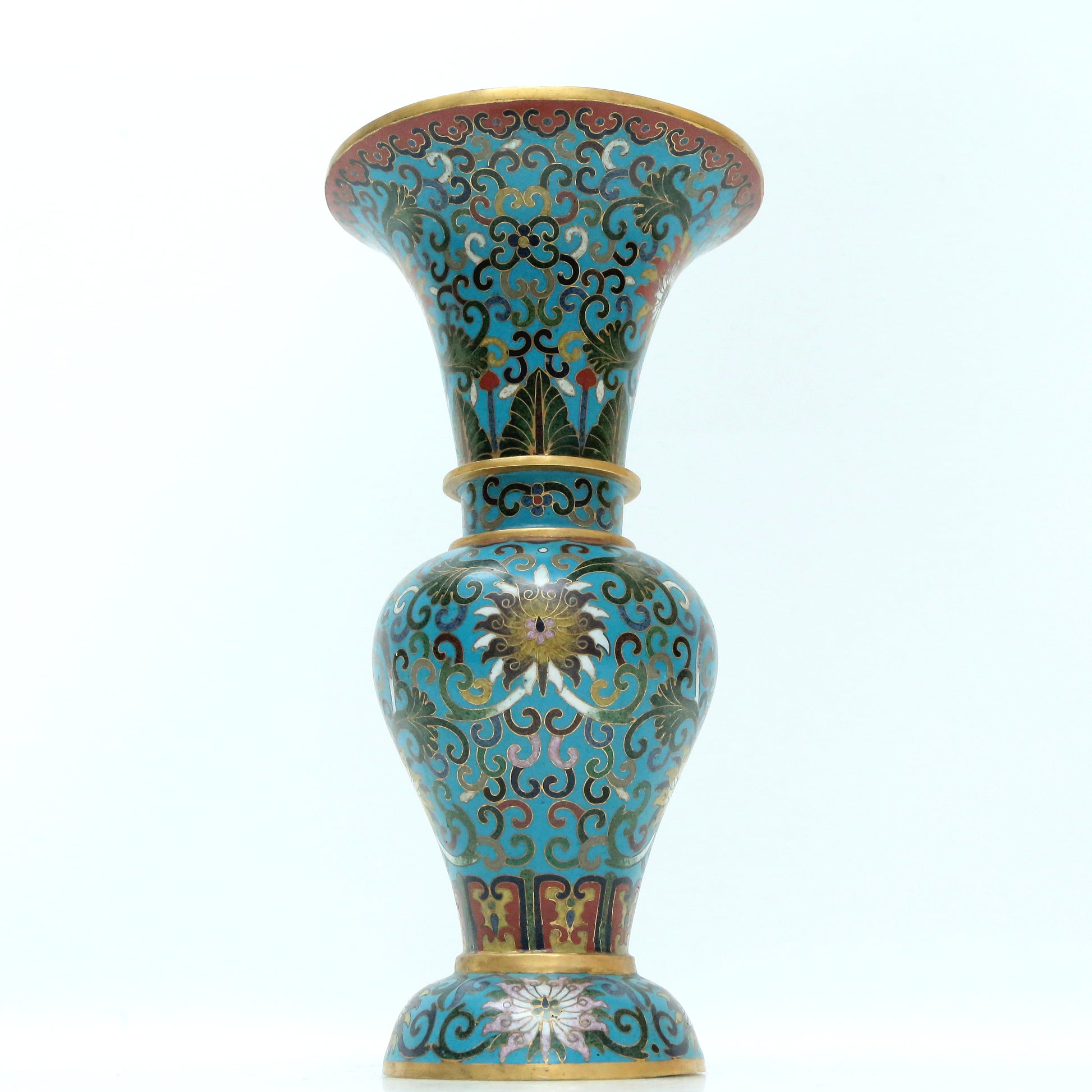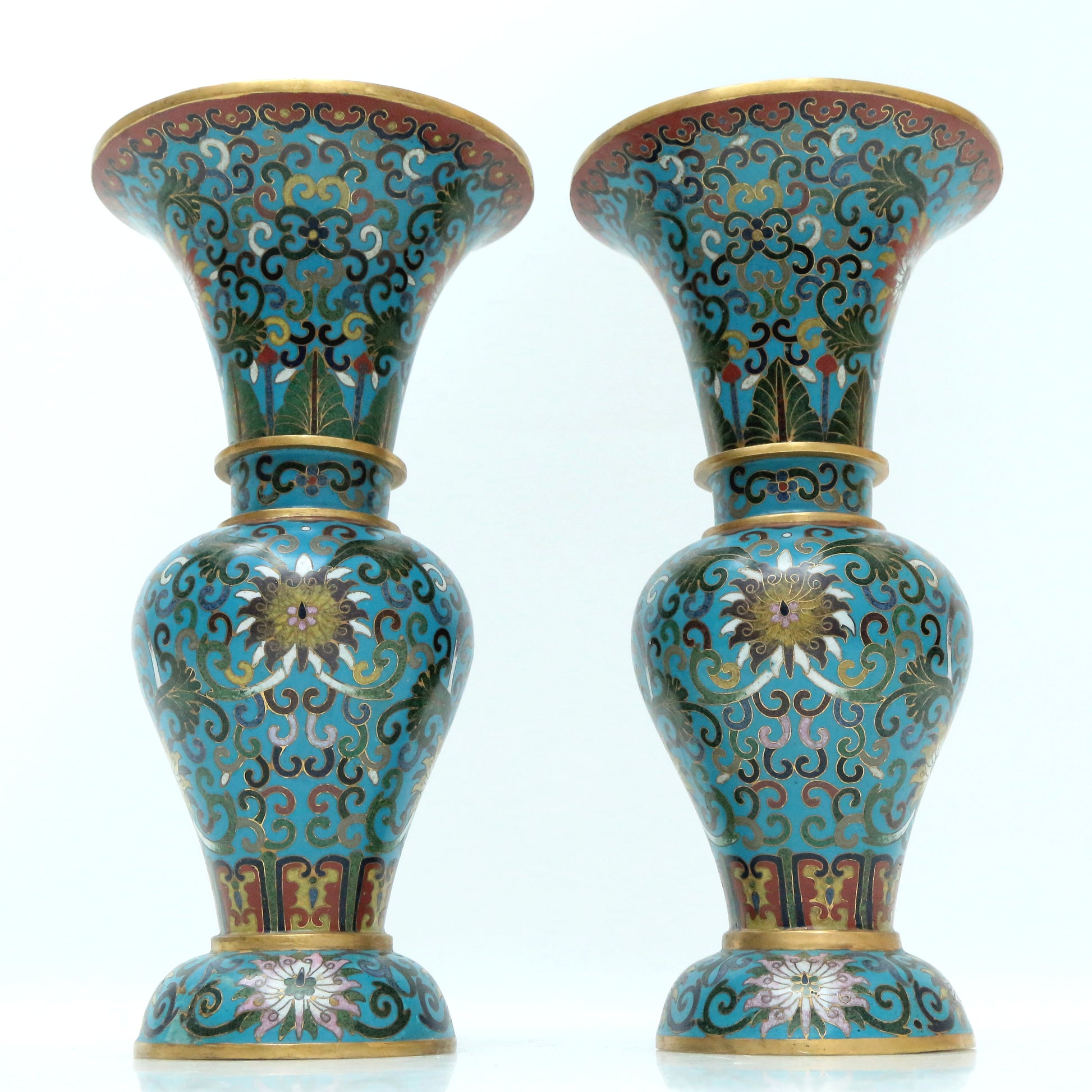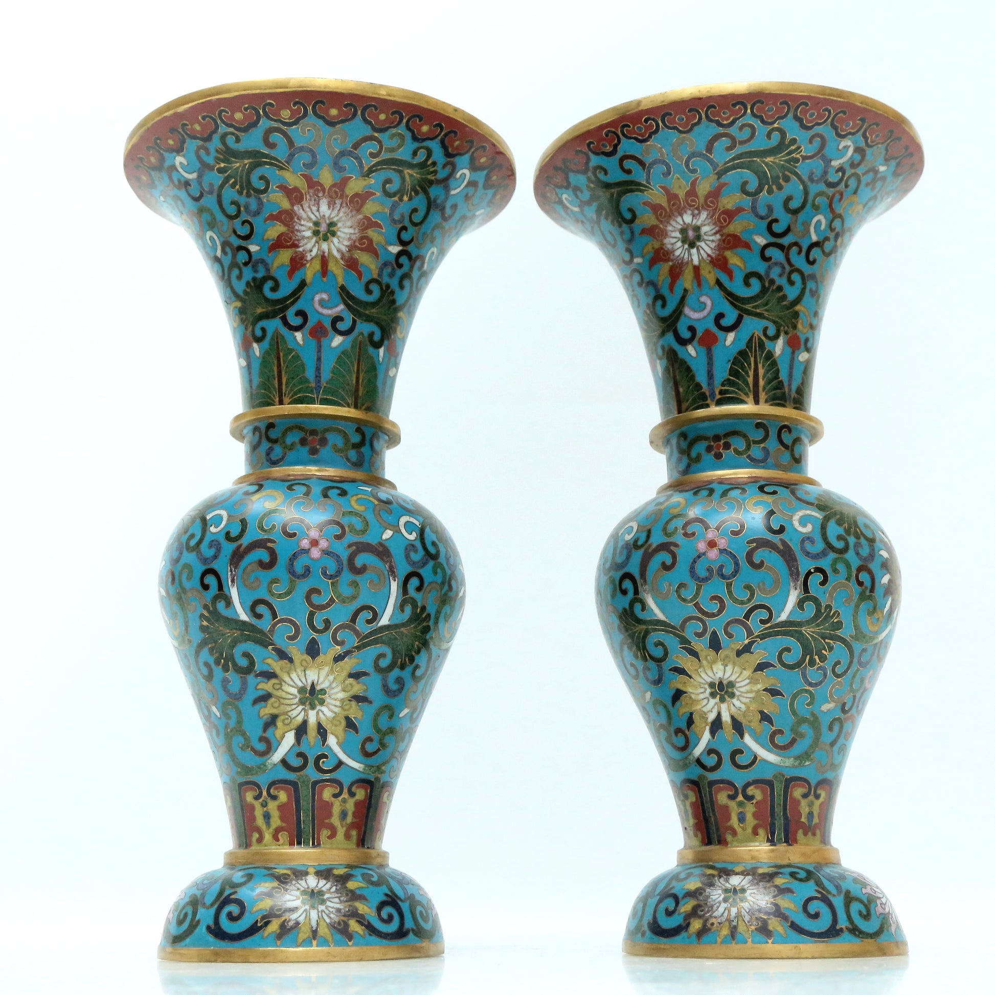 Fine Pair Of Cloisonne 'Scrolling Lotus' Vases