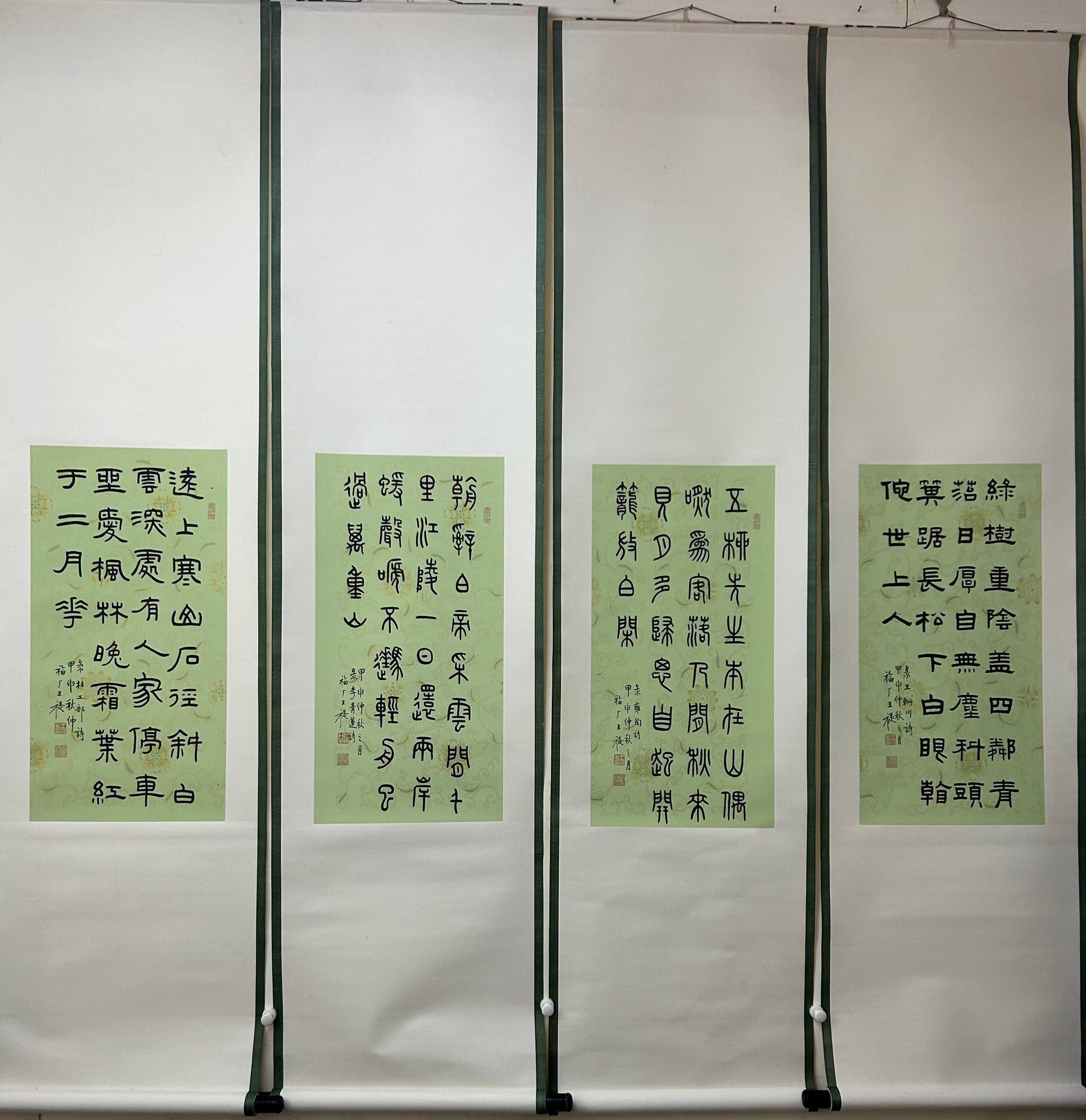 Four Exquisite Chinese Ink Calligraphy Hanging Scrolls By Wang Fuchang