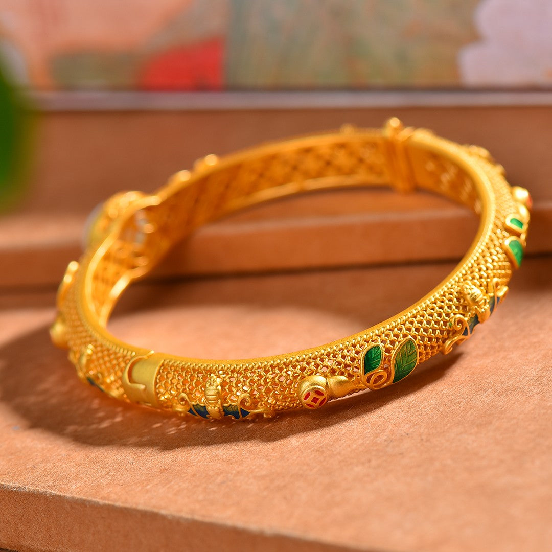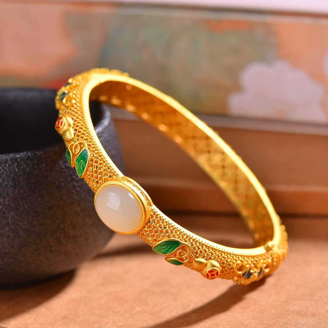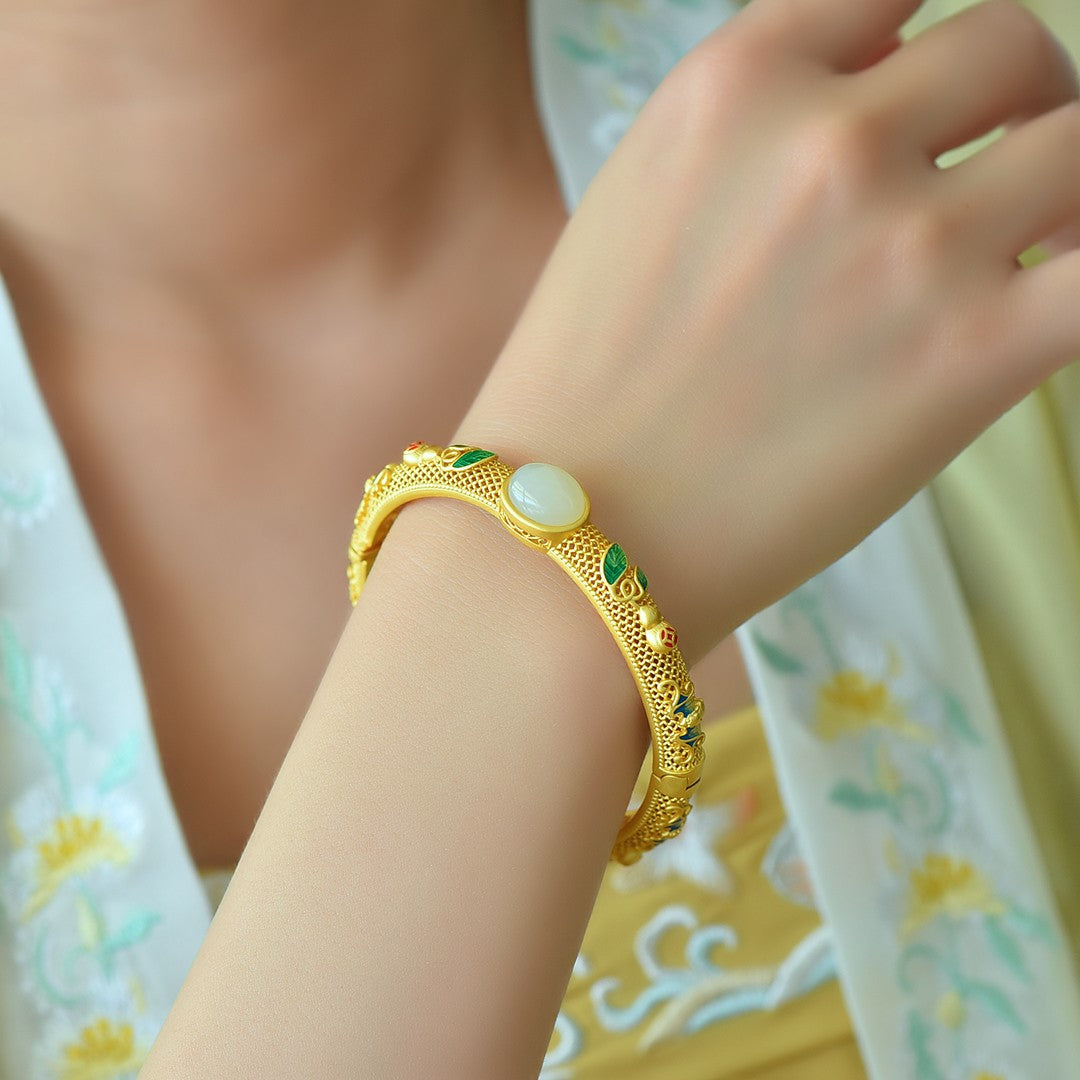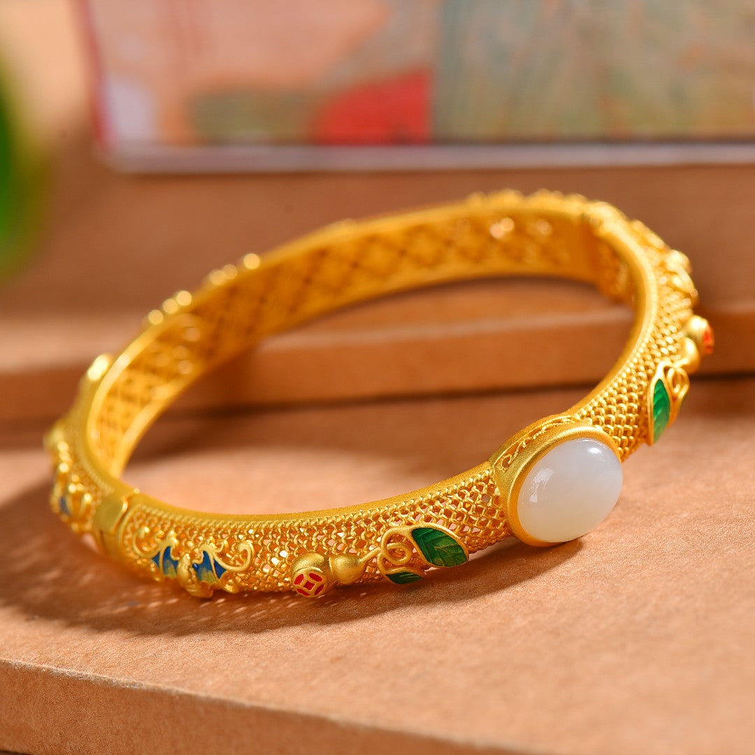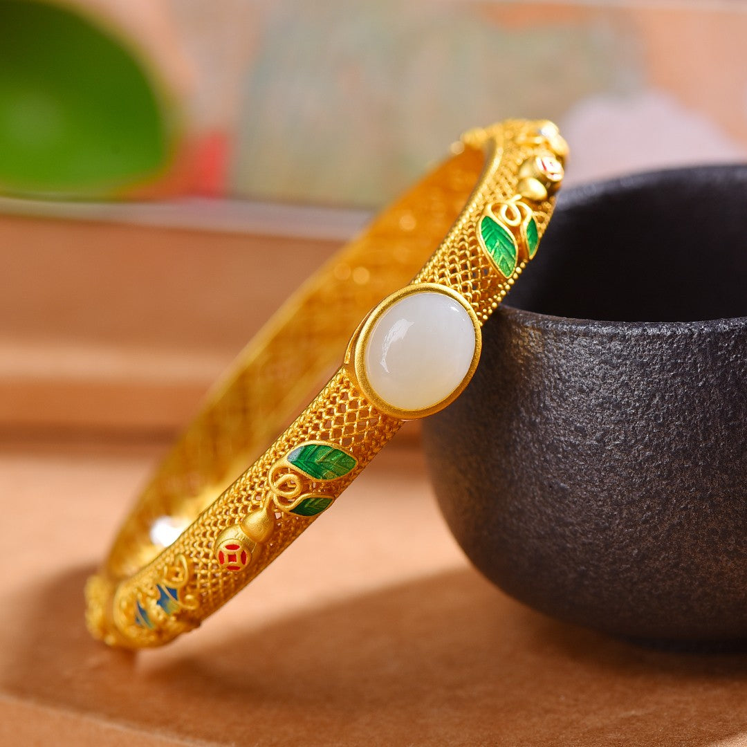Gilt silver and Hetian jade enamel bracelet