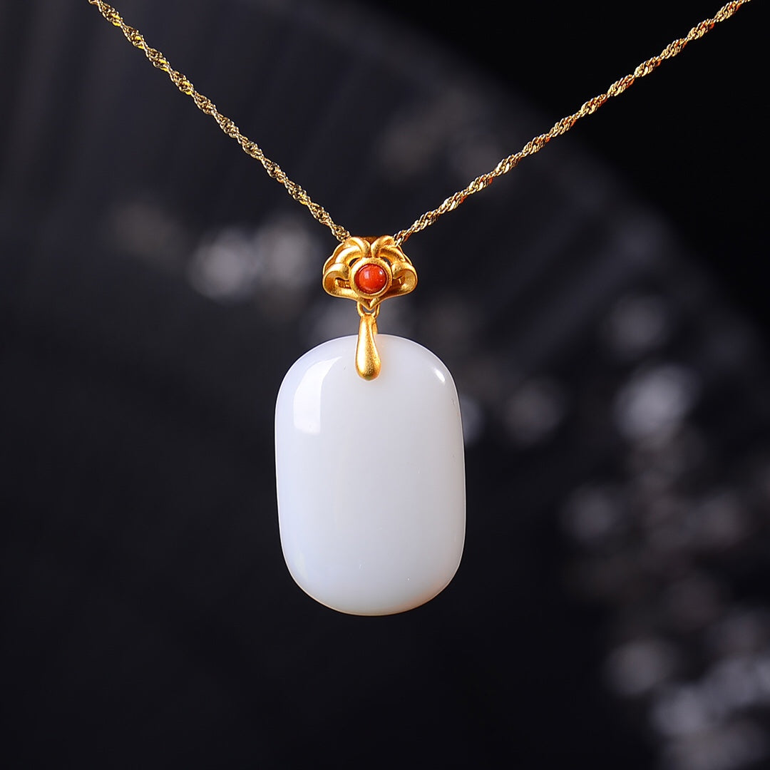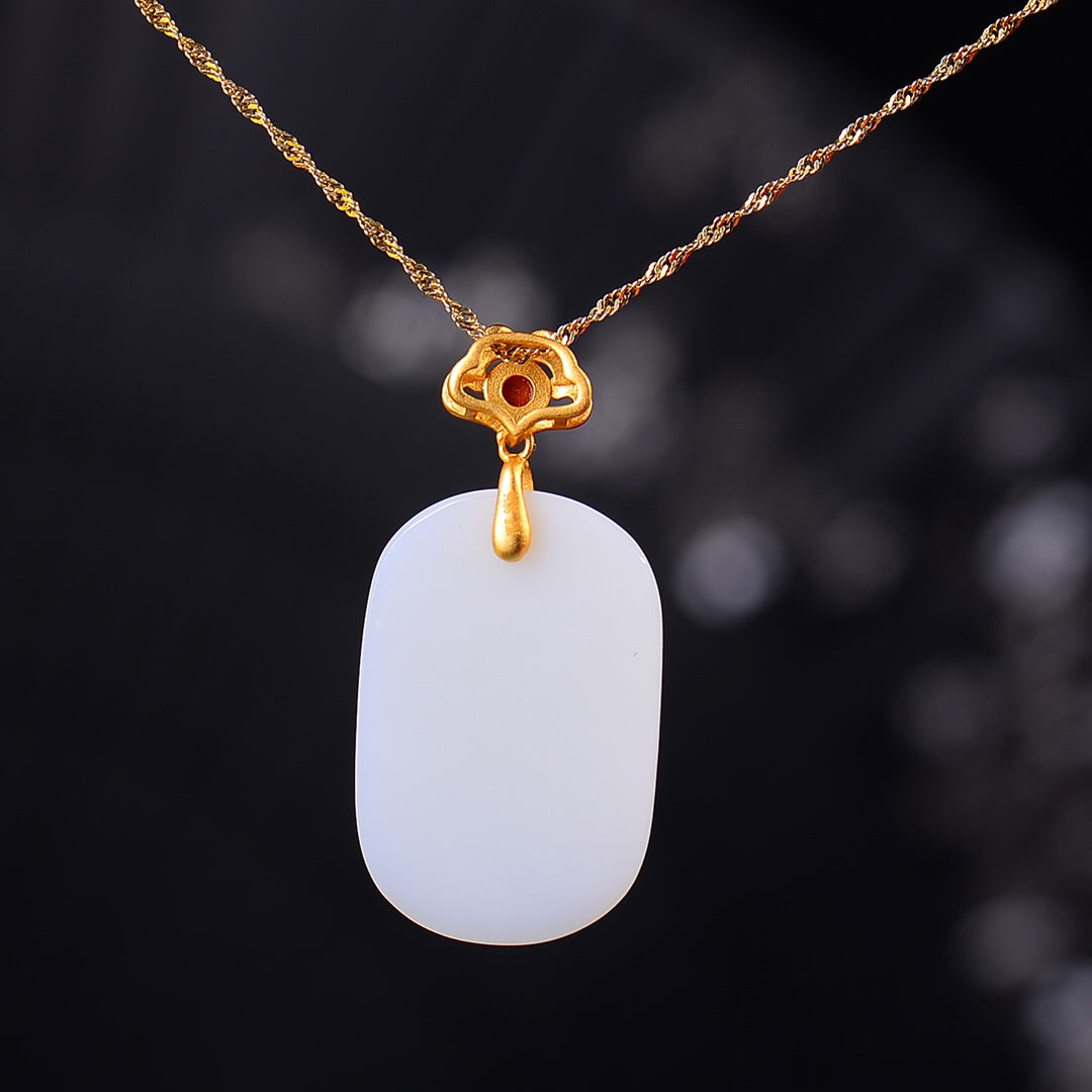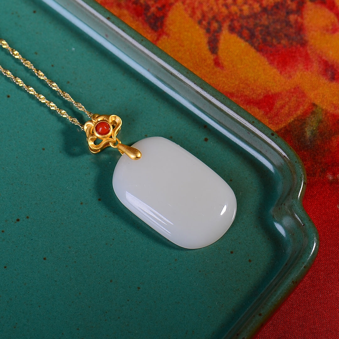 Gilt silver inlaid Hetian jade peace plate with southern red pendant