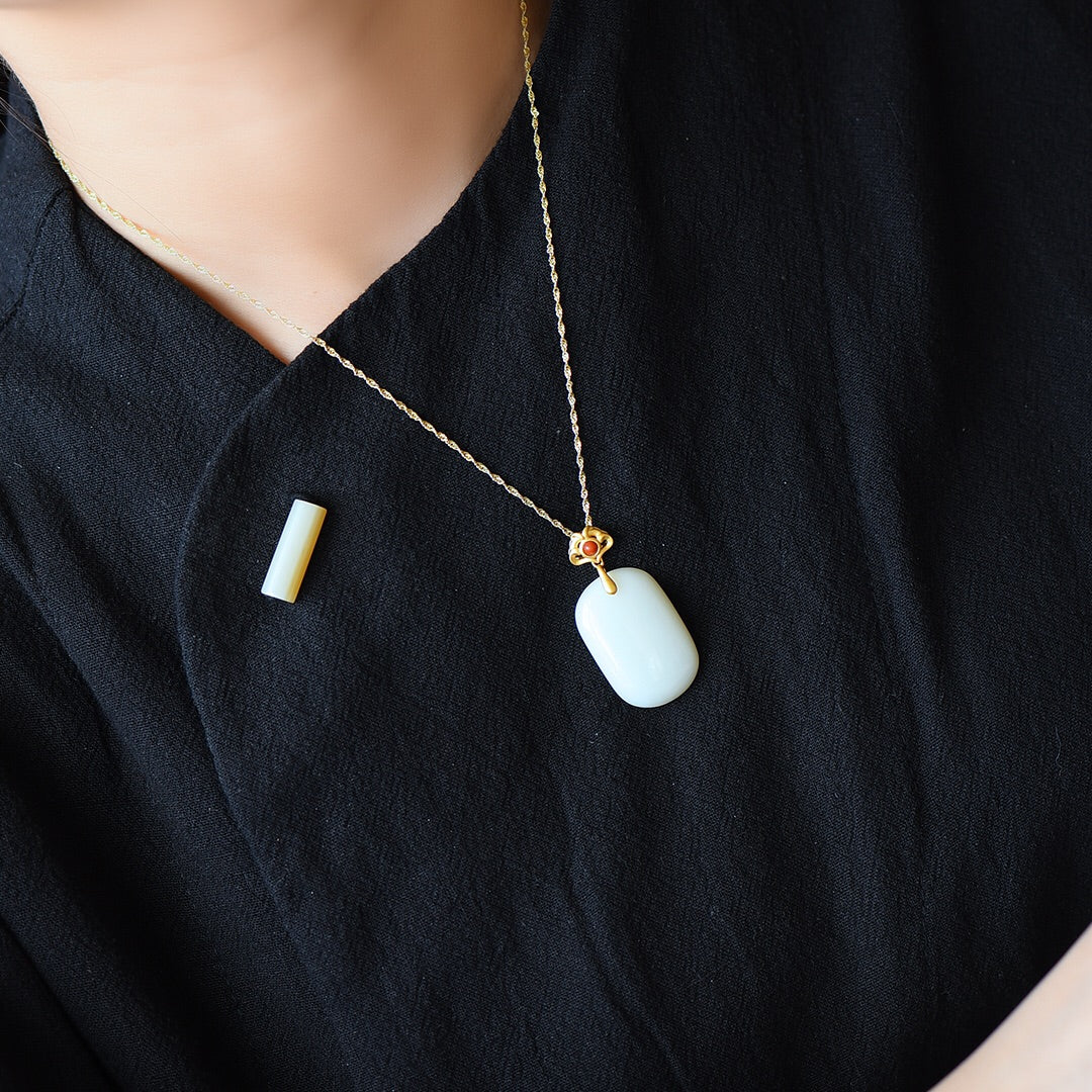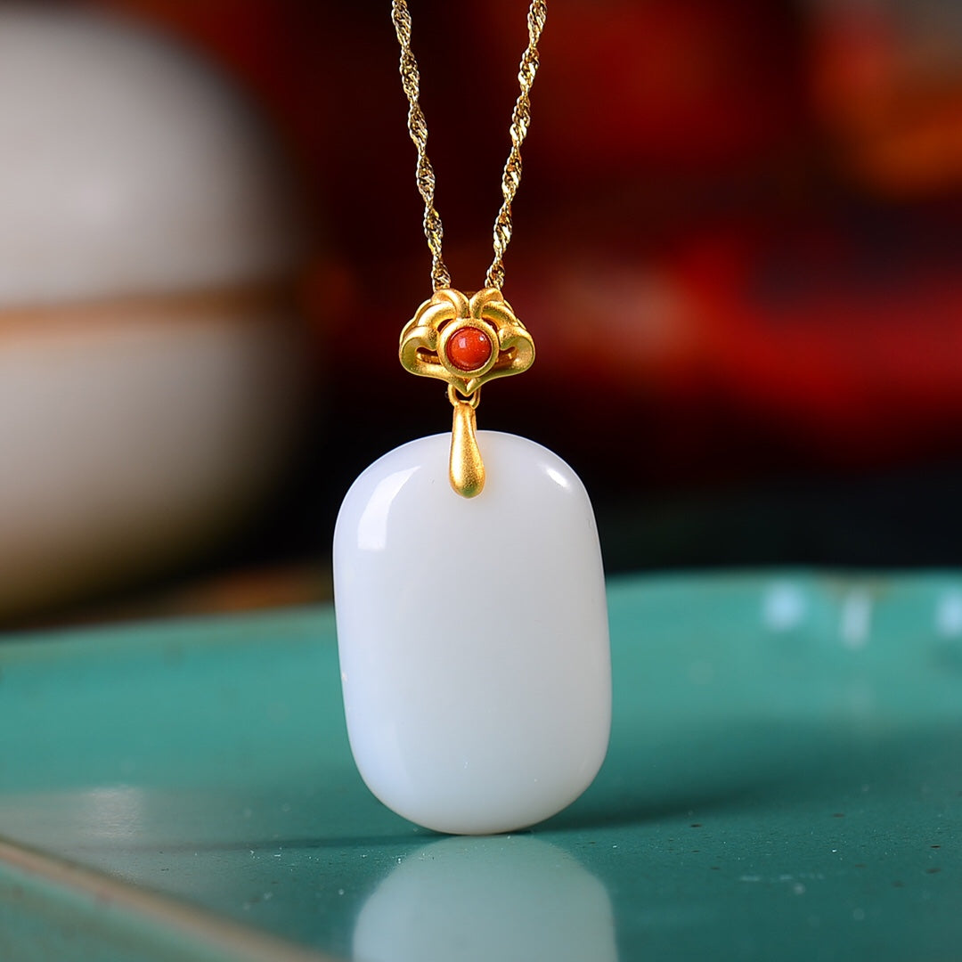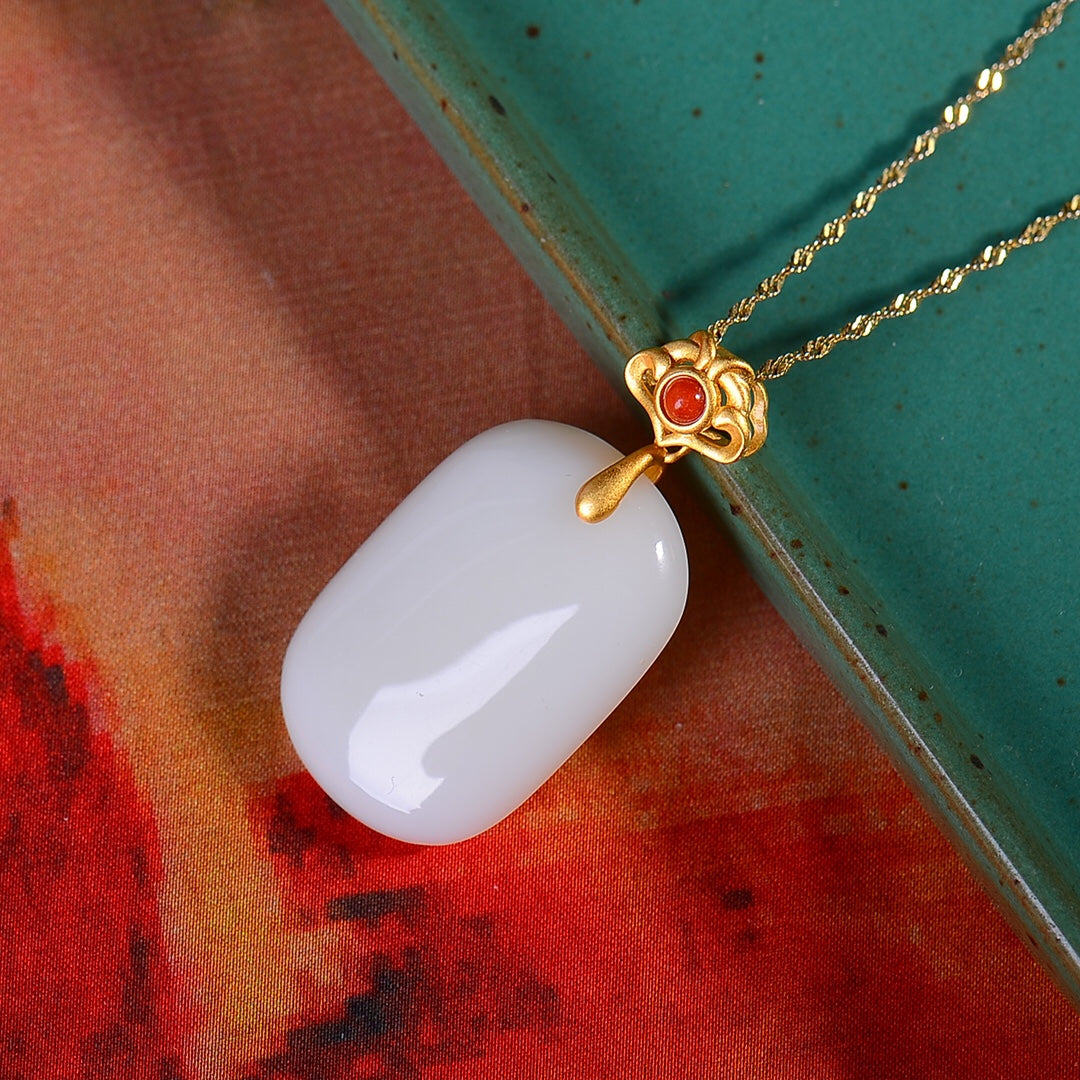 Gilt silver inlaid Hetian jade peace plate with southern red pendant