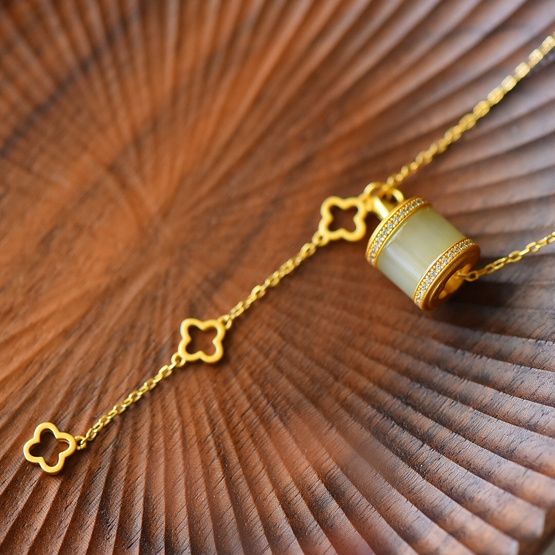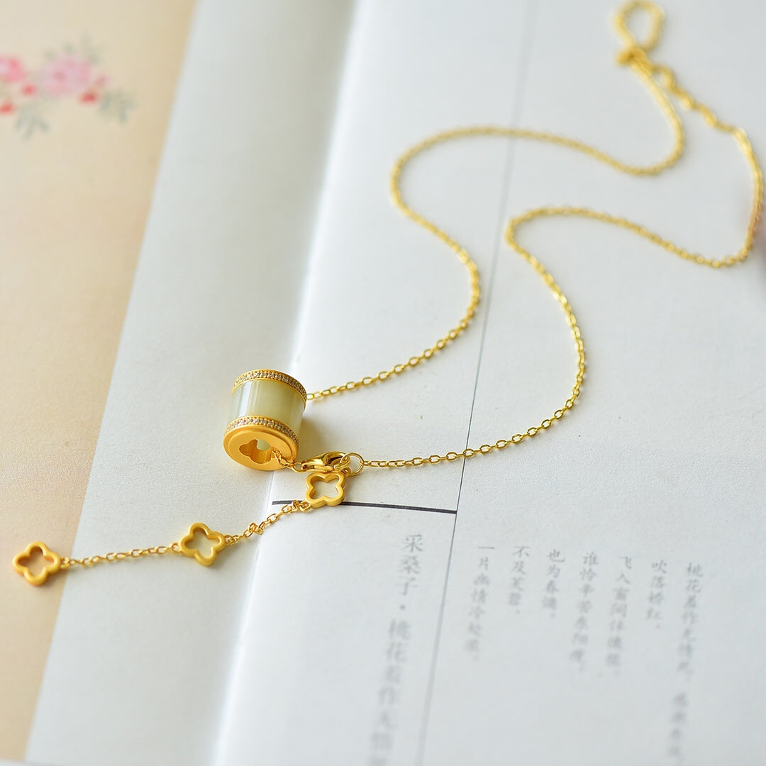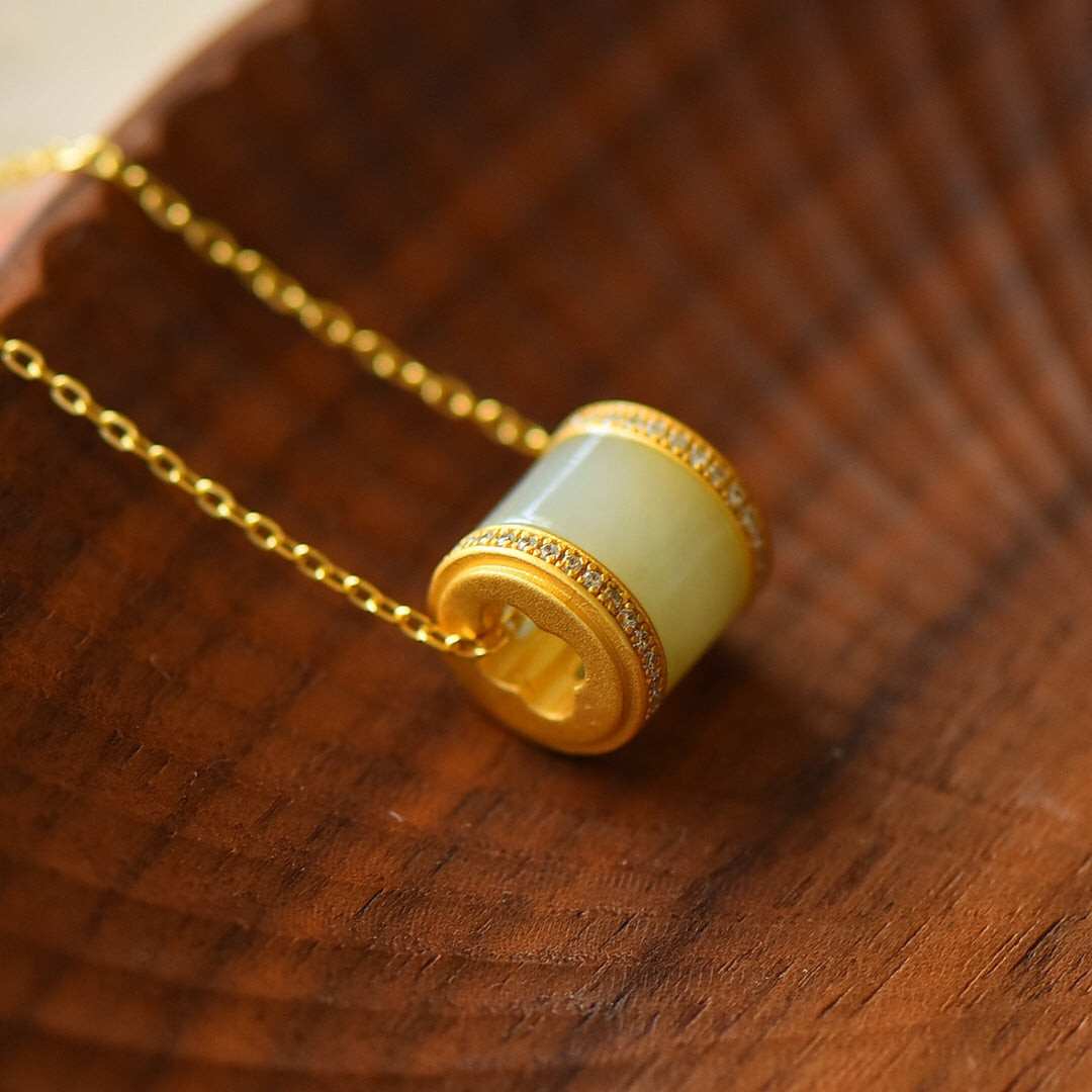 Gilt silver inlaid Hetian jade pendant