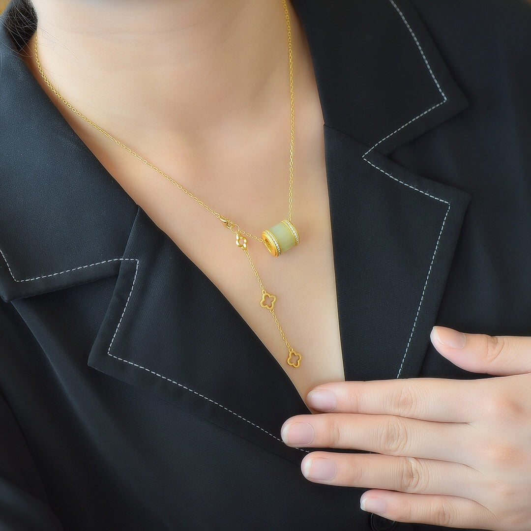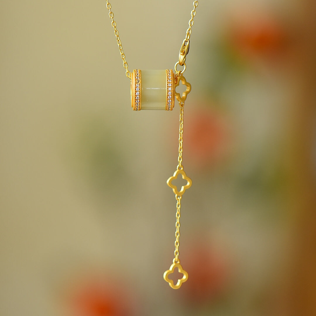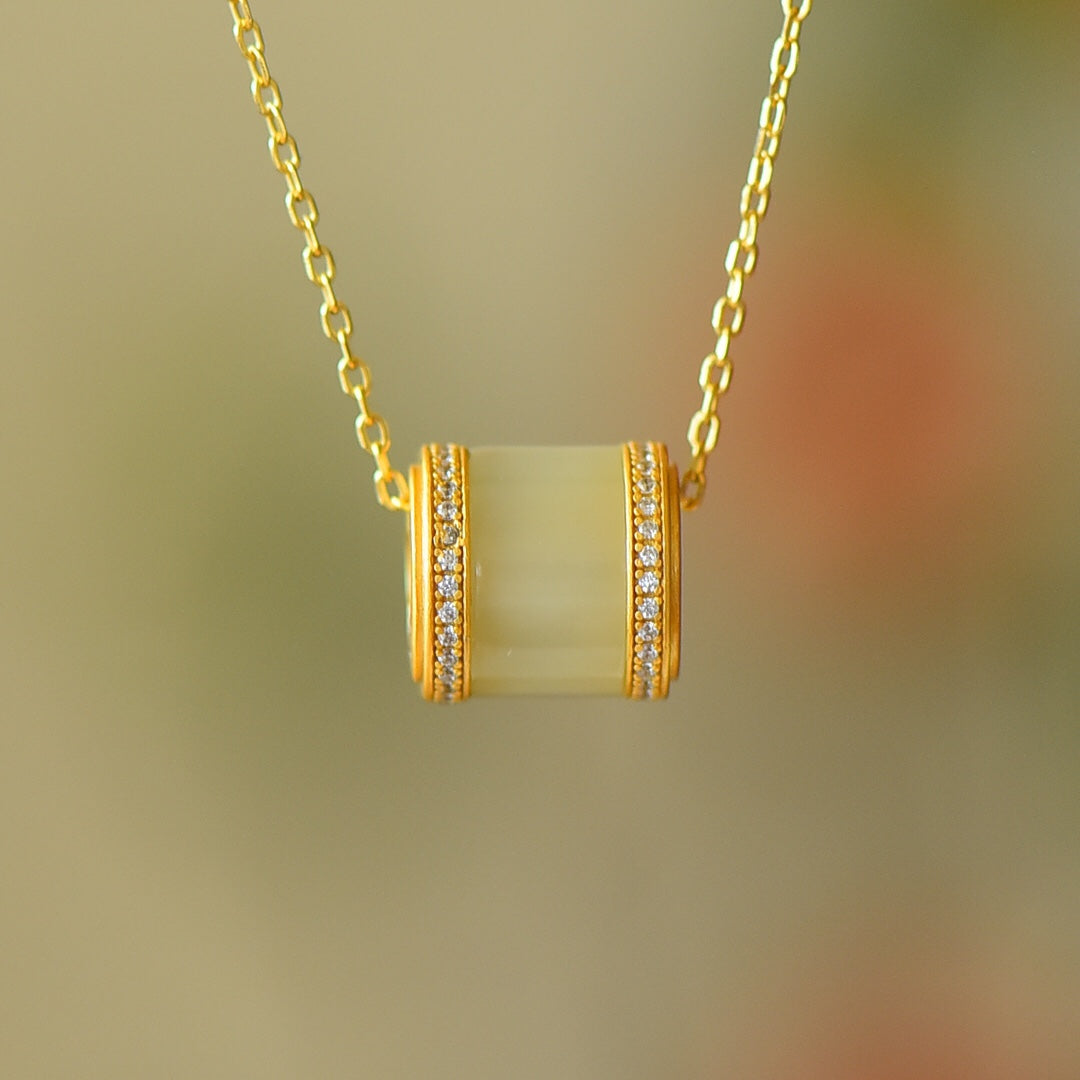 Gilt silver inlaid Hetian jade pendant