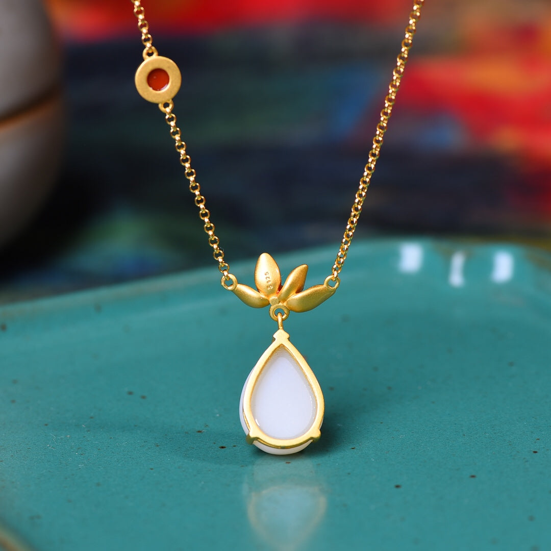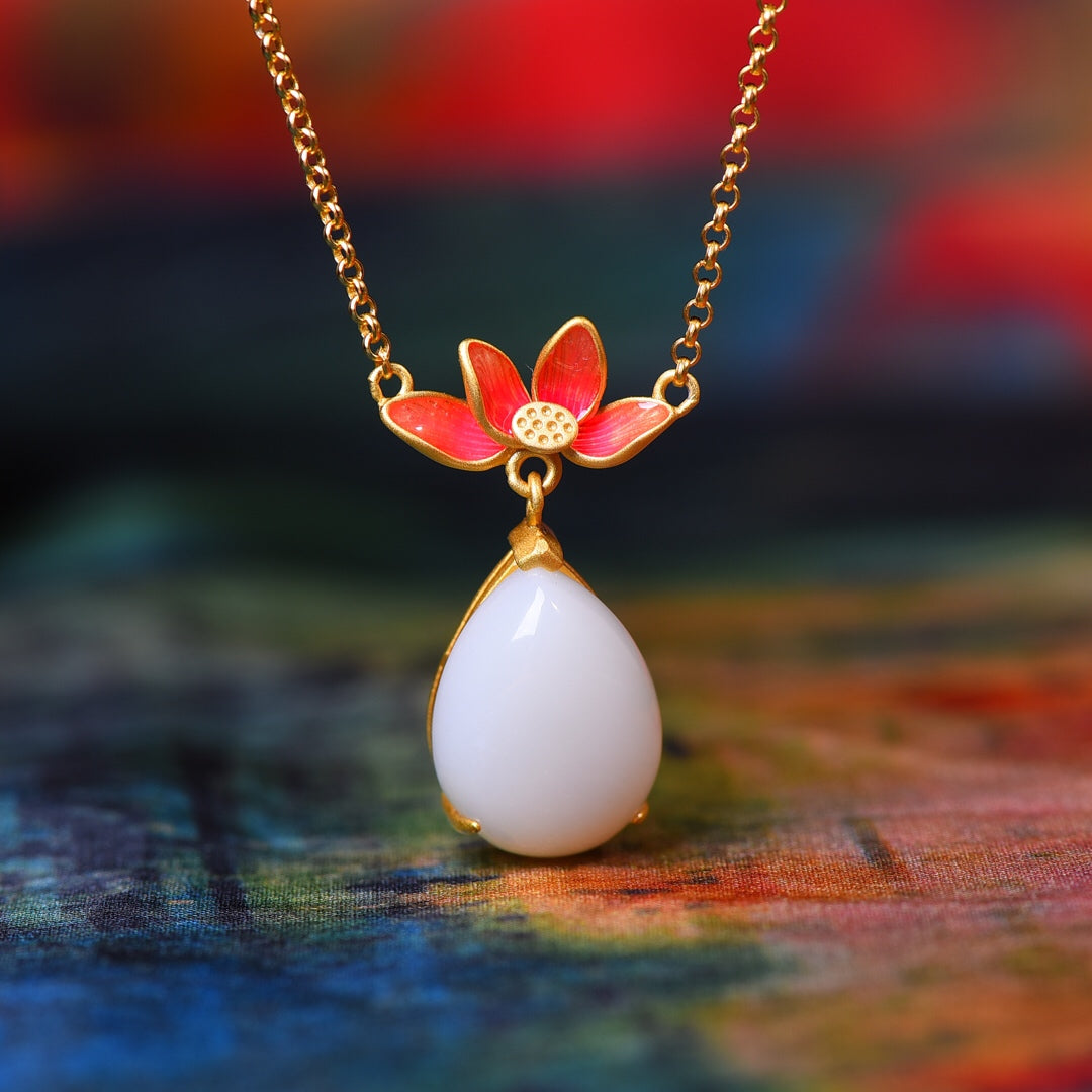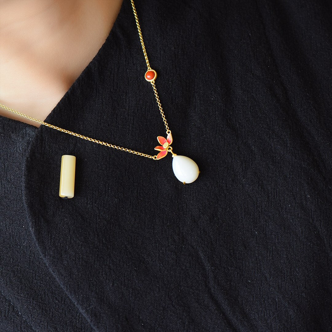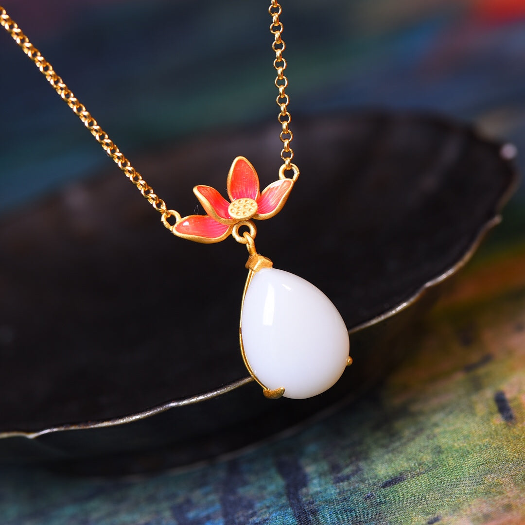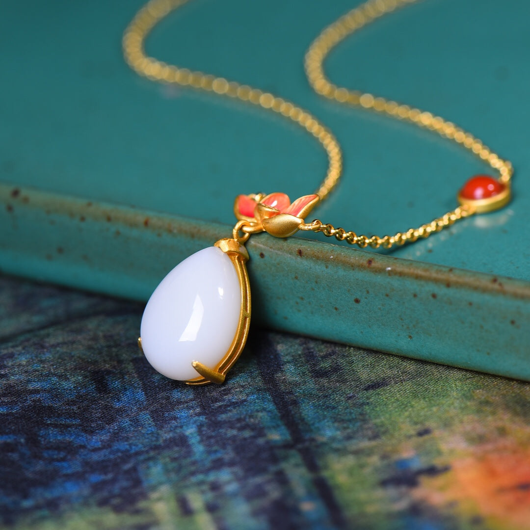 Silver gilt and Hetian jade drop enamel pendant