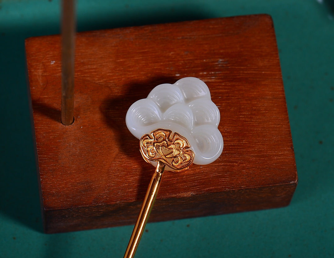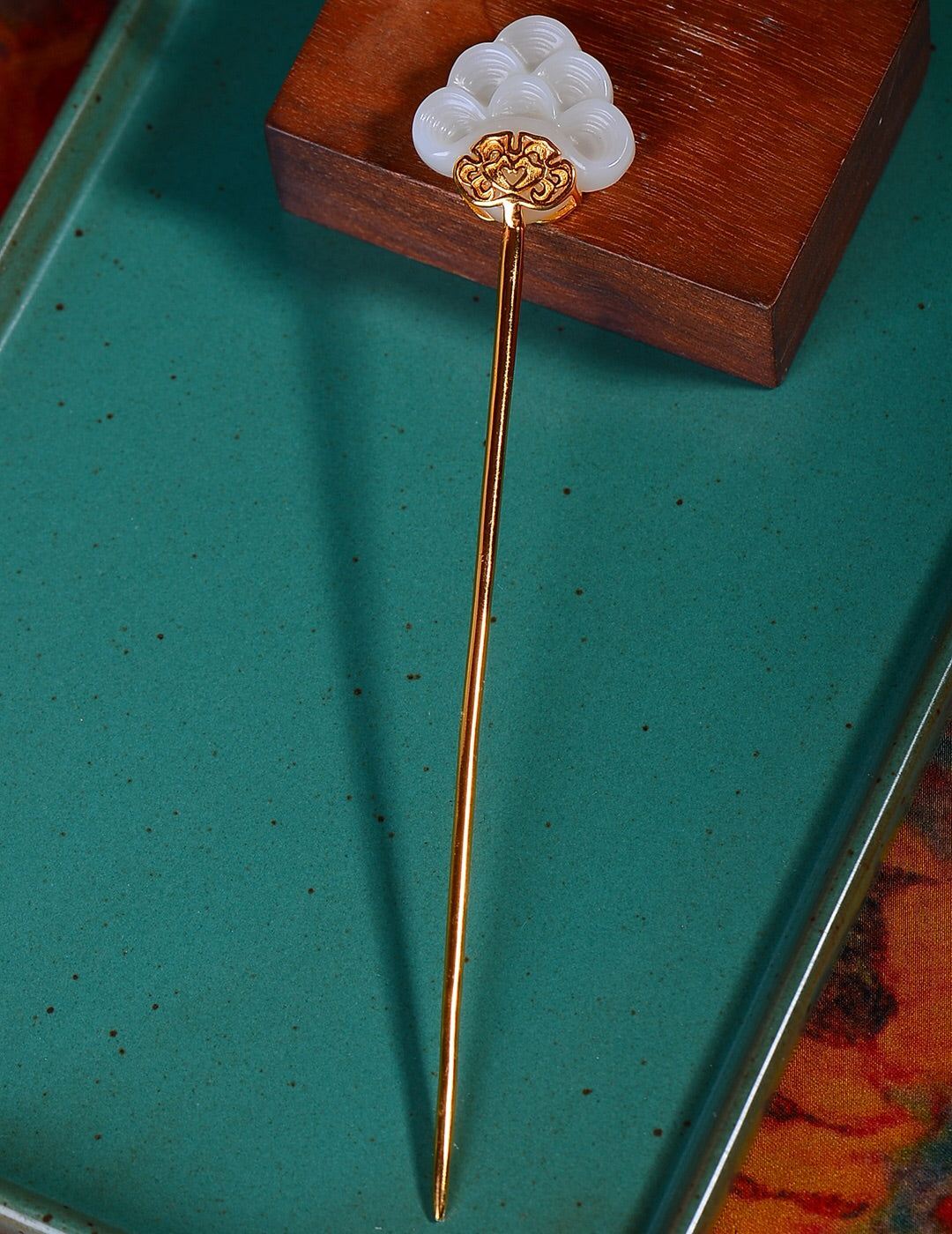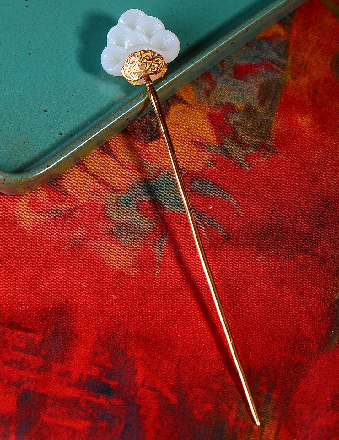 Silver gilt inlaid Hetian jade retro flower tag hairpin