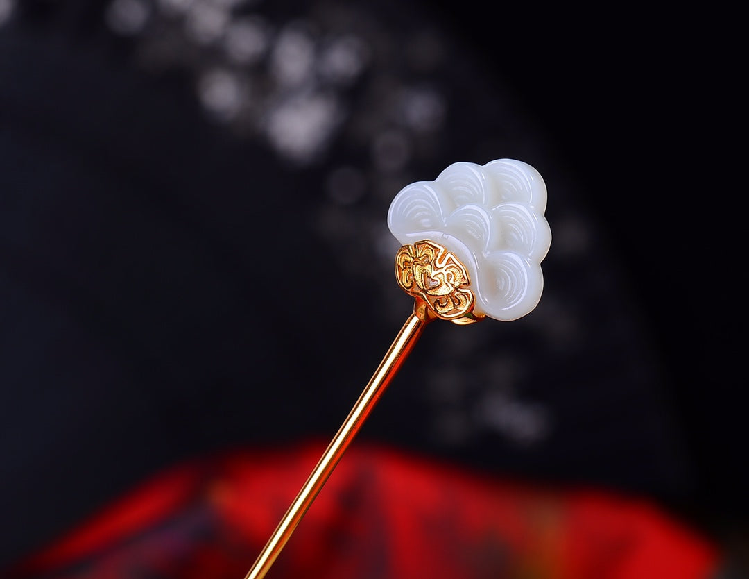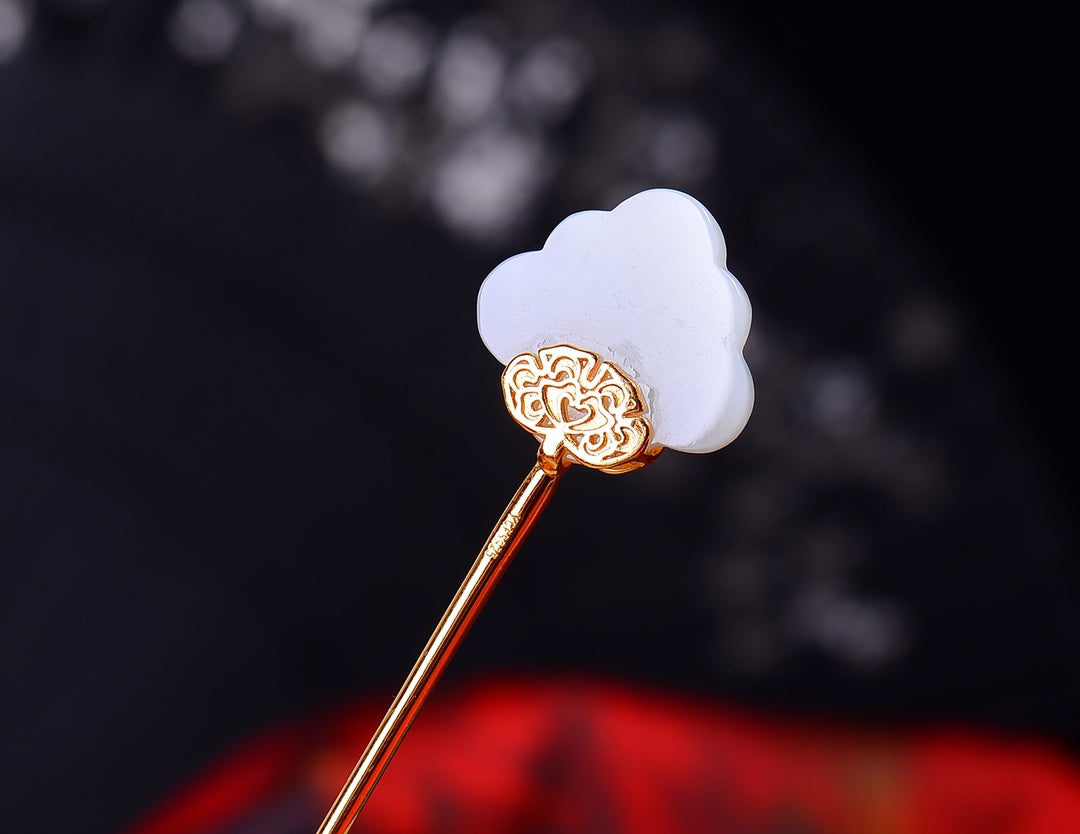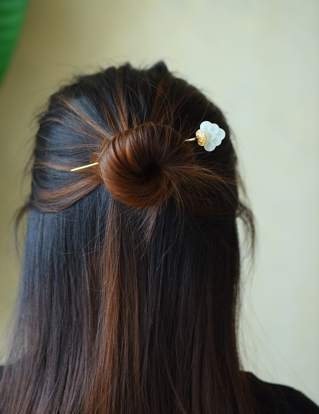 Silver gilt inlaid Hetian jade retro flower tag hairpin
