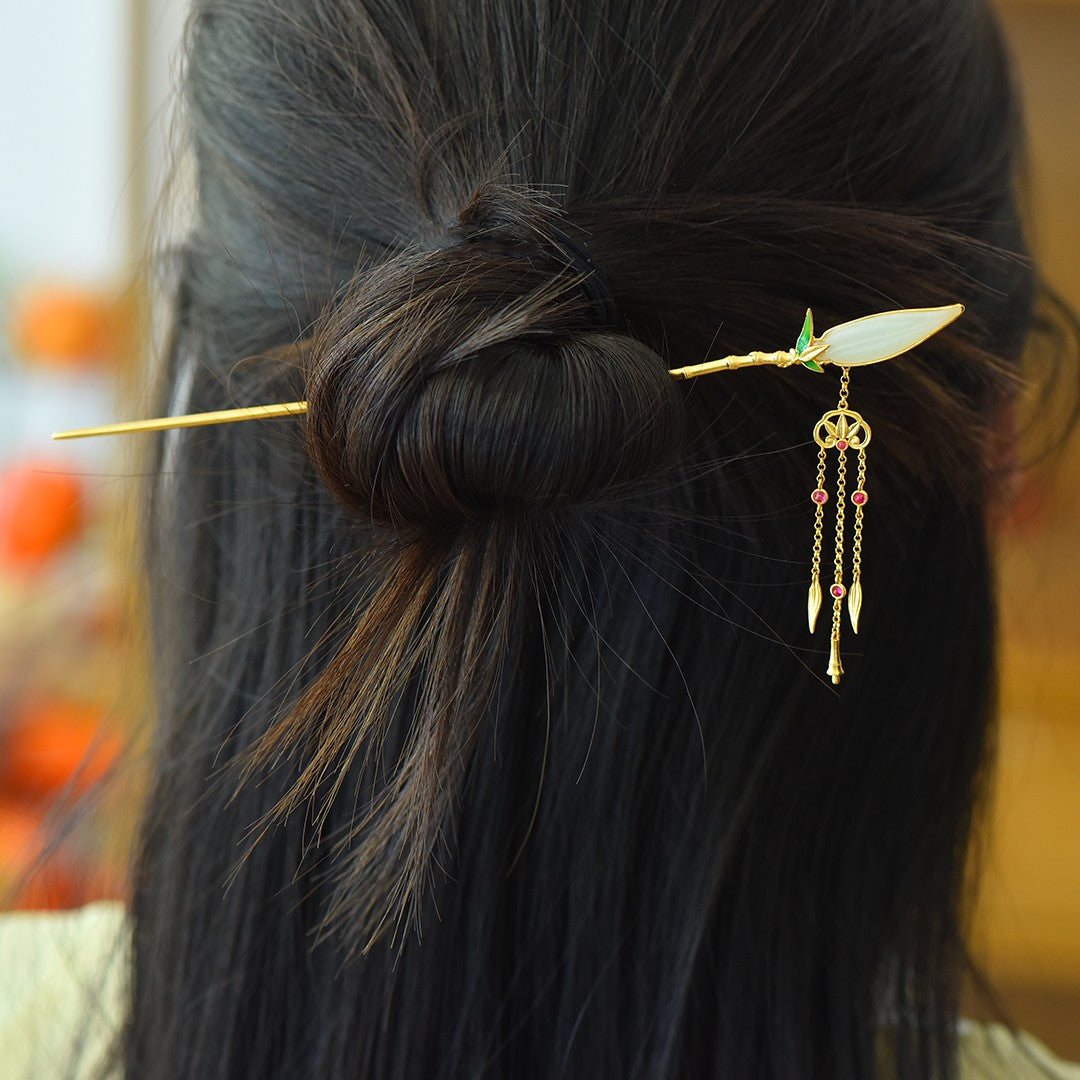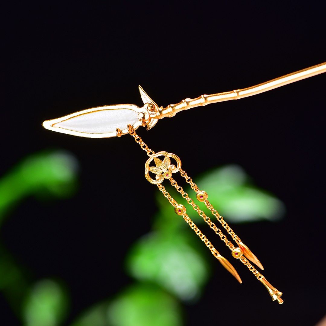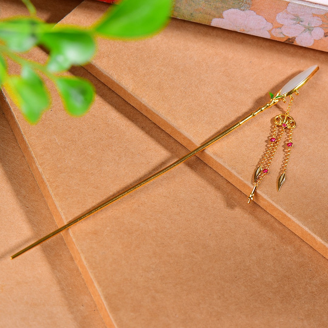 Silver gold plated Hetian jade hairpin