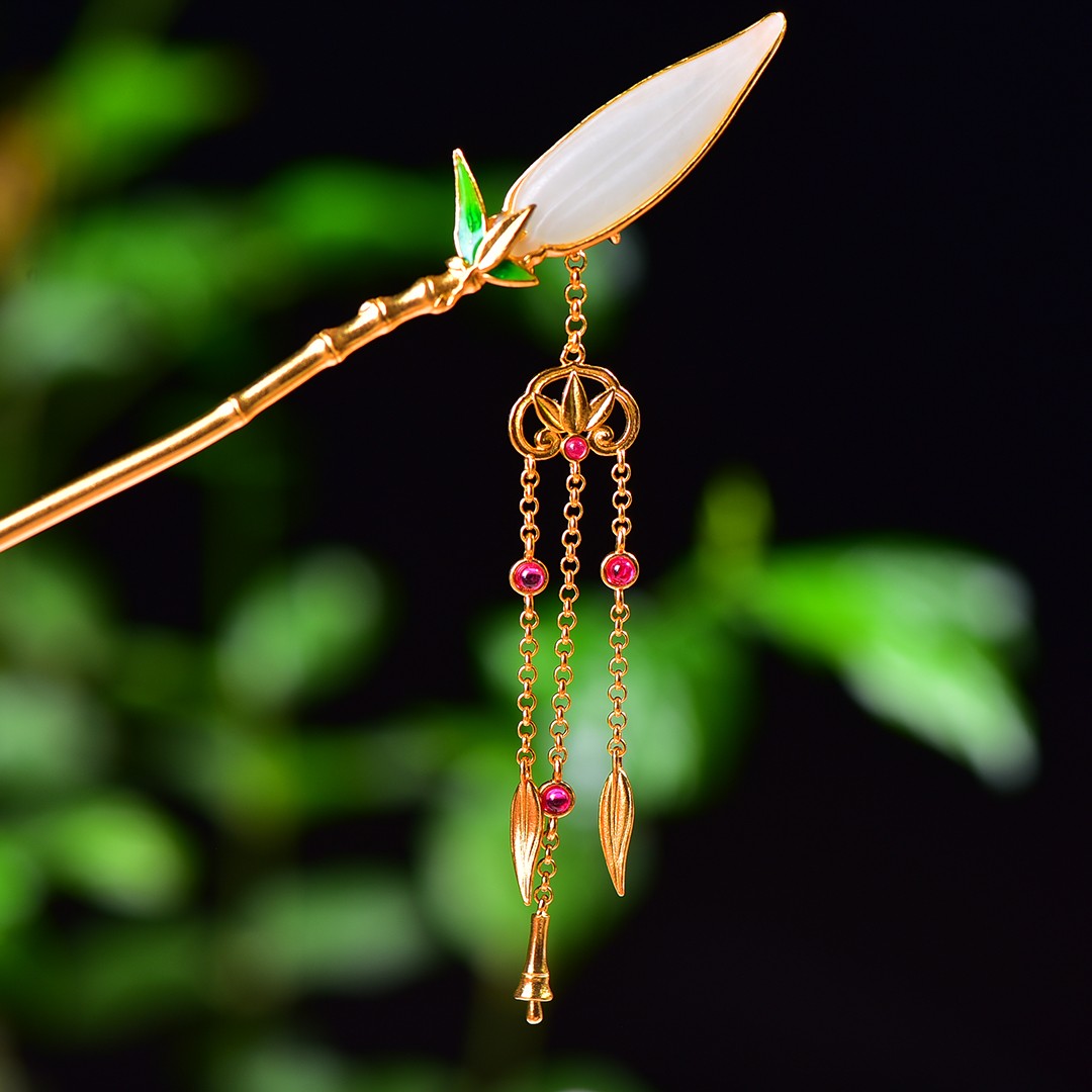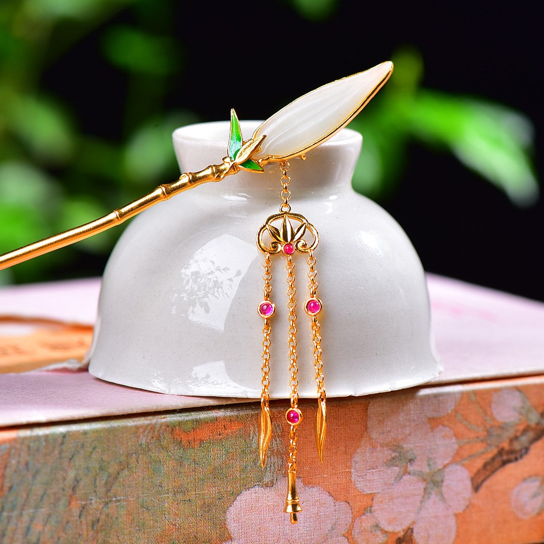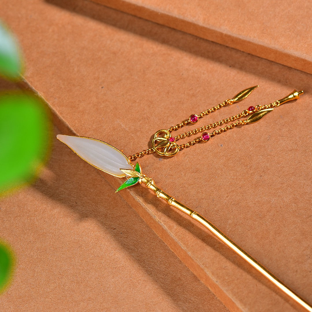 Silver gold plated Hetian jade hairpin