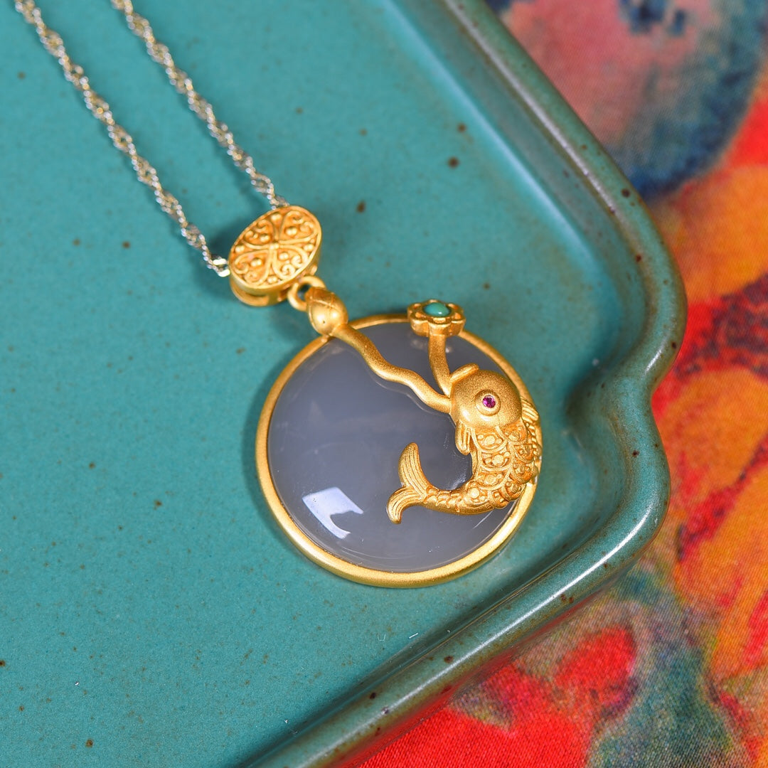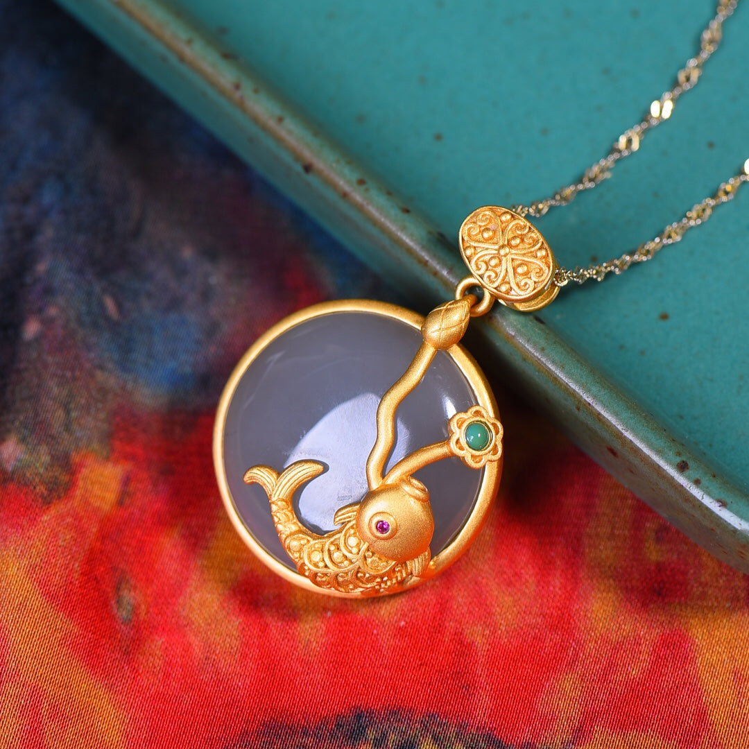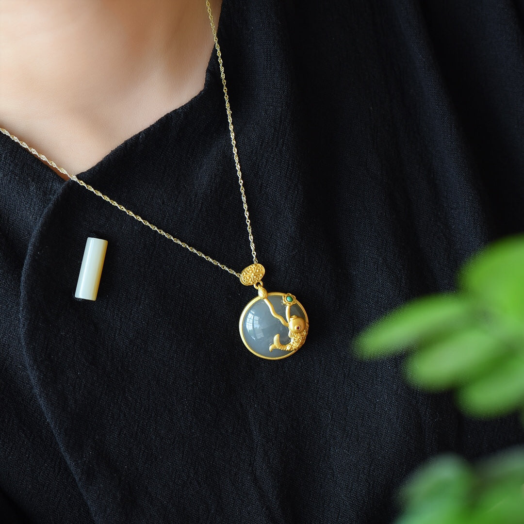 Silver gold-plated Hetian jade smoky blue egg pendant, jade size: 22mmx22mm      银镀金镶和田玉烟青色蛋面吊坠