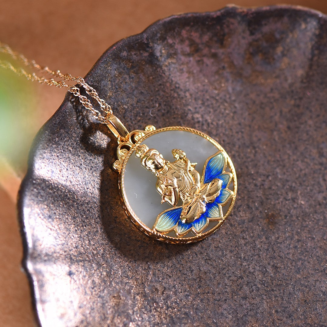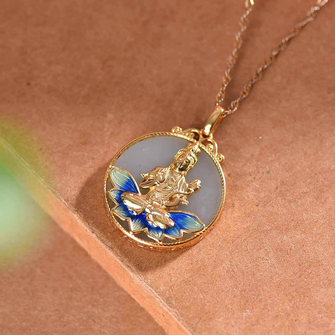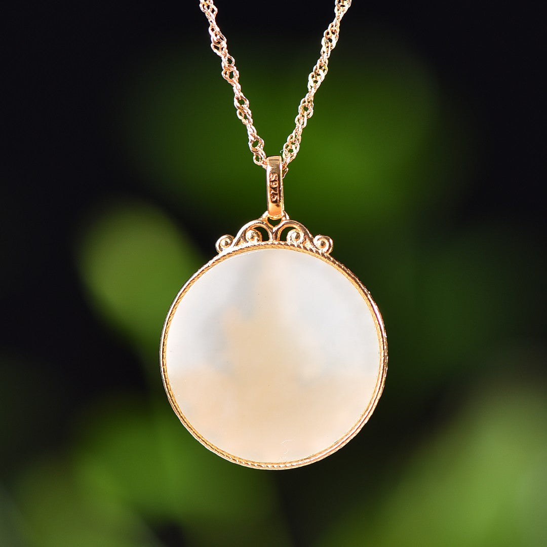 Silver gold plated Hetian jade pendant