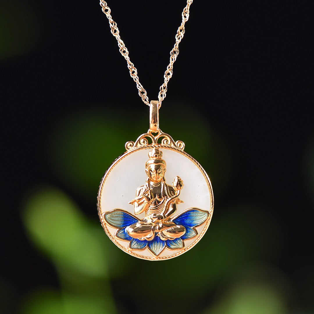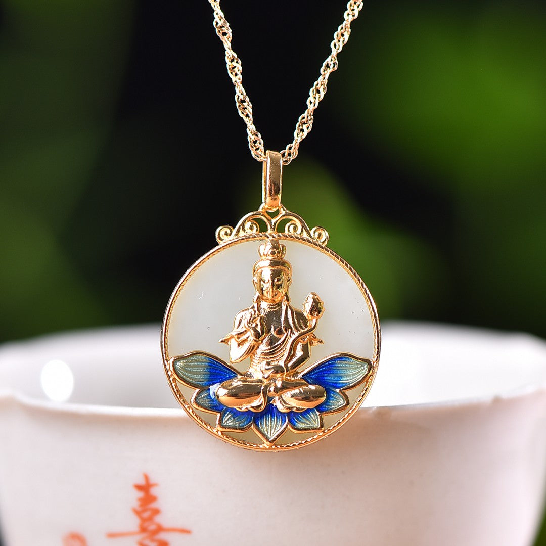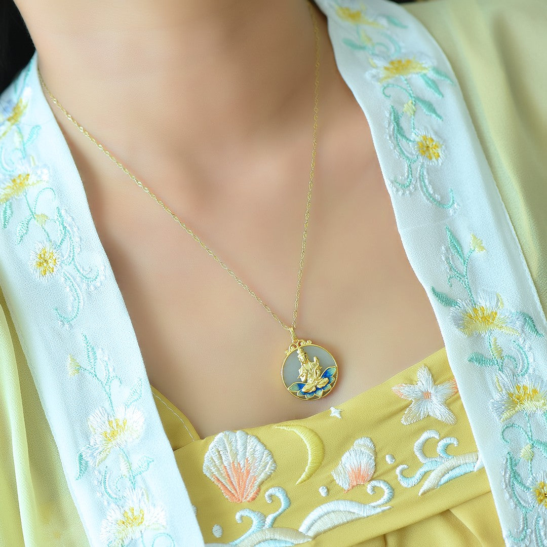 Silver gold plated Hetian jade pendant