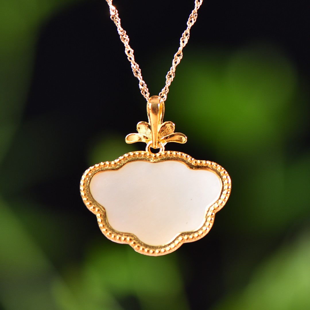 Silver gold plated Hetian jade pendant